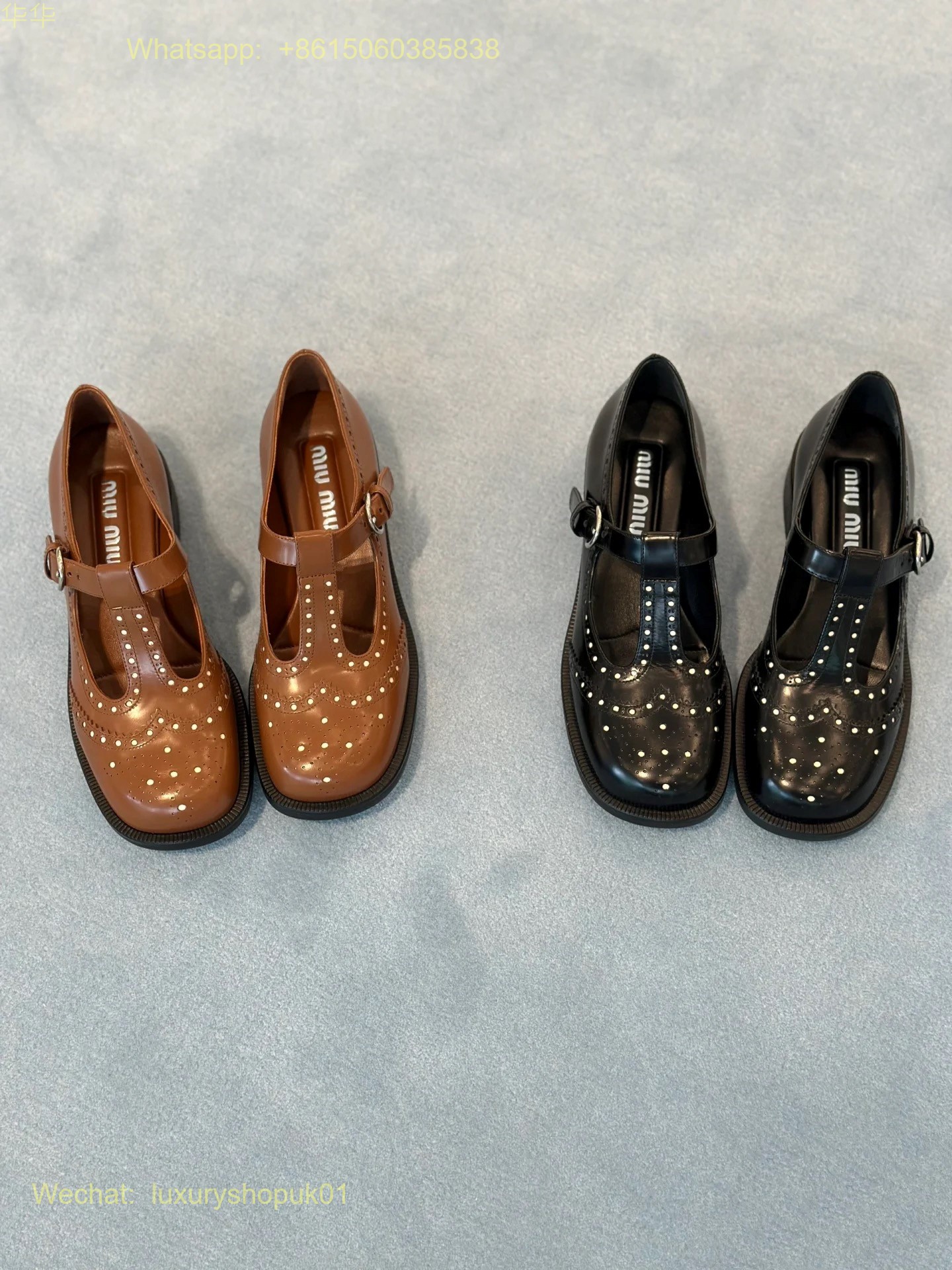• Miu Miu Leather Mary Jane Flat Women Shoes