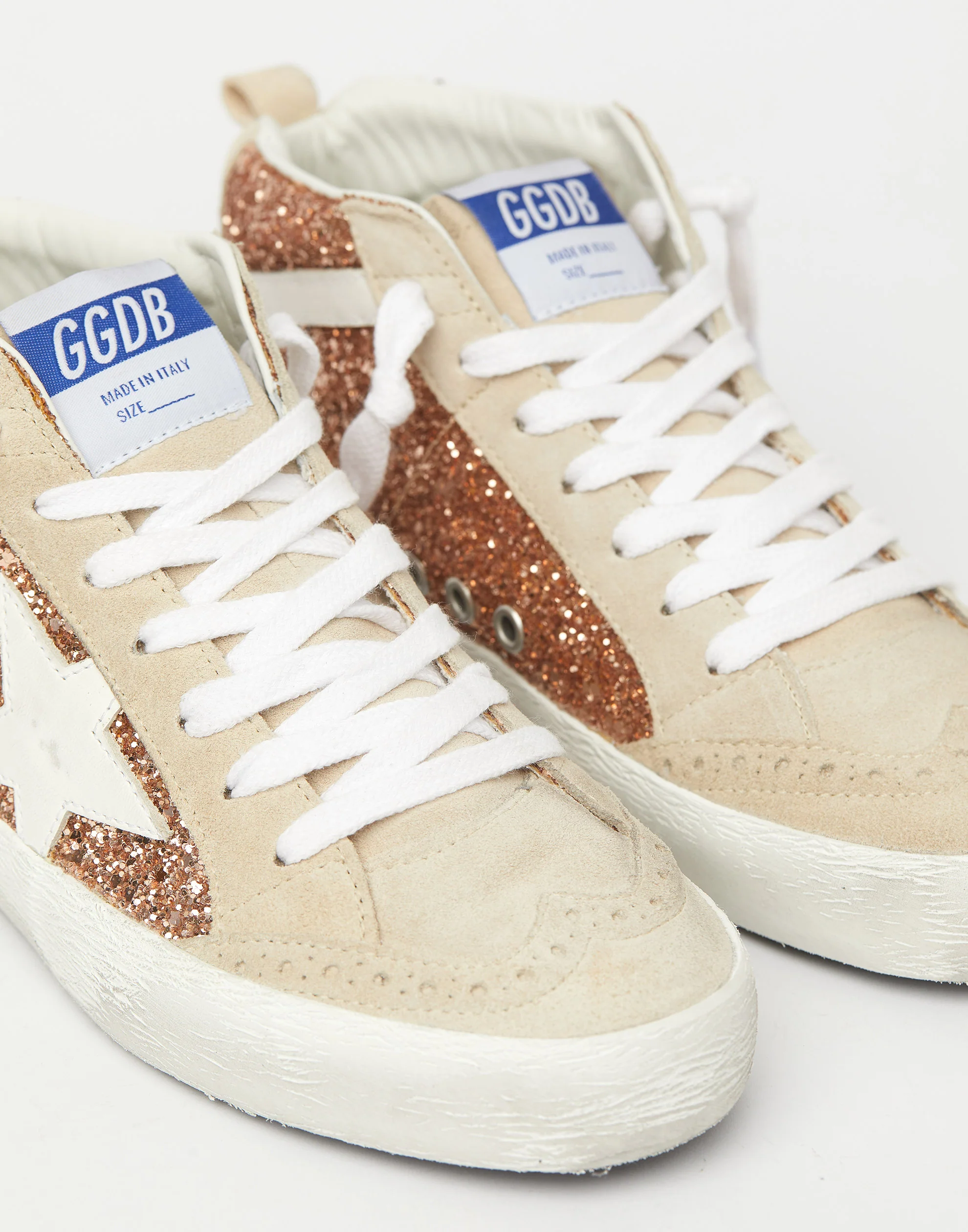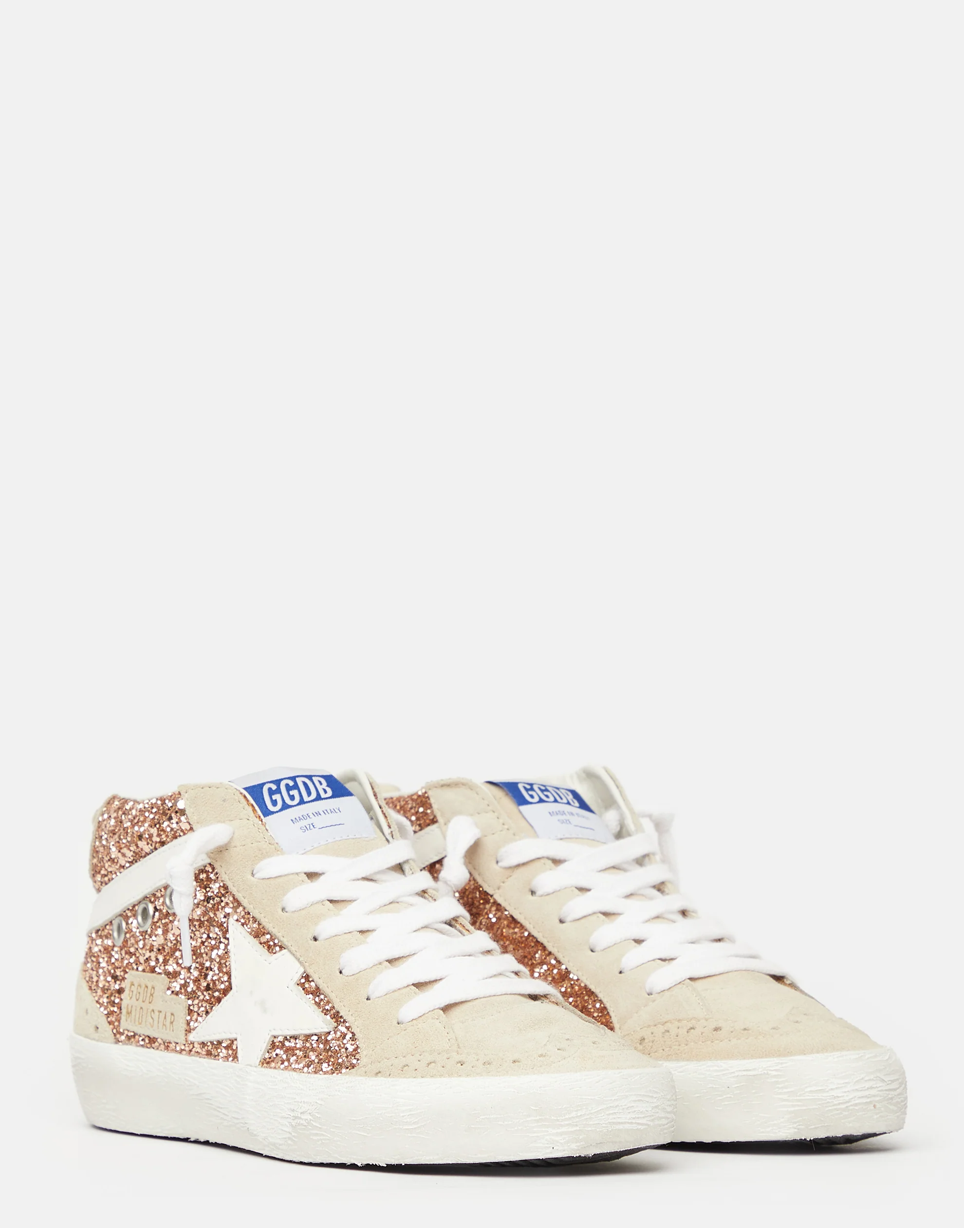 Golden Goose GGDB Peach Glitter & White Mid Star Sneakers Women Men
