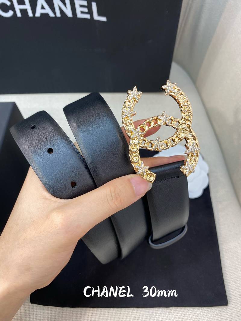 Chanel Belt With Double C Buckle Black With Full Gold Toned Hardware Women Belt 30MM