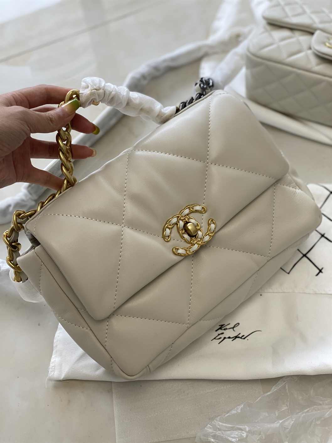 CHANEL Goatskin Quilted Medium 19 Flap replica
