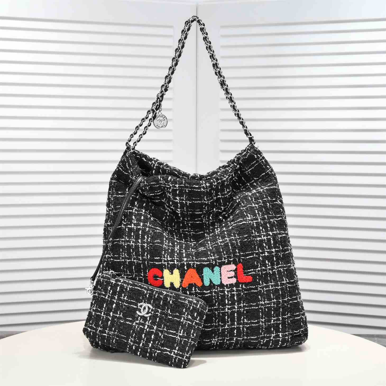 CHANEL 22 Large Handbag Wool Tweed replica