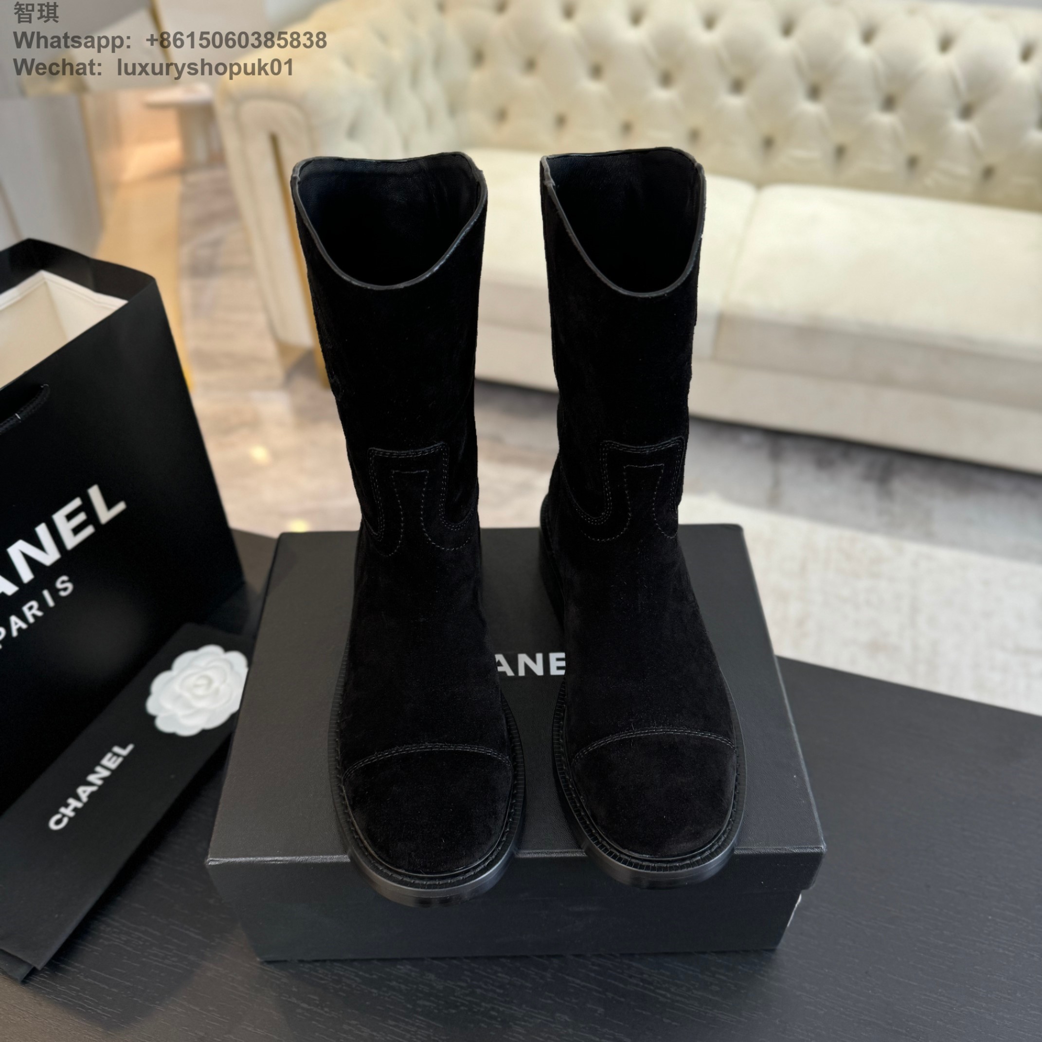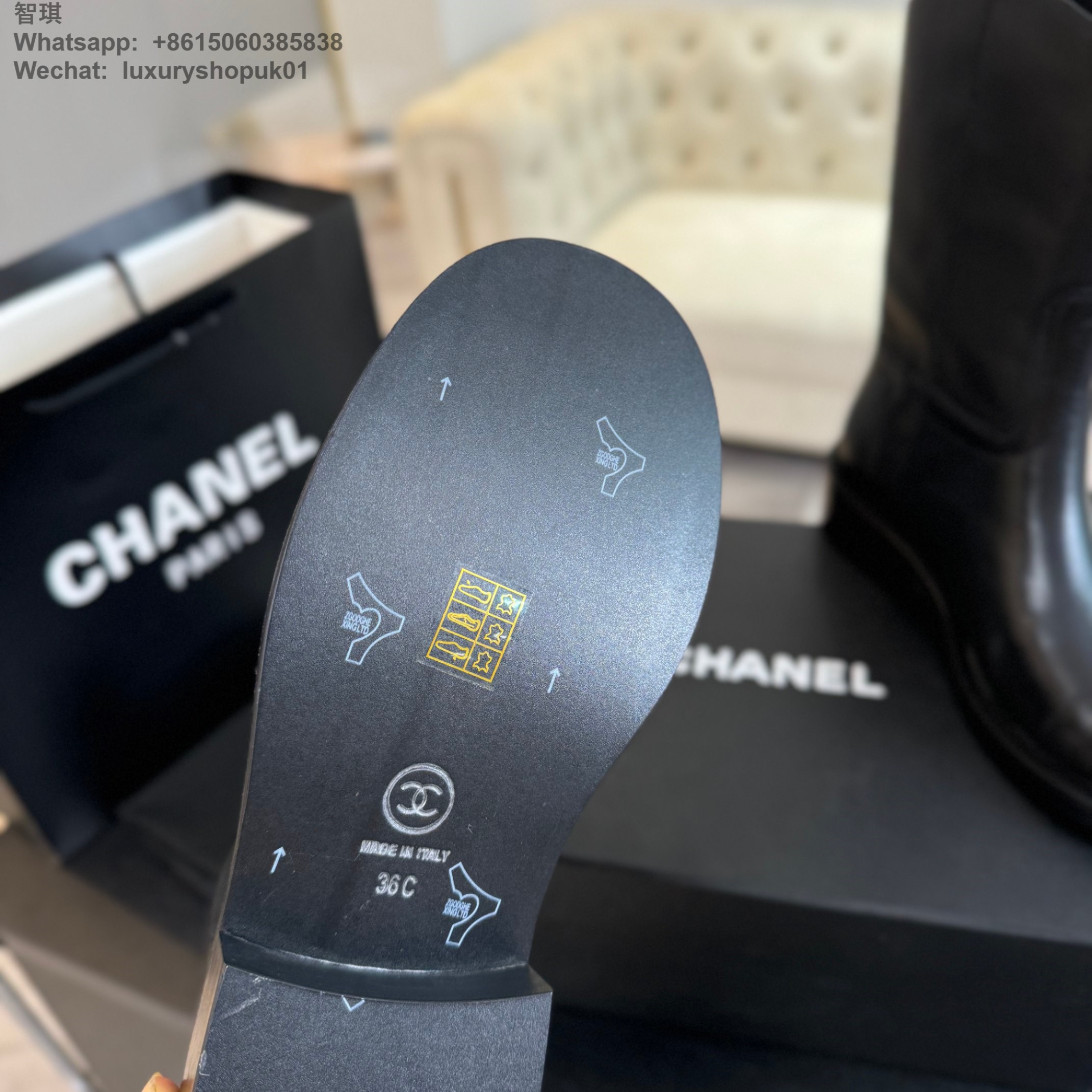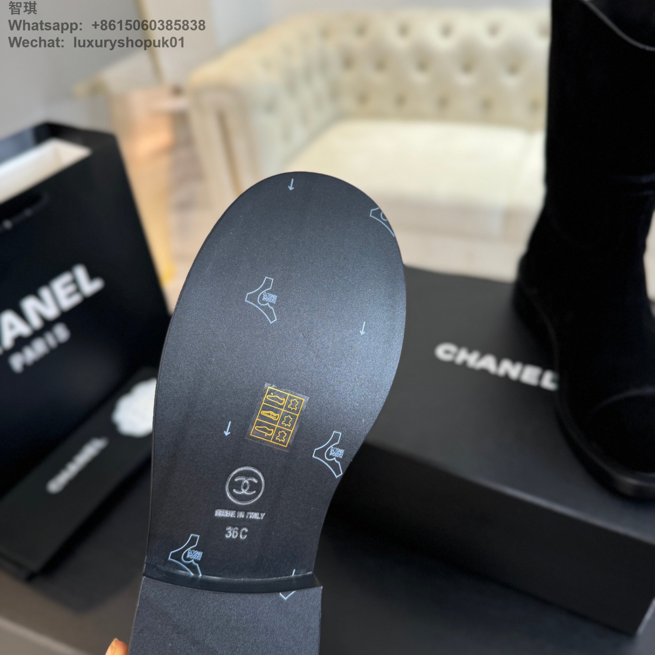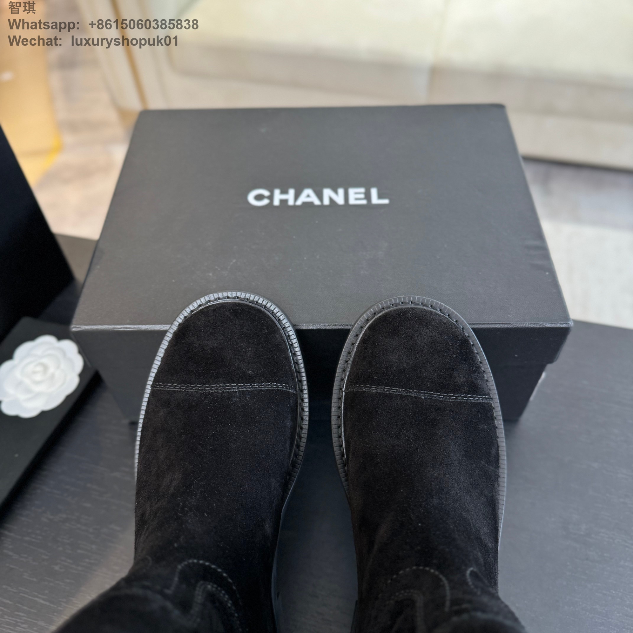 Women Chanel Knee High Leather Platform Boot Shoes black