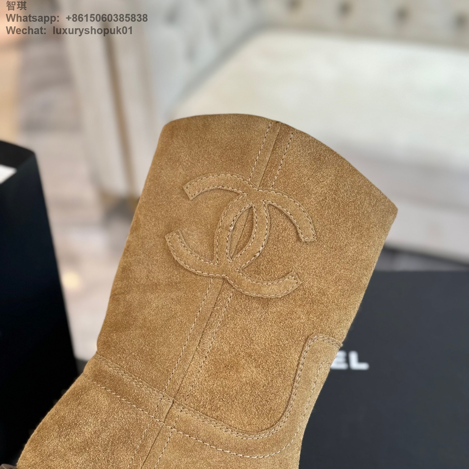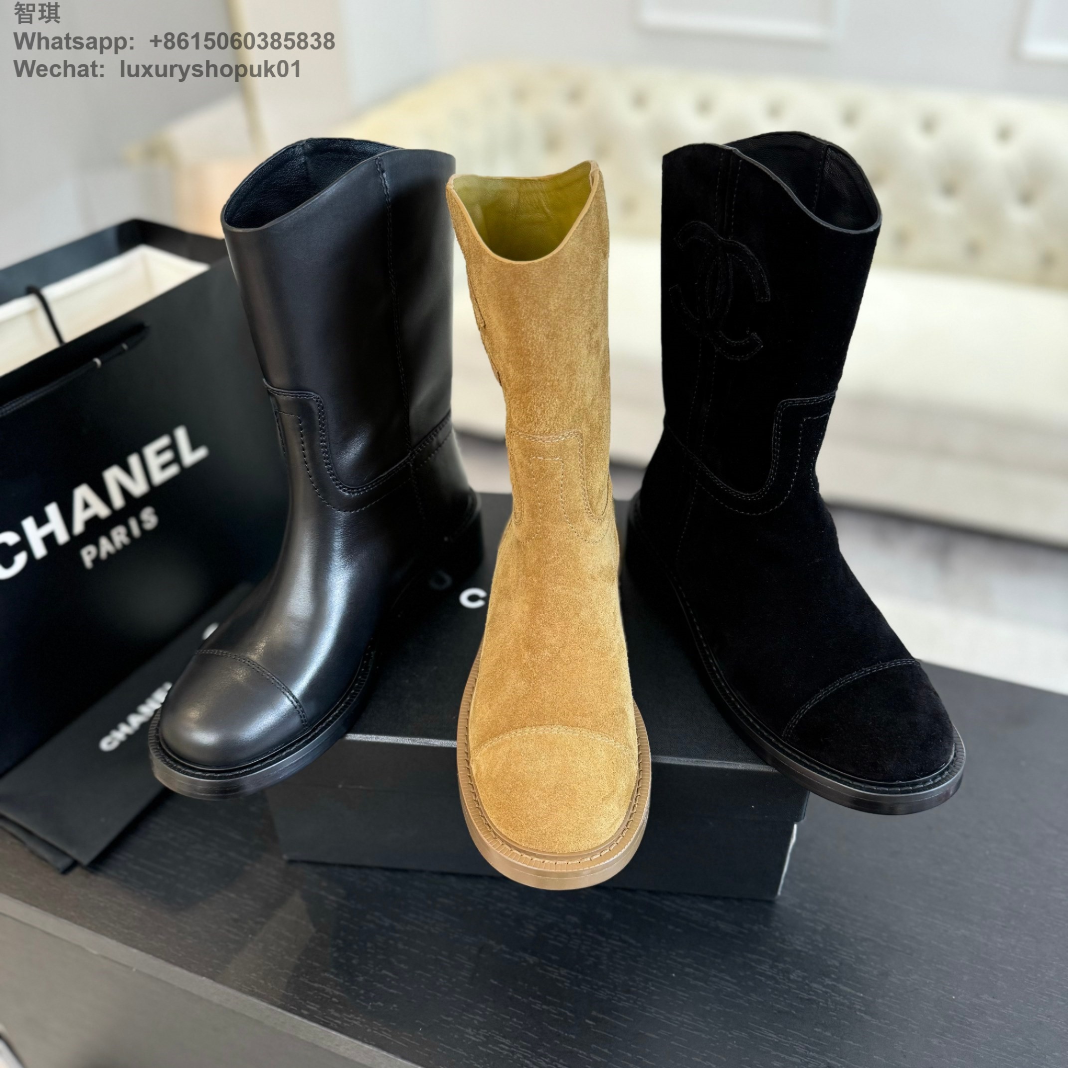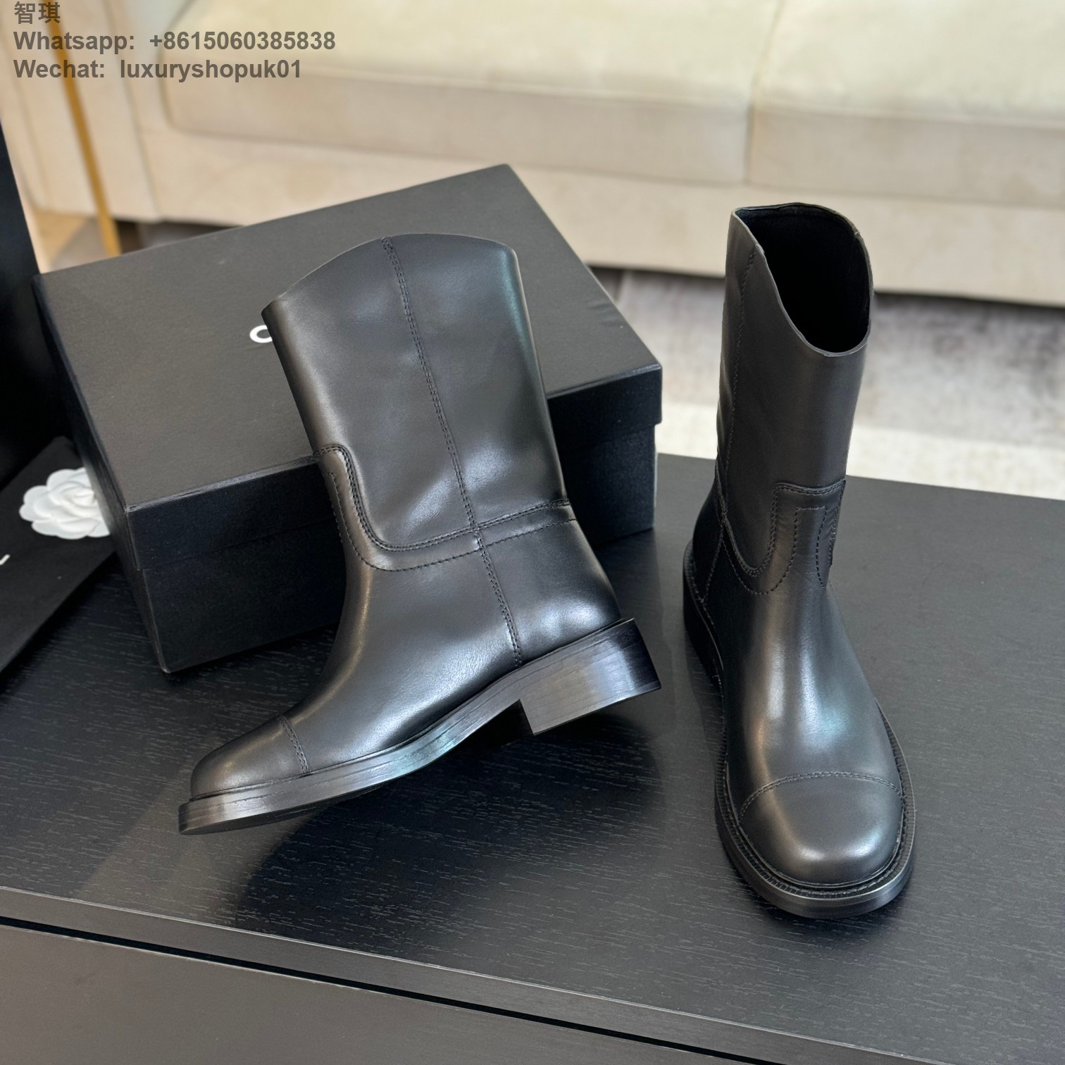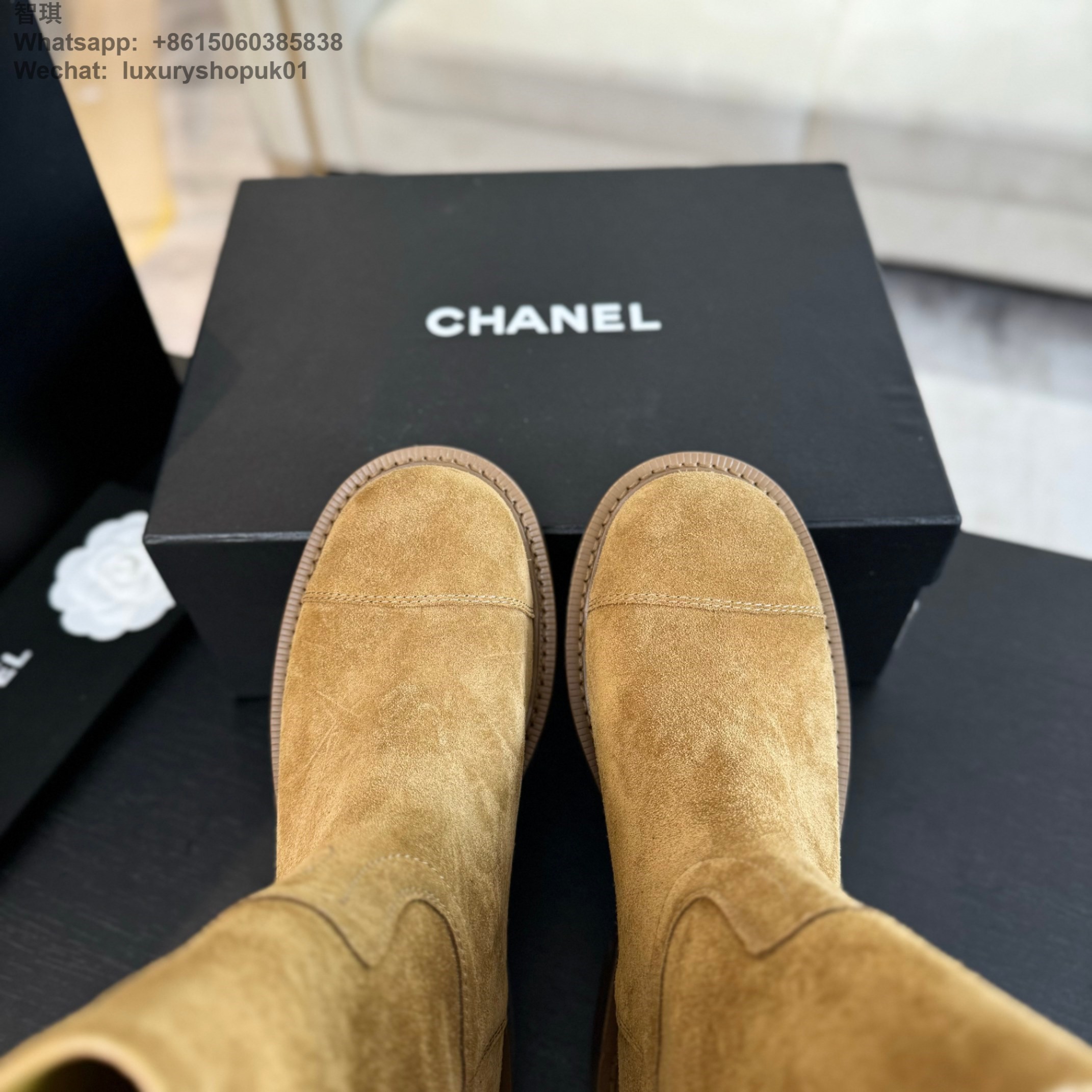 Women Chanel Knee High Leather Platform Boot Shoes black