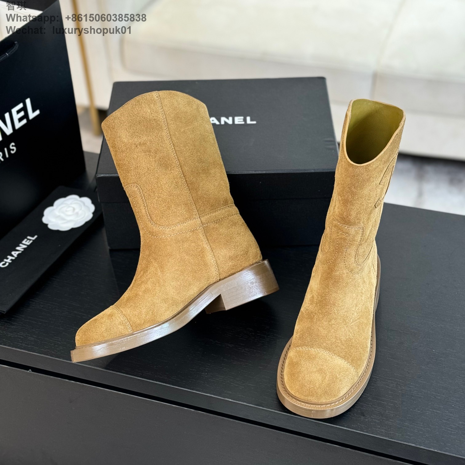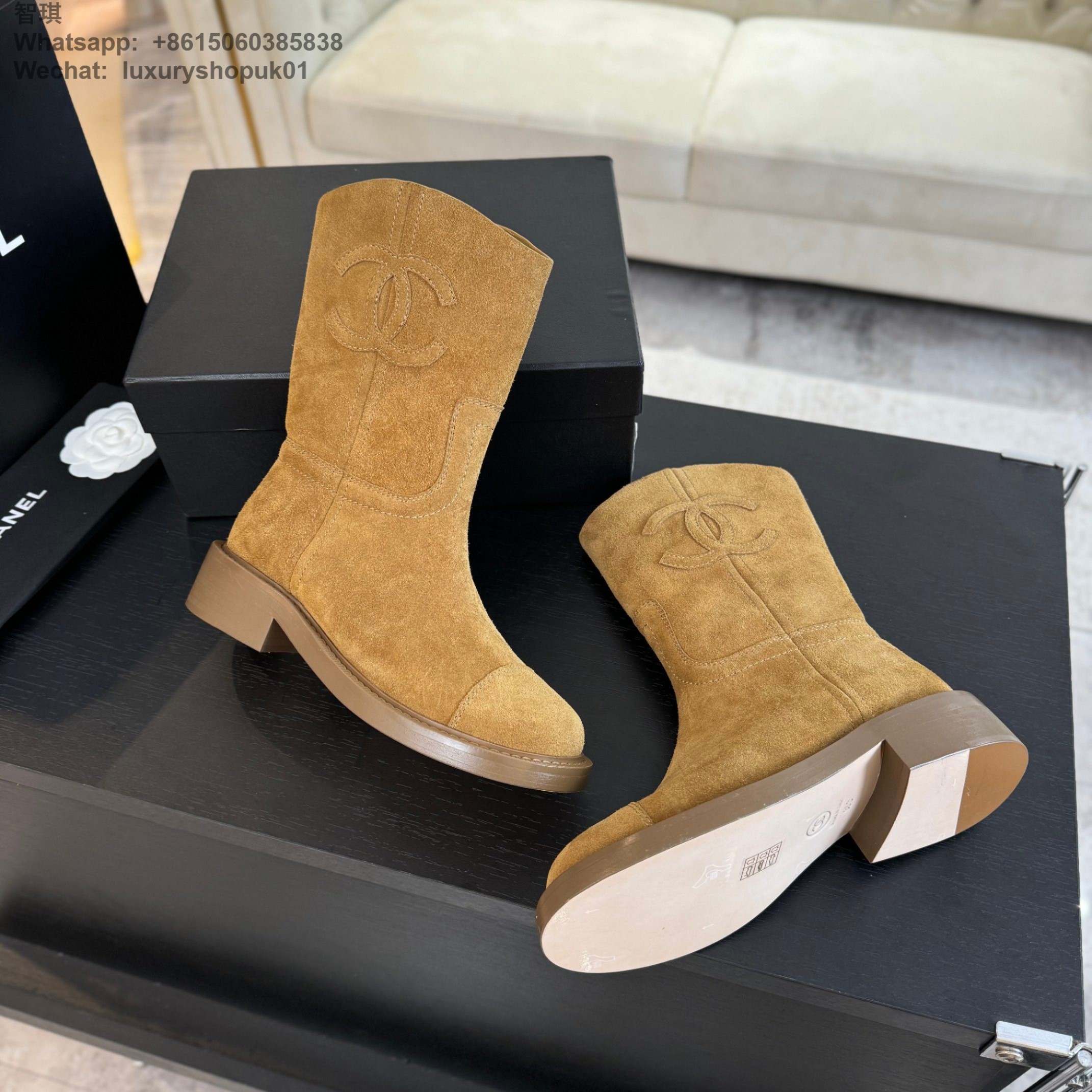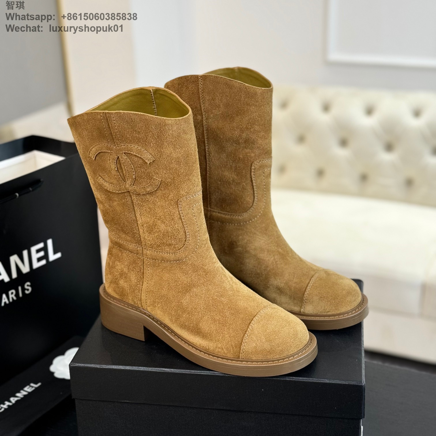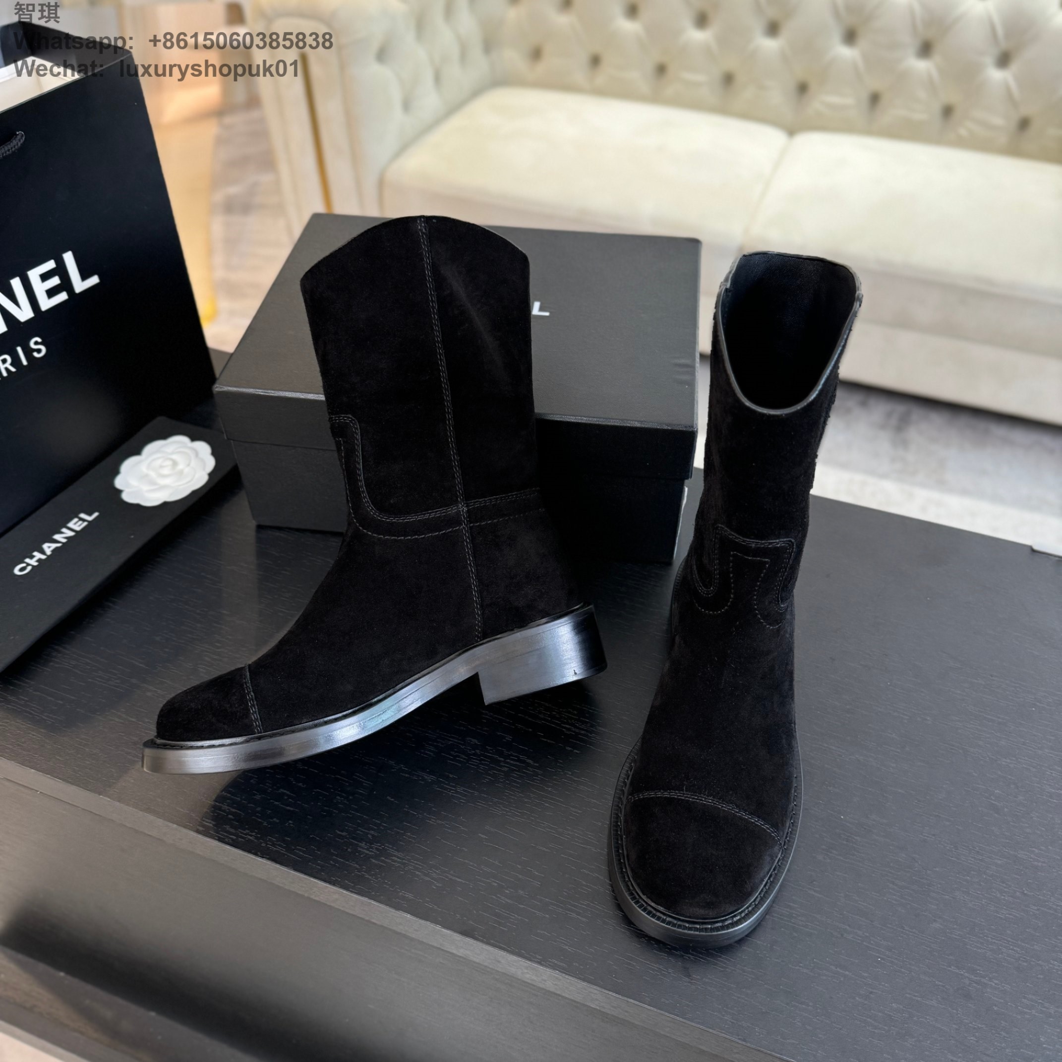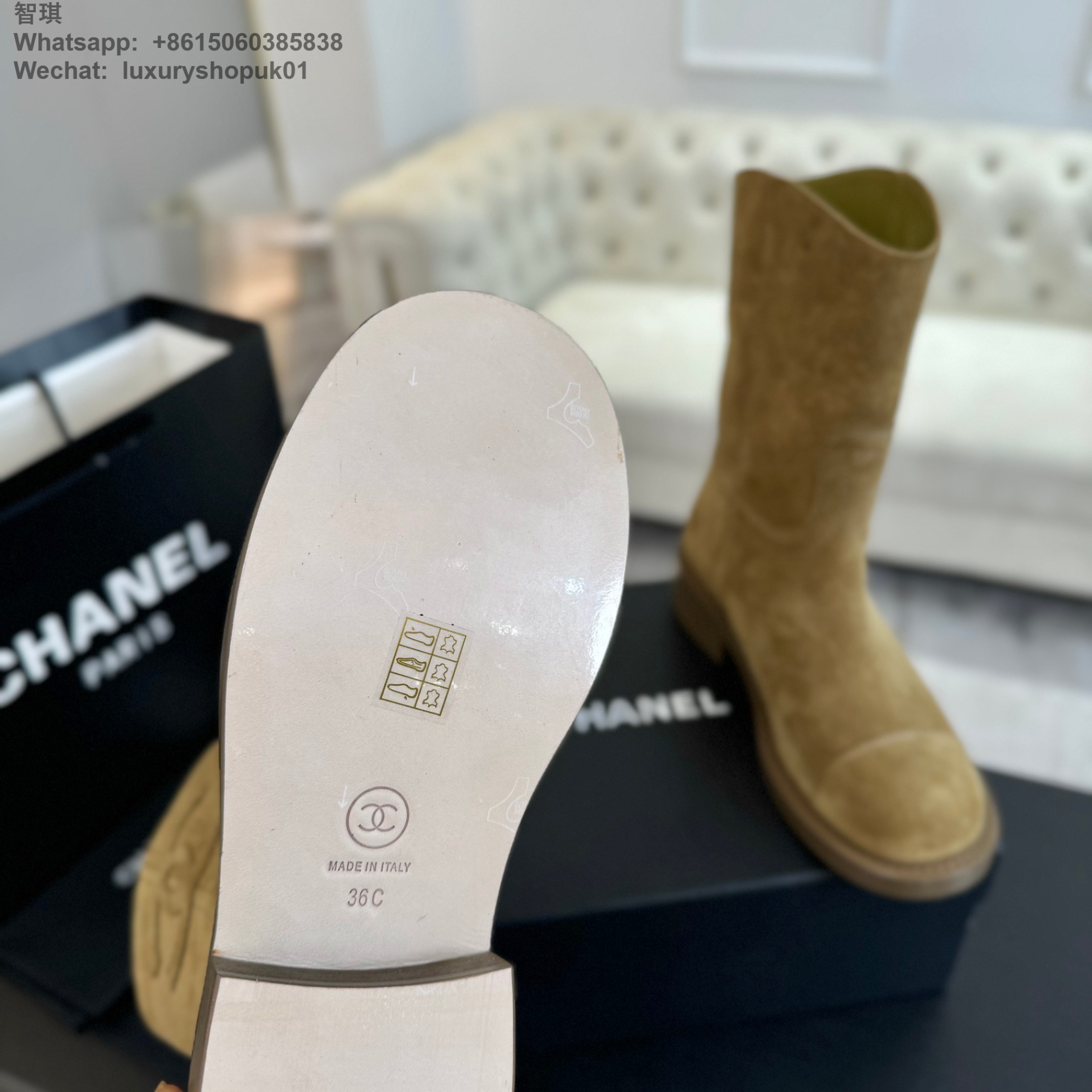 Women Chanel Knee High Leather Platform Boot Shoes black