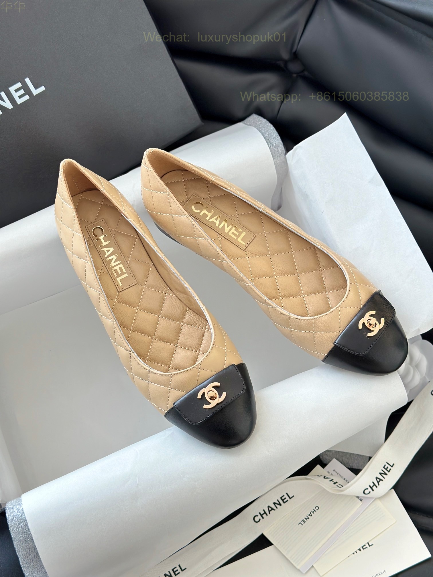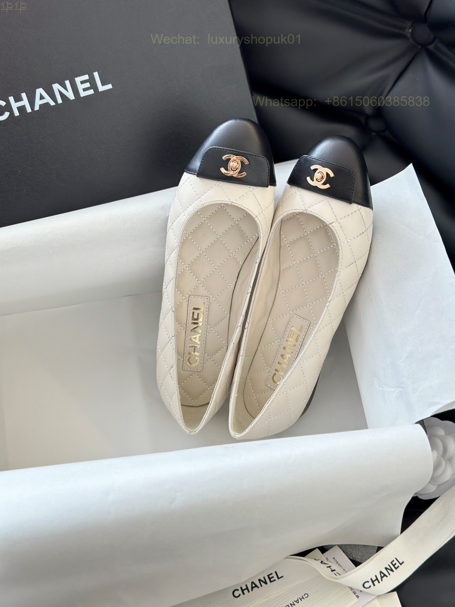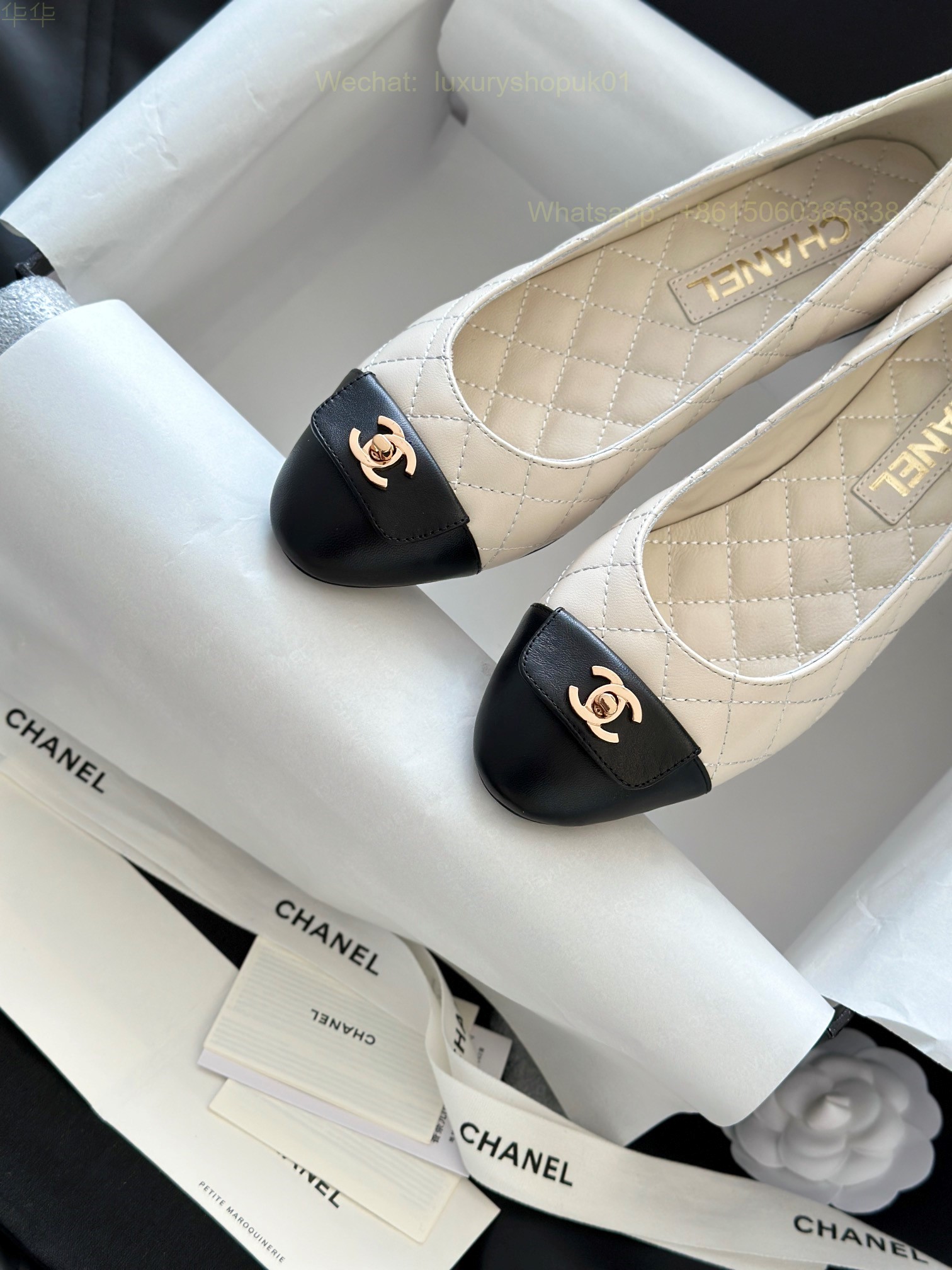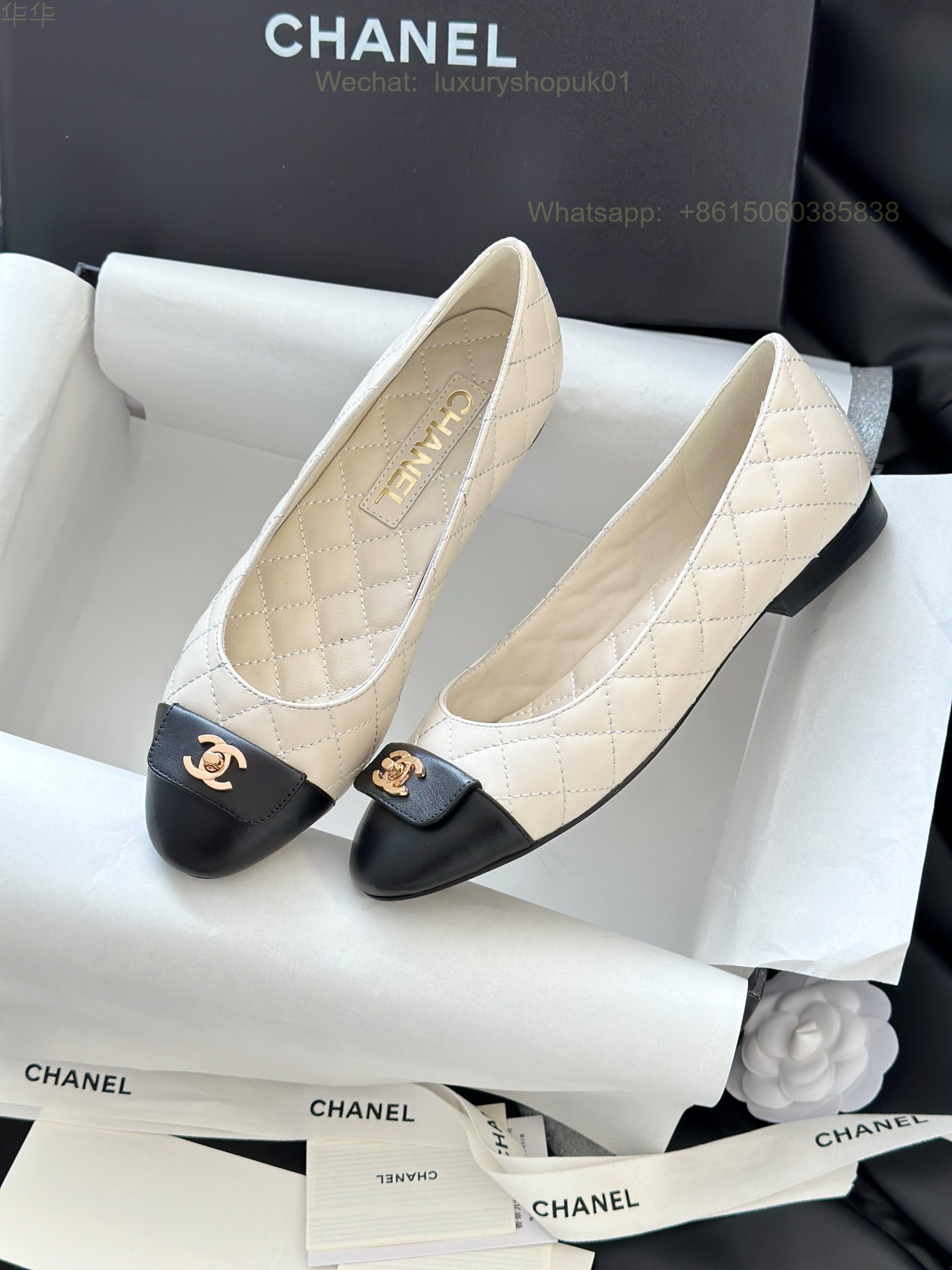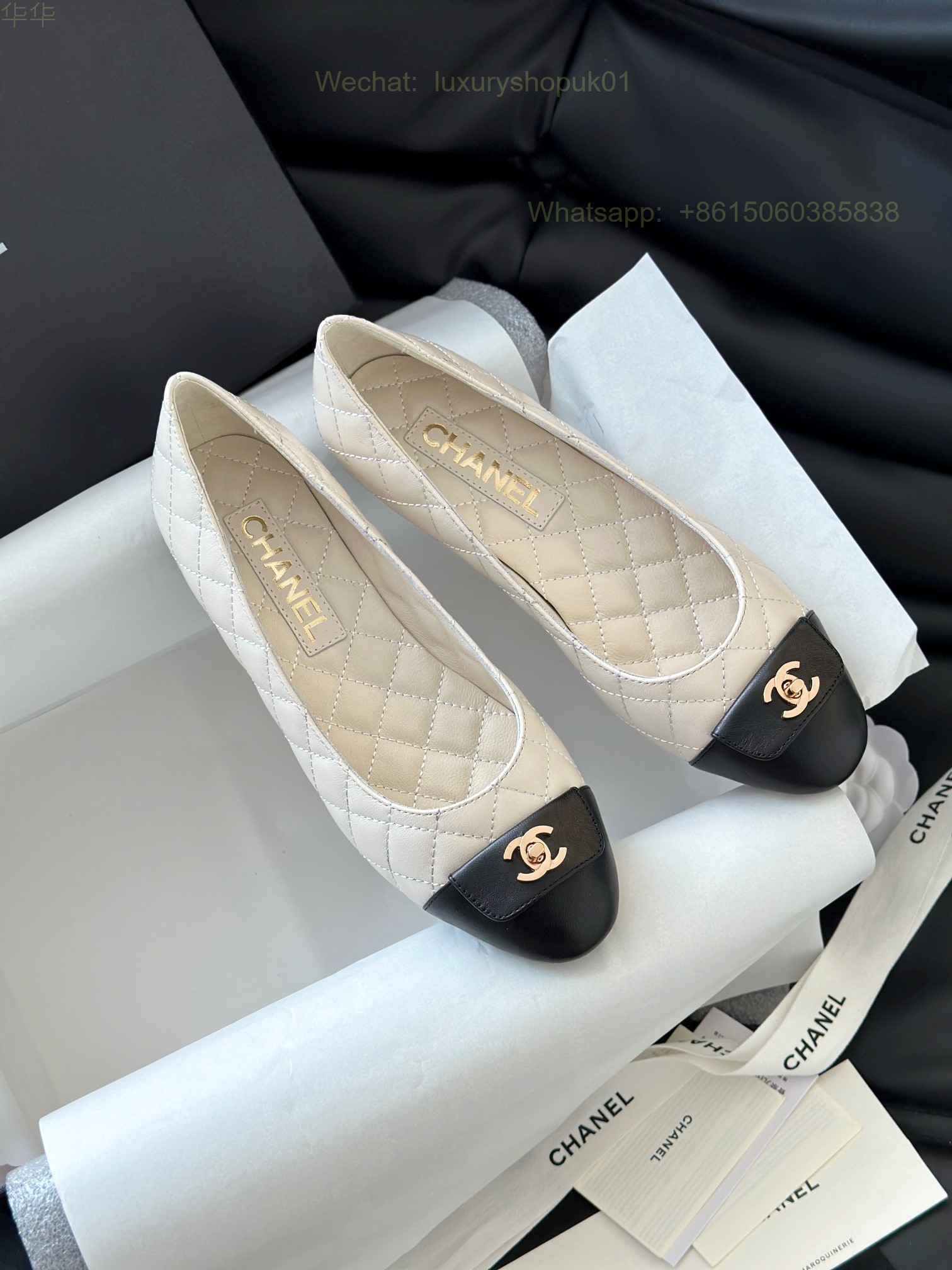 Chanel Leather cap toe Ballet flat CC Logo Women Shoes