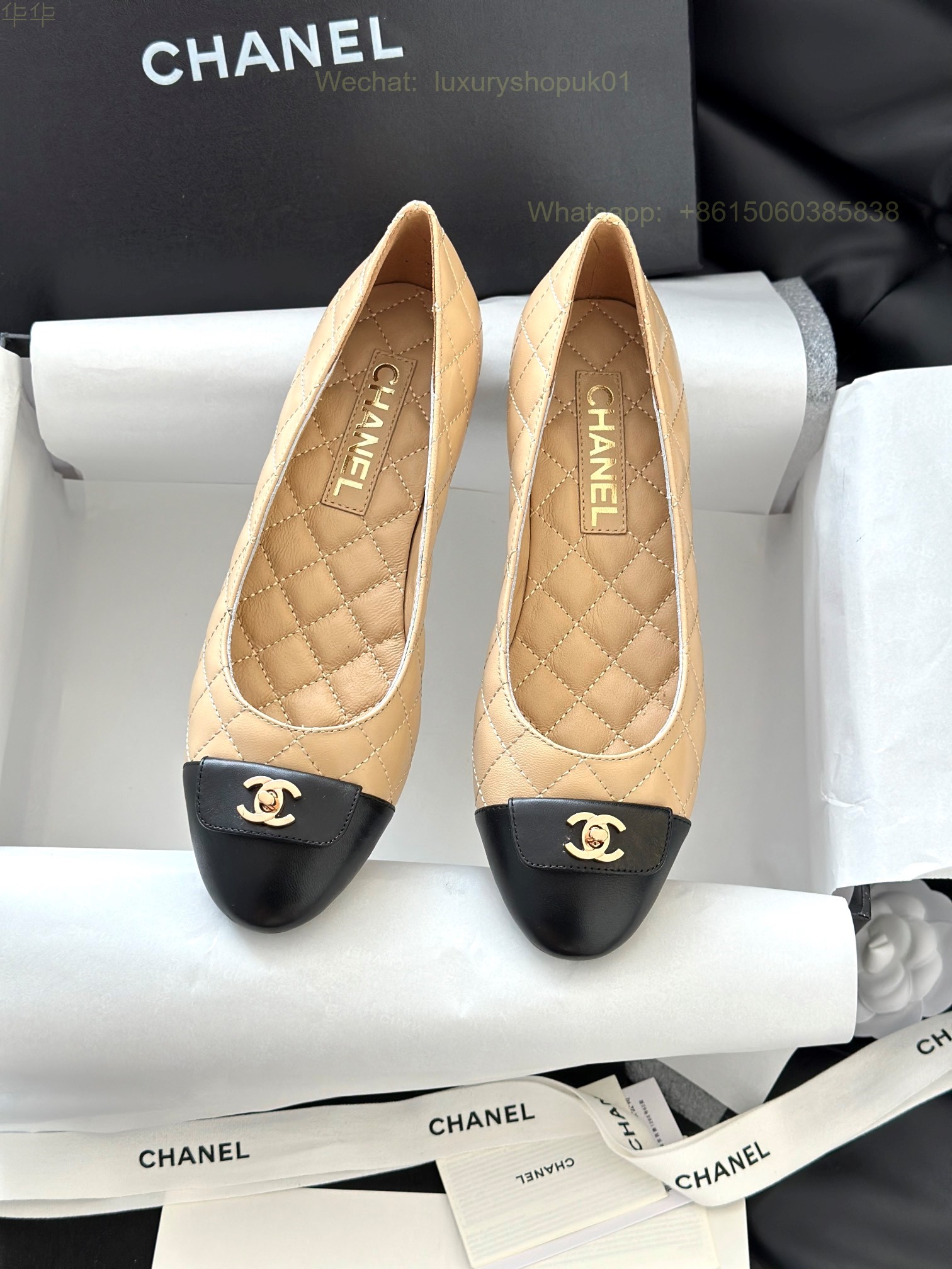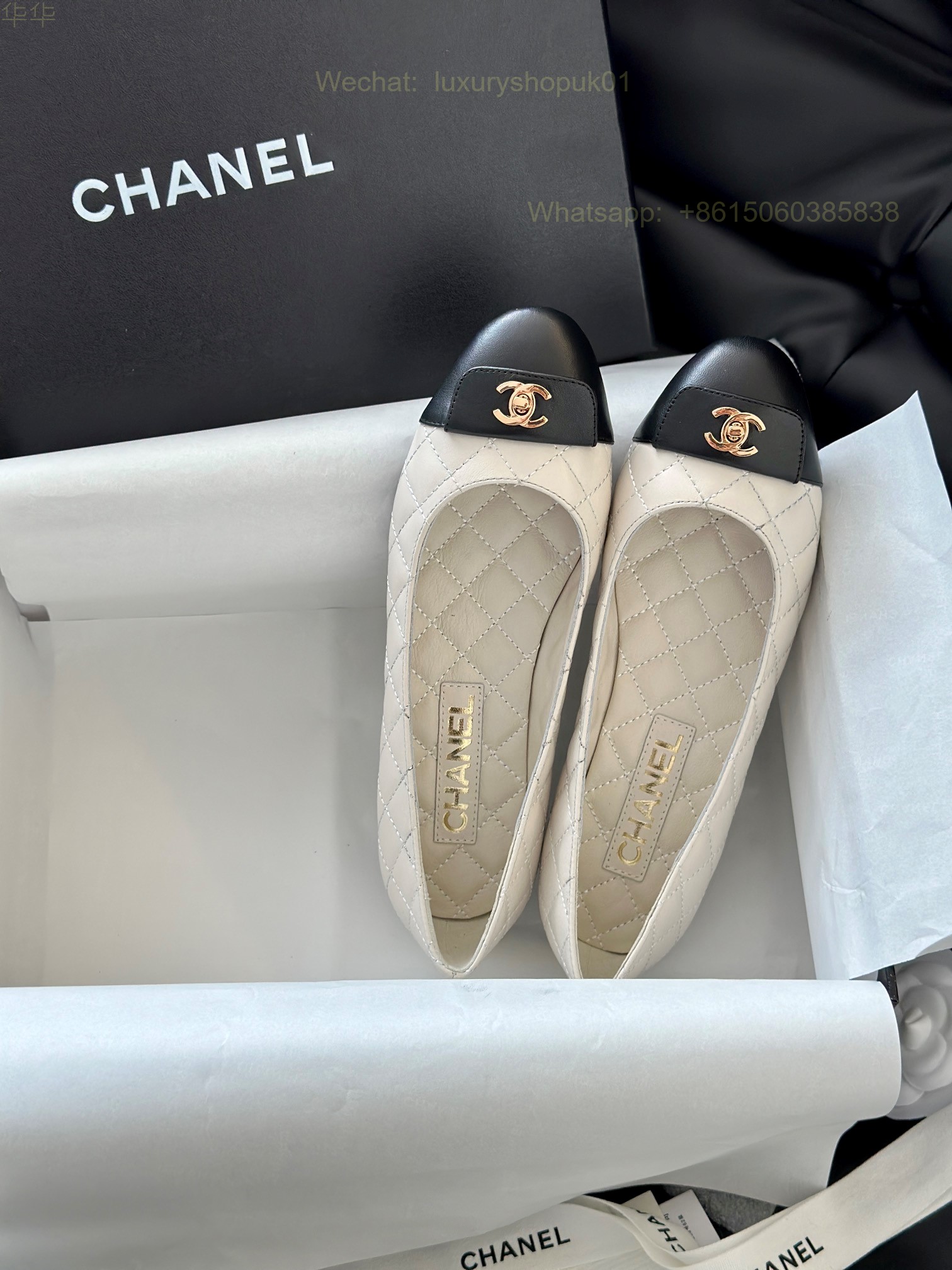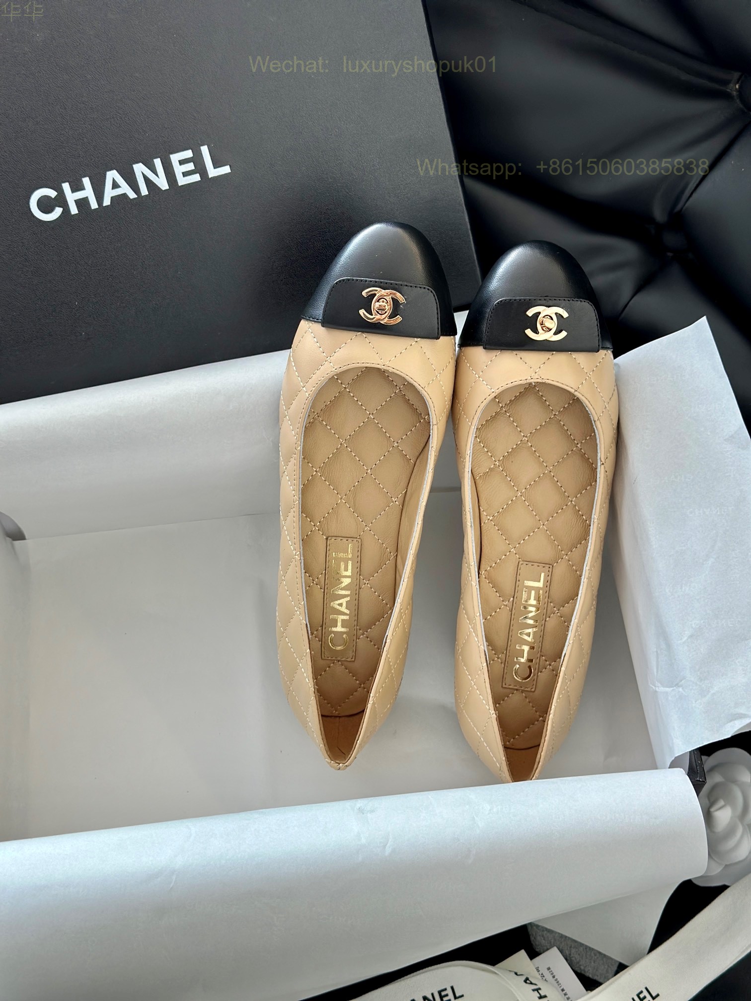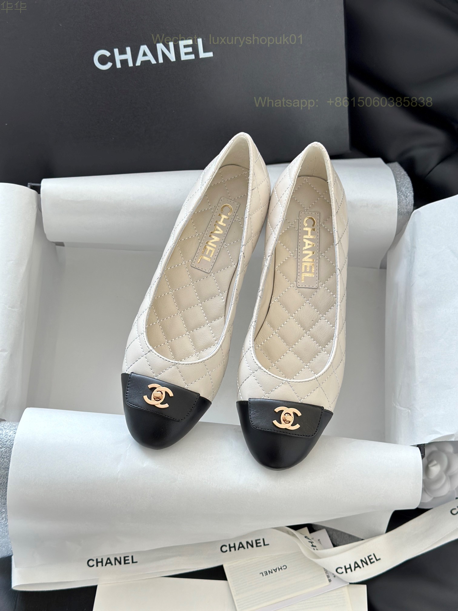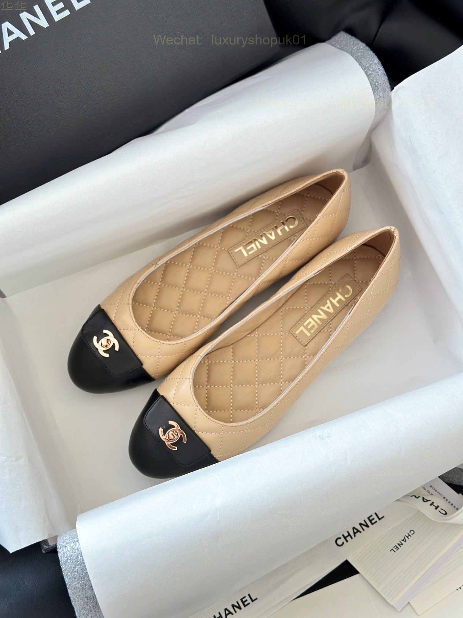 Chanel Leather cap toe Ballet flat CC Logo Women Shoes
