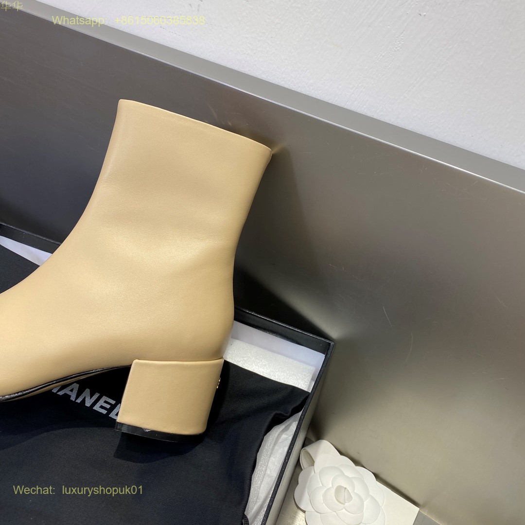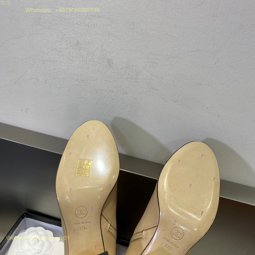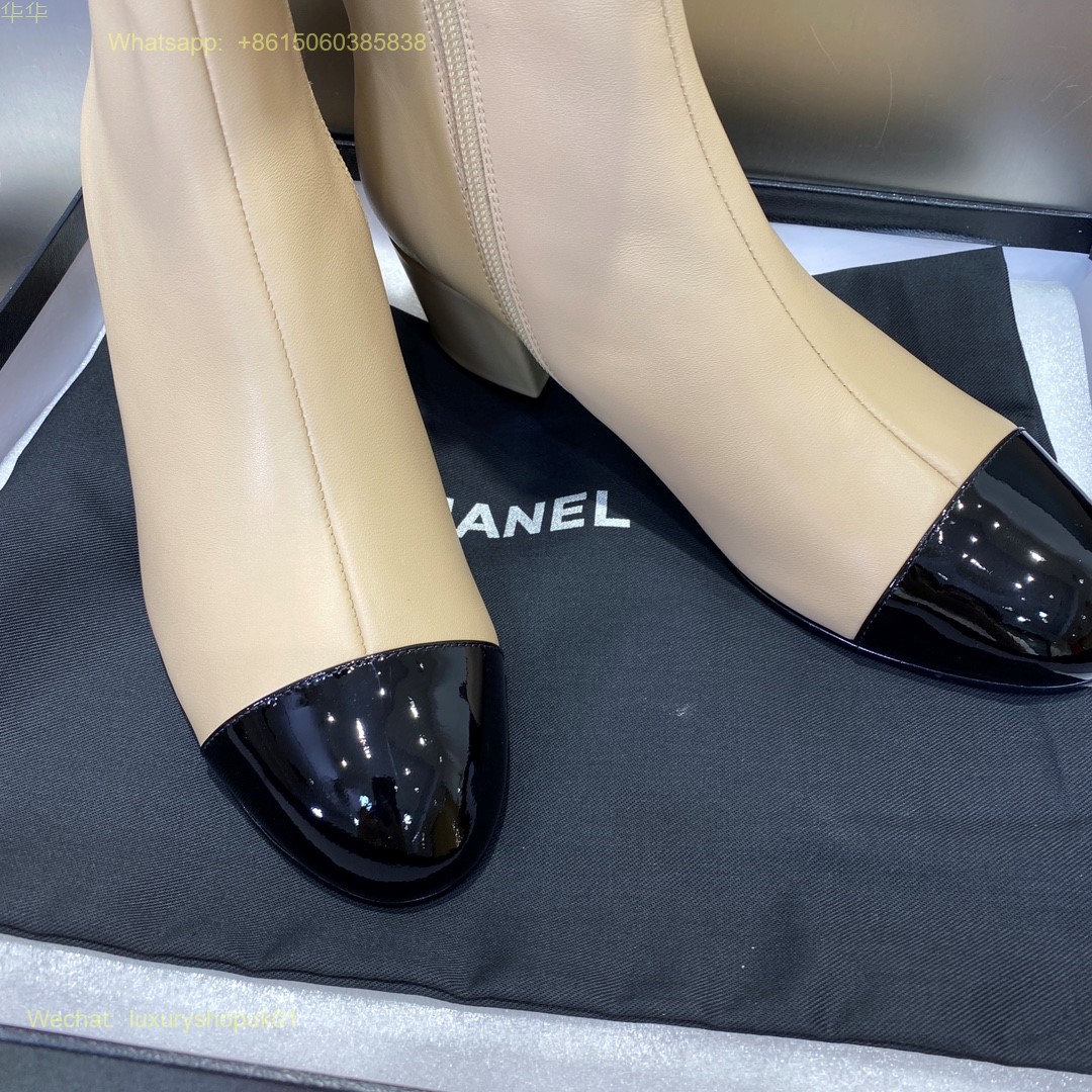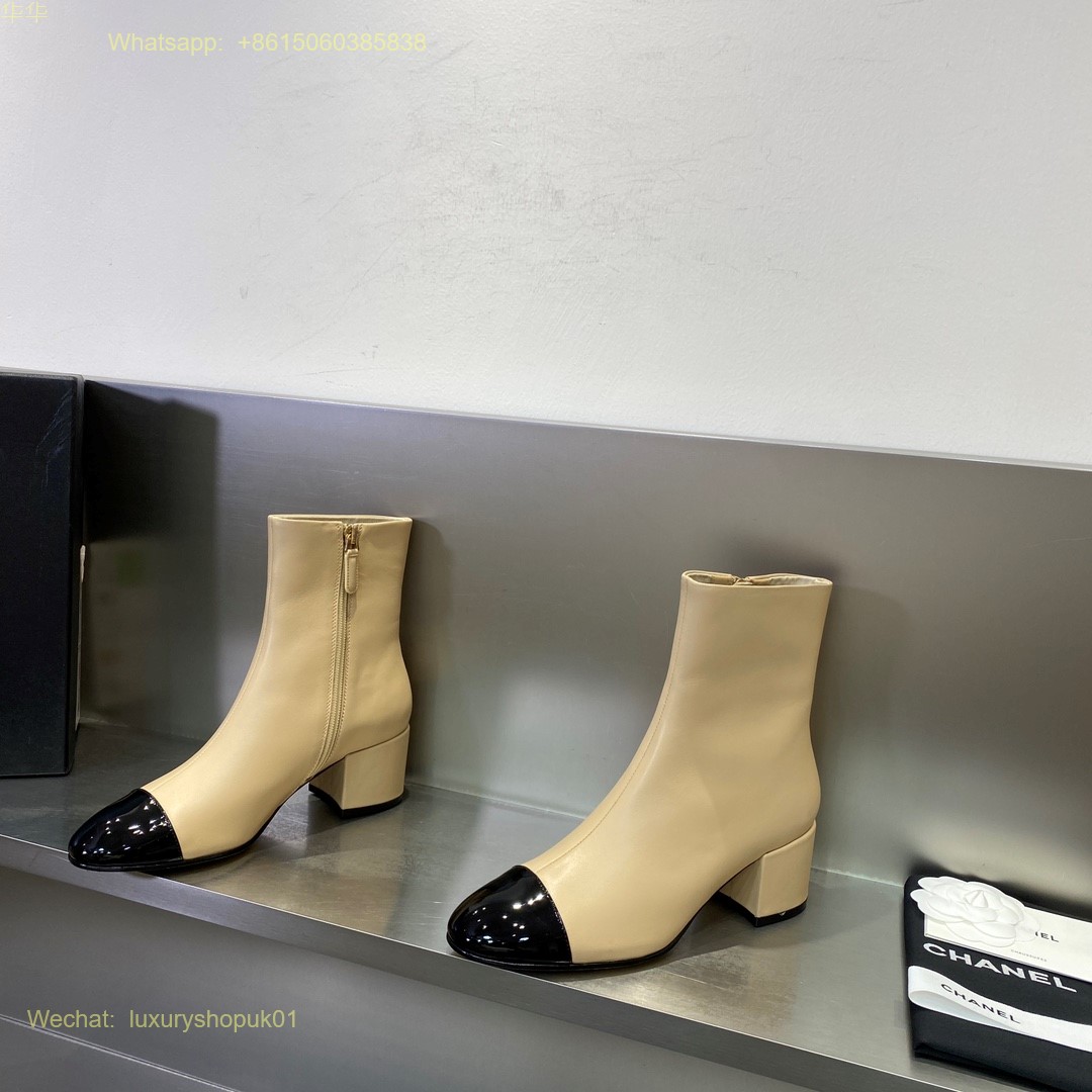 Chanel block heels cap toe ankle boot Women Shoes