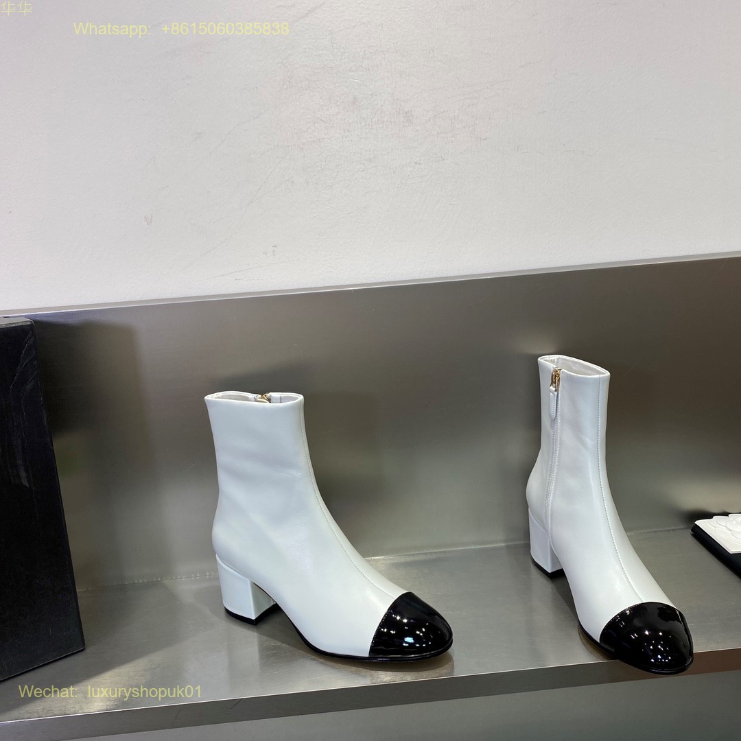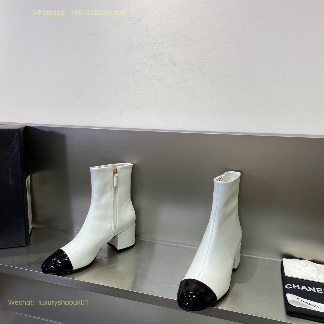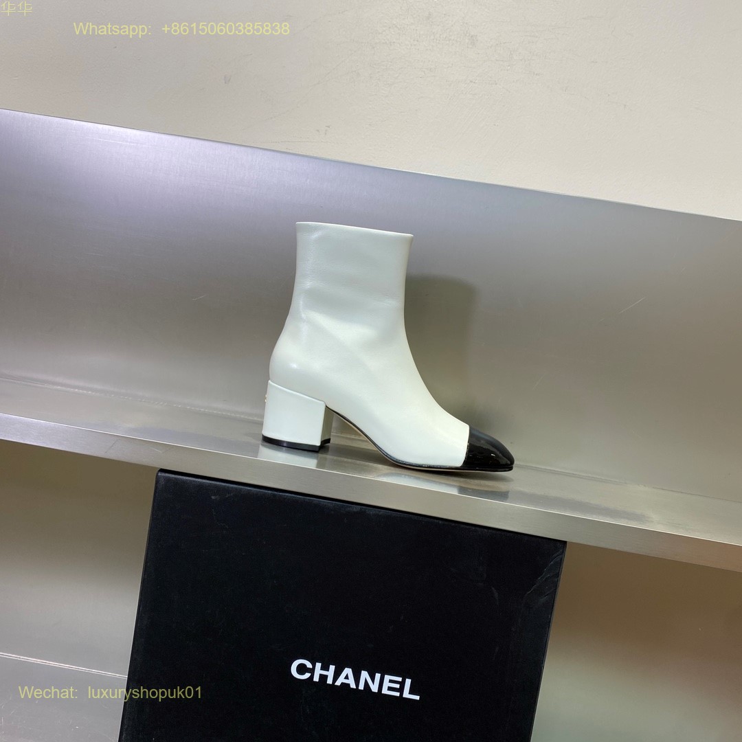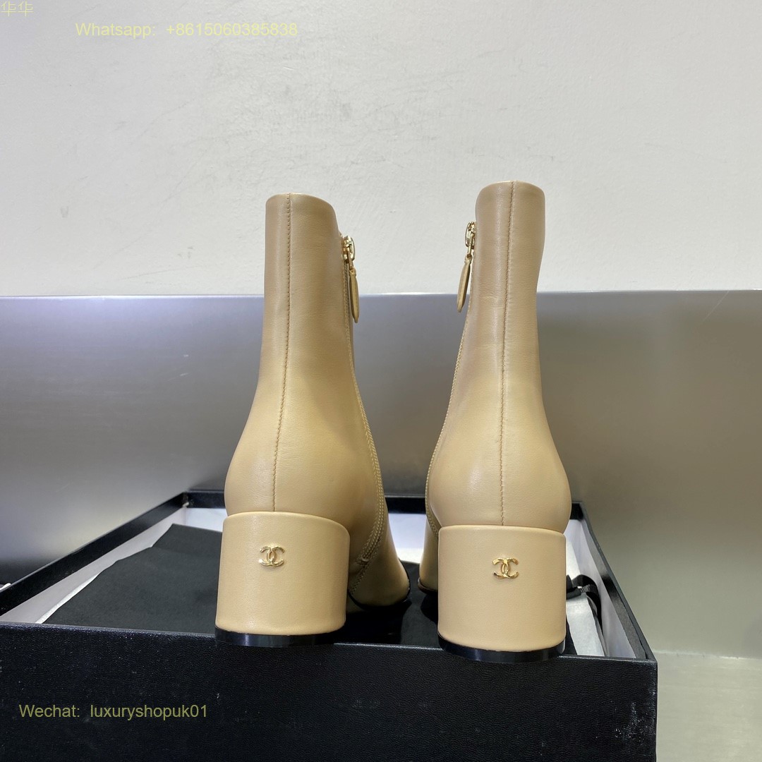 Chanel block heels cap toe ankle boot Women Shoes