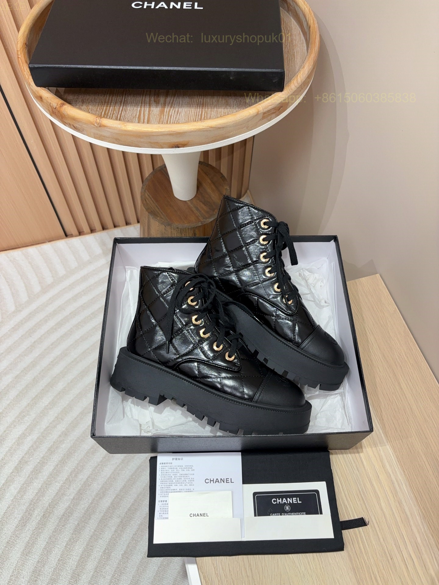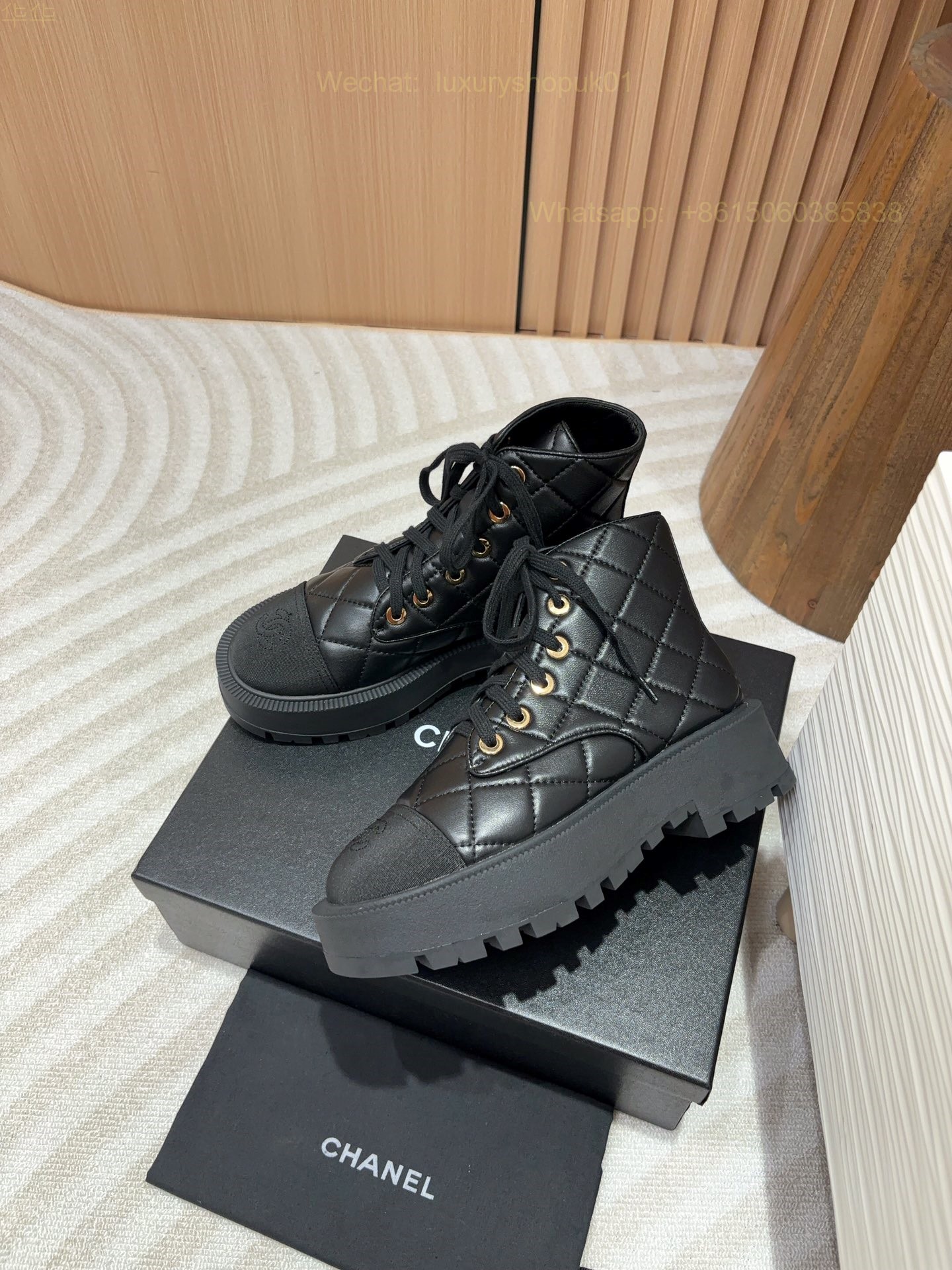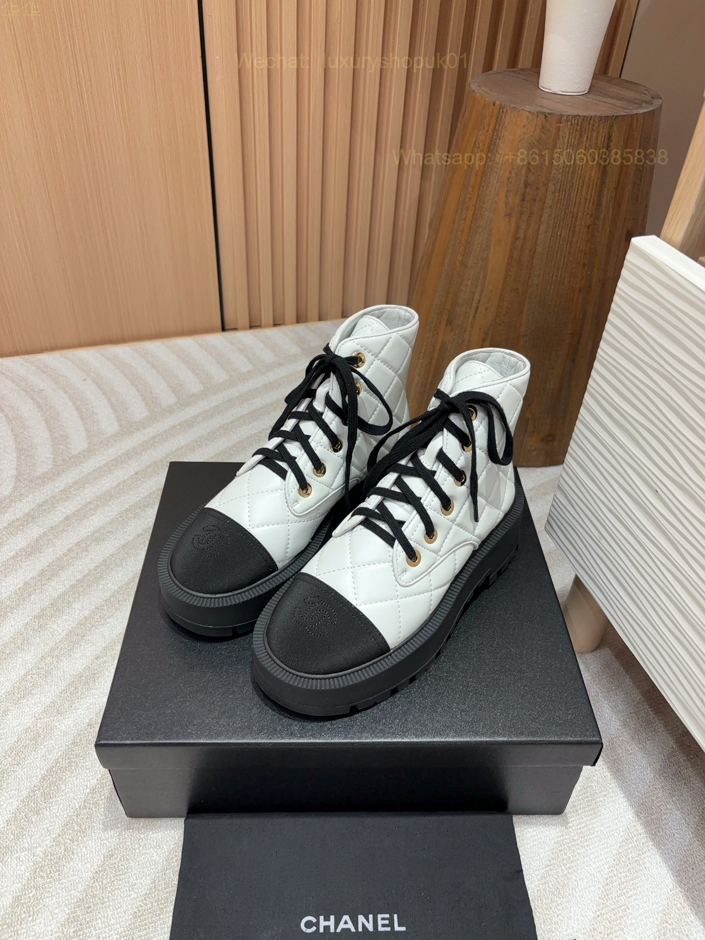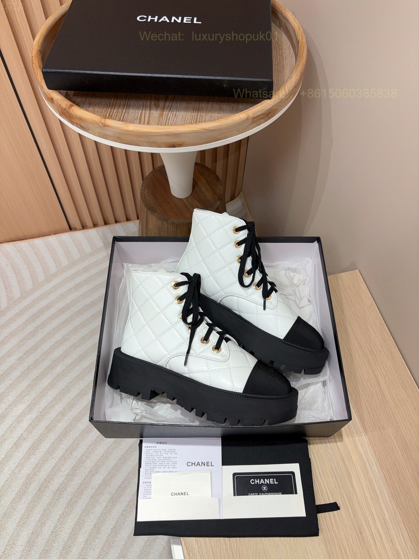 Chanel Quilted Leather CC Cap Toe Platform Combat Boots Women Shoes