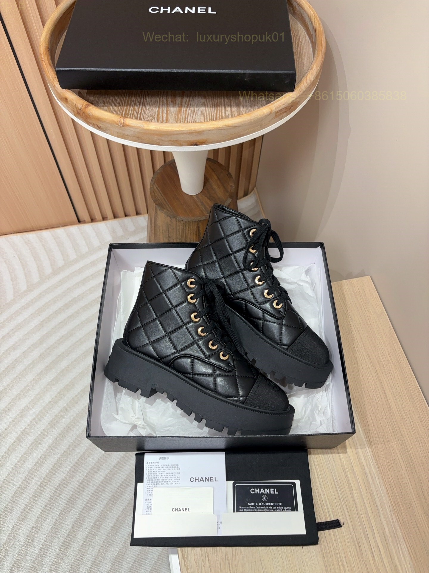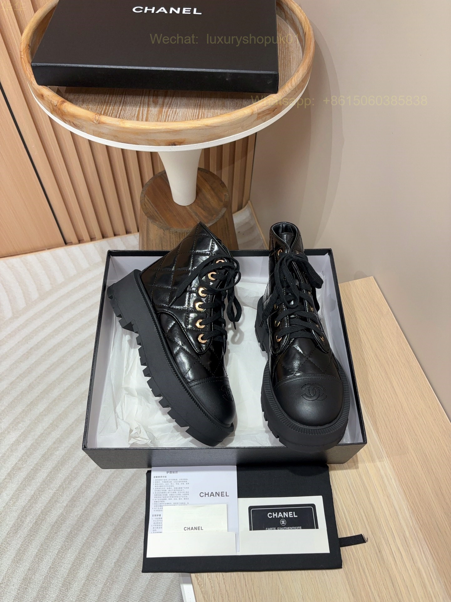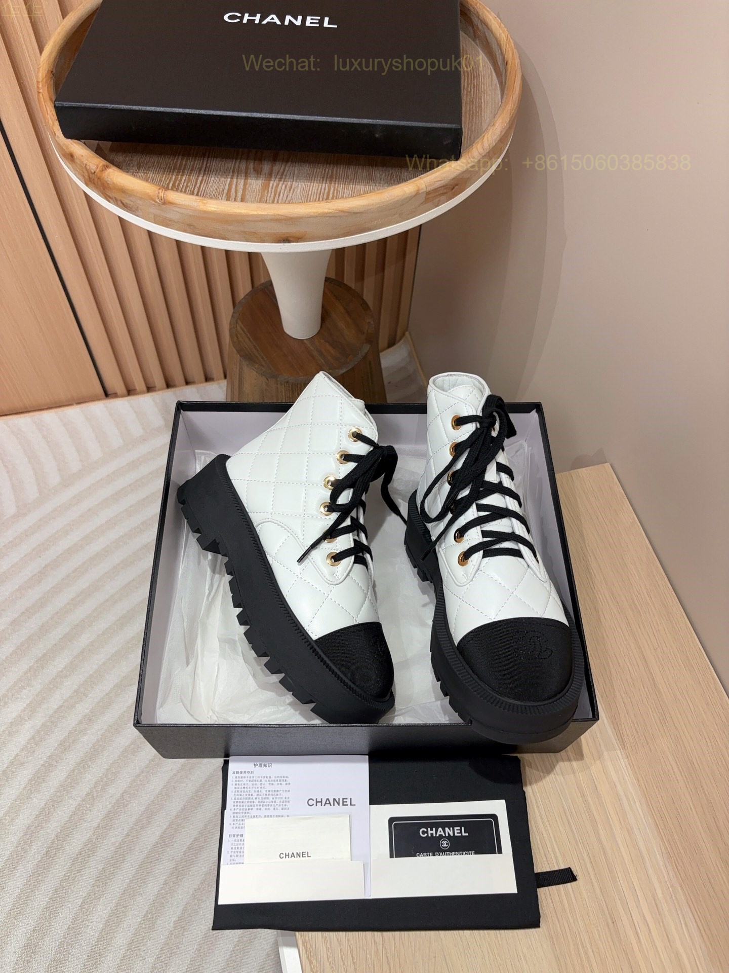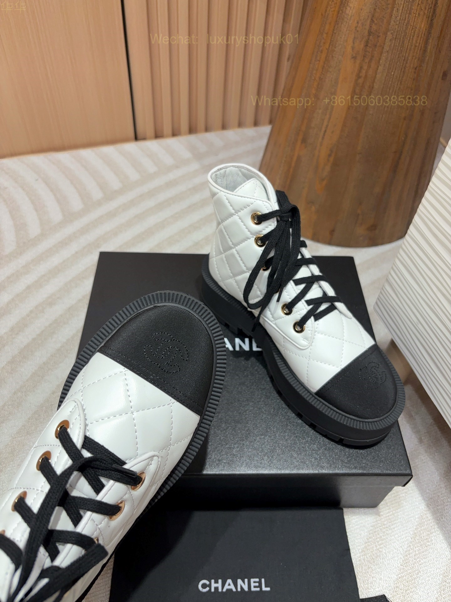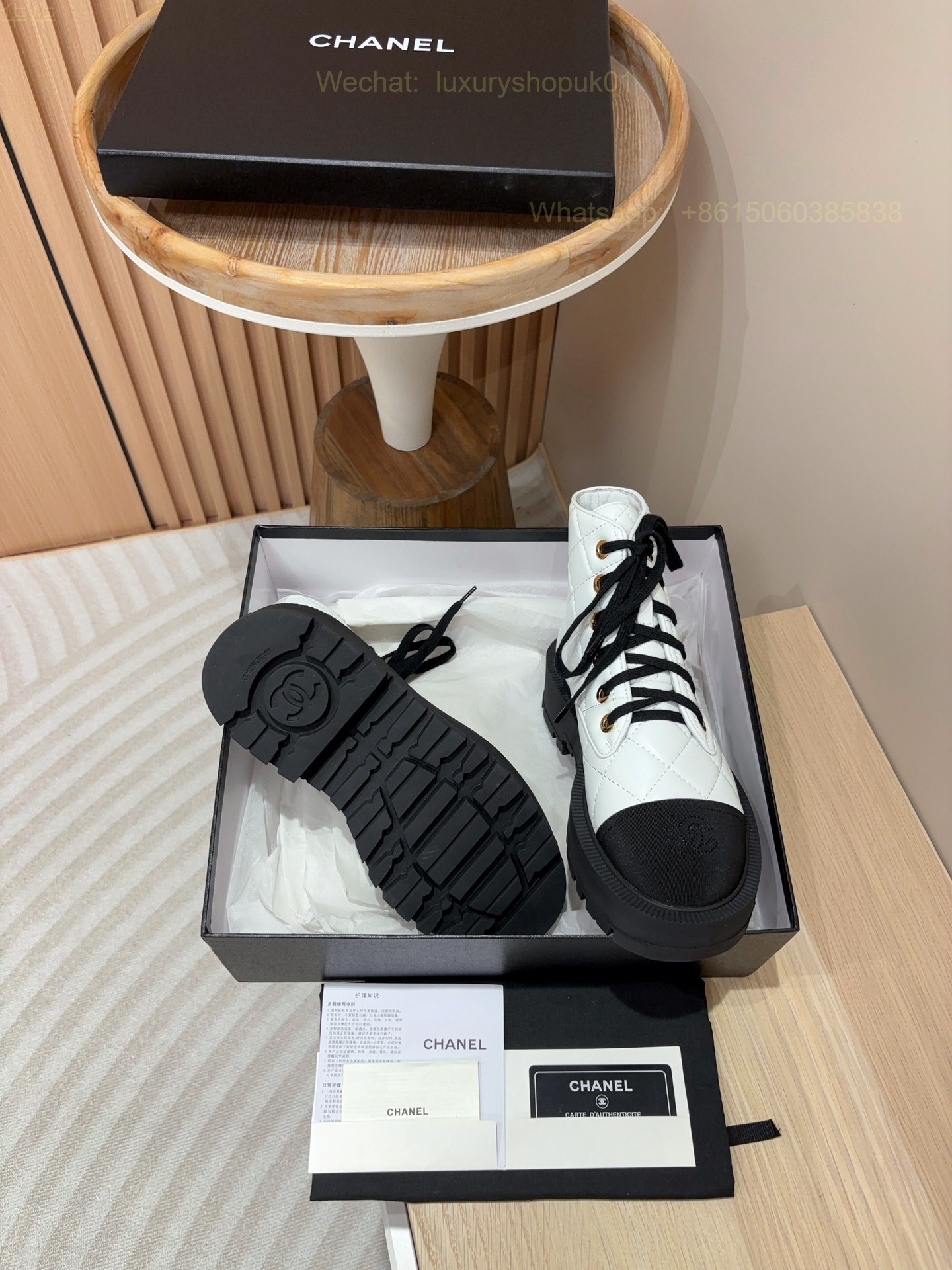 Chanel Quilted Leather CC Cap Toe Platform Combat Boots Women Shoes