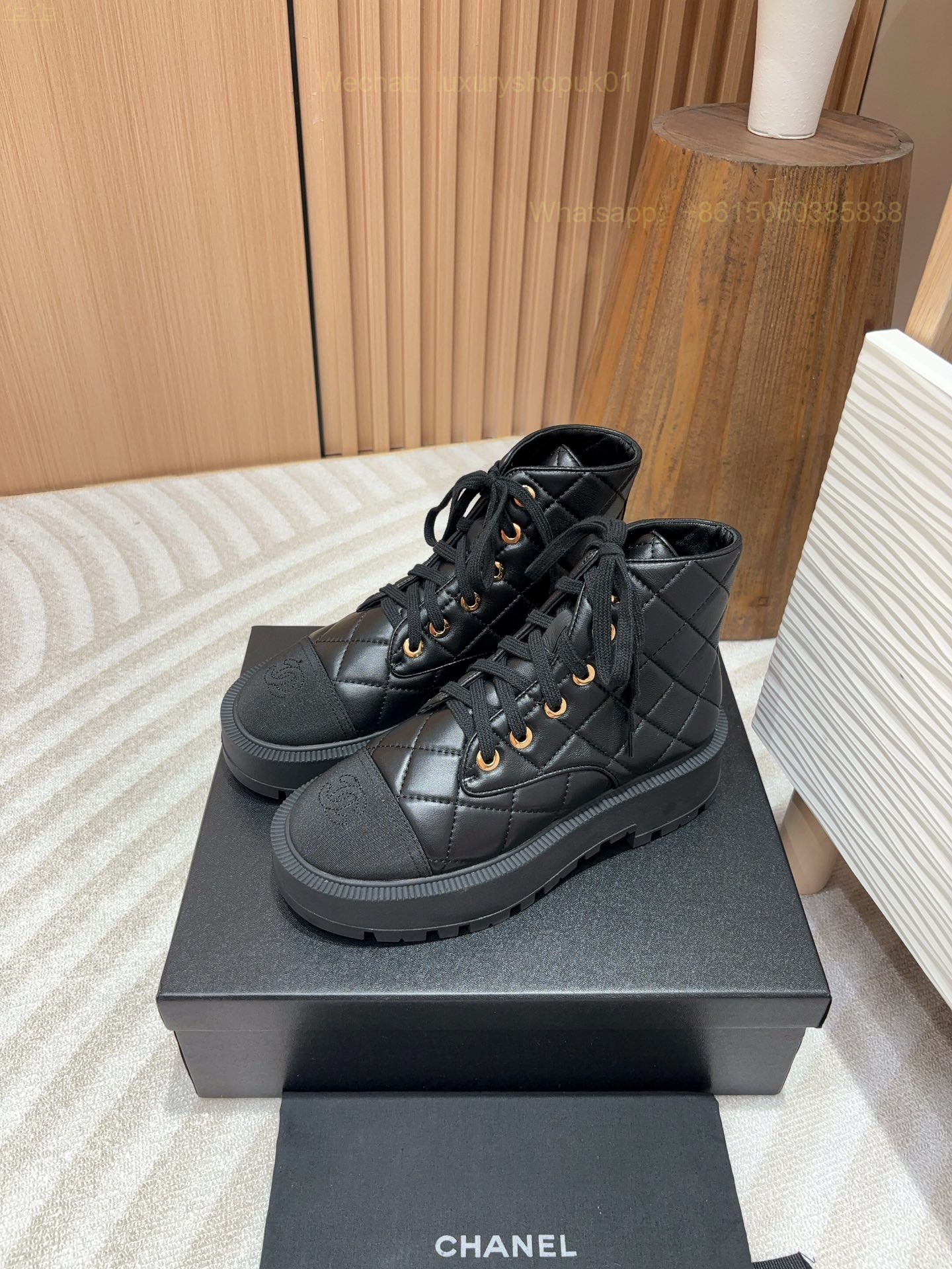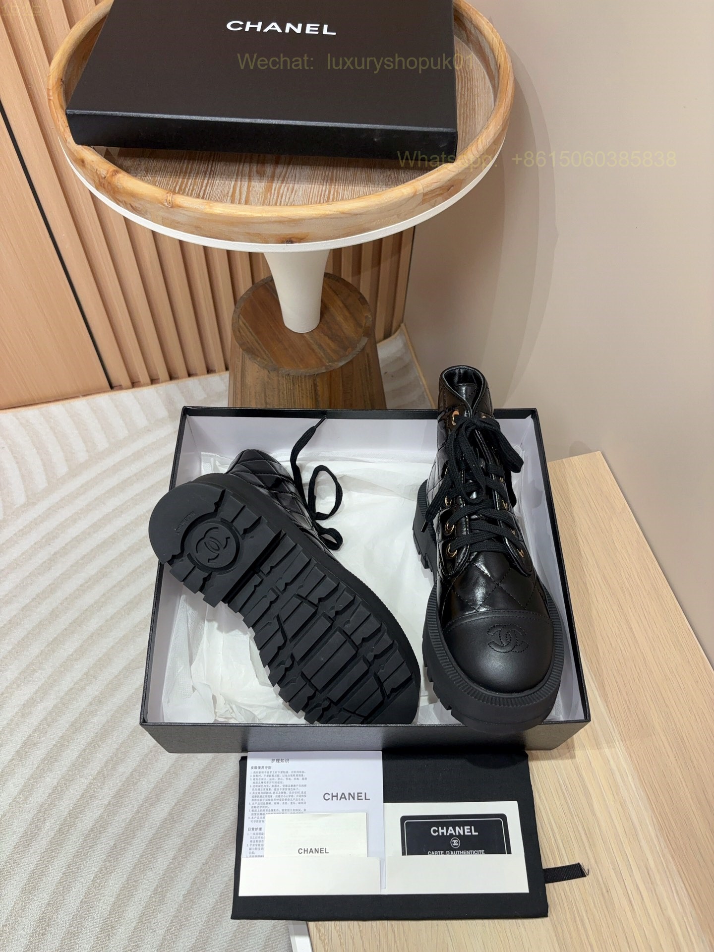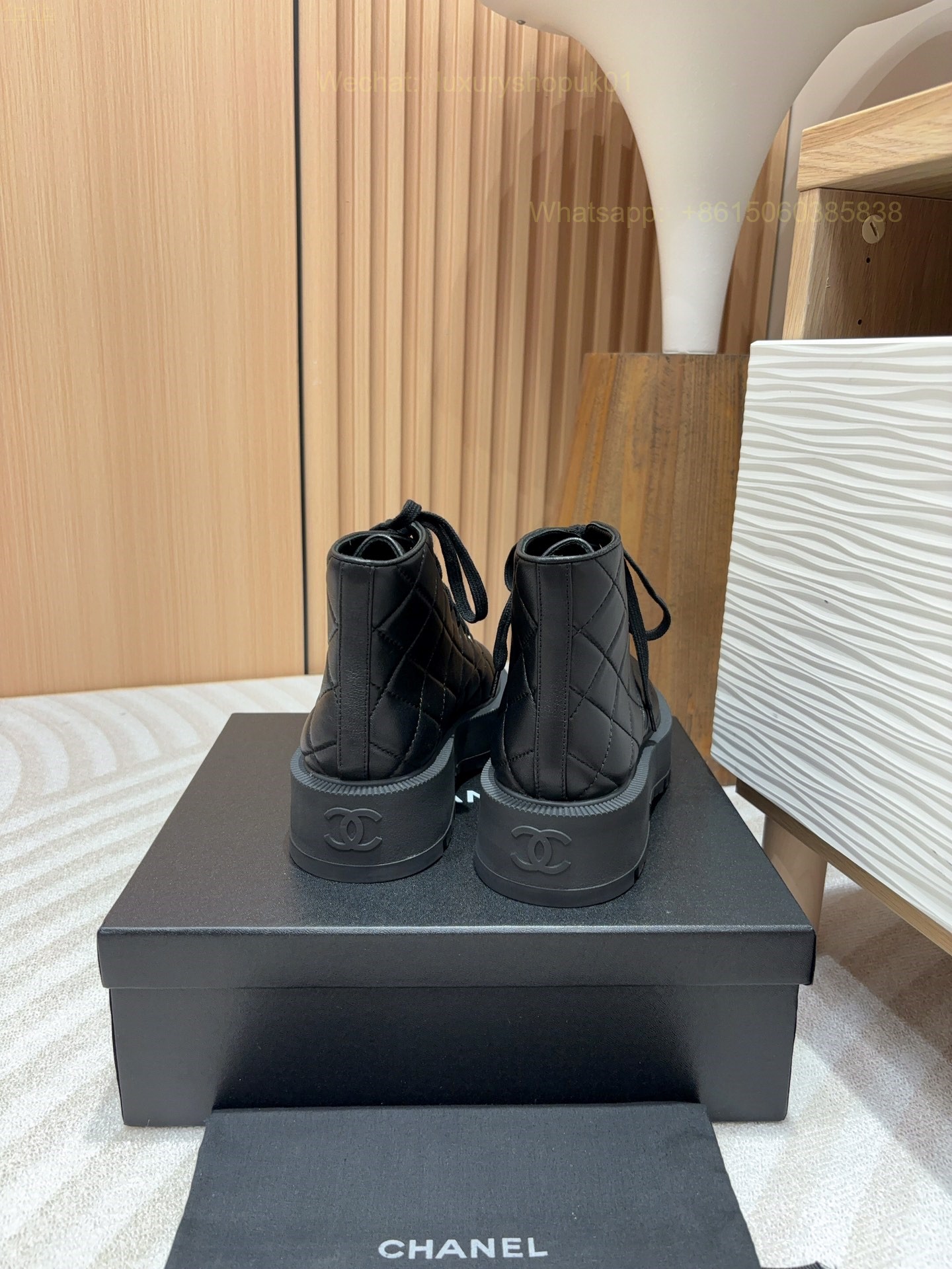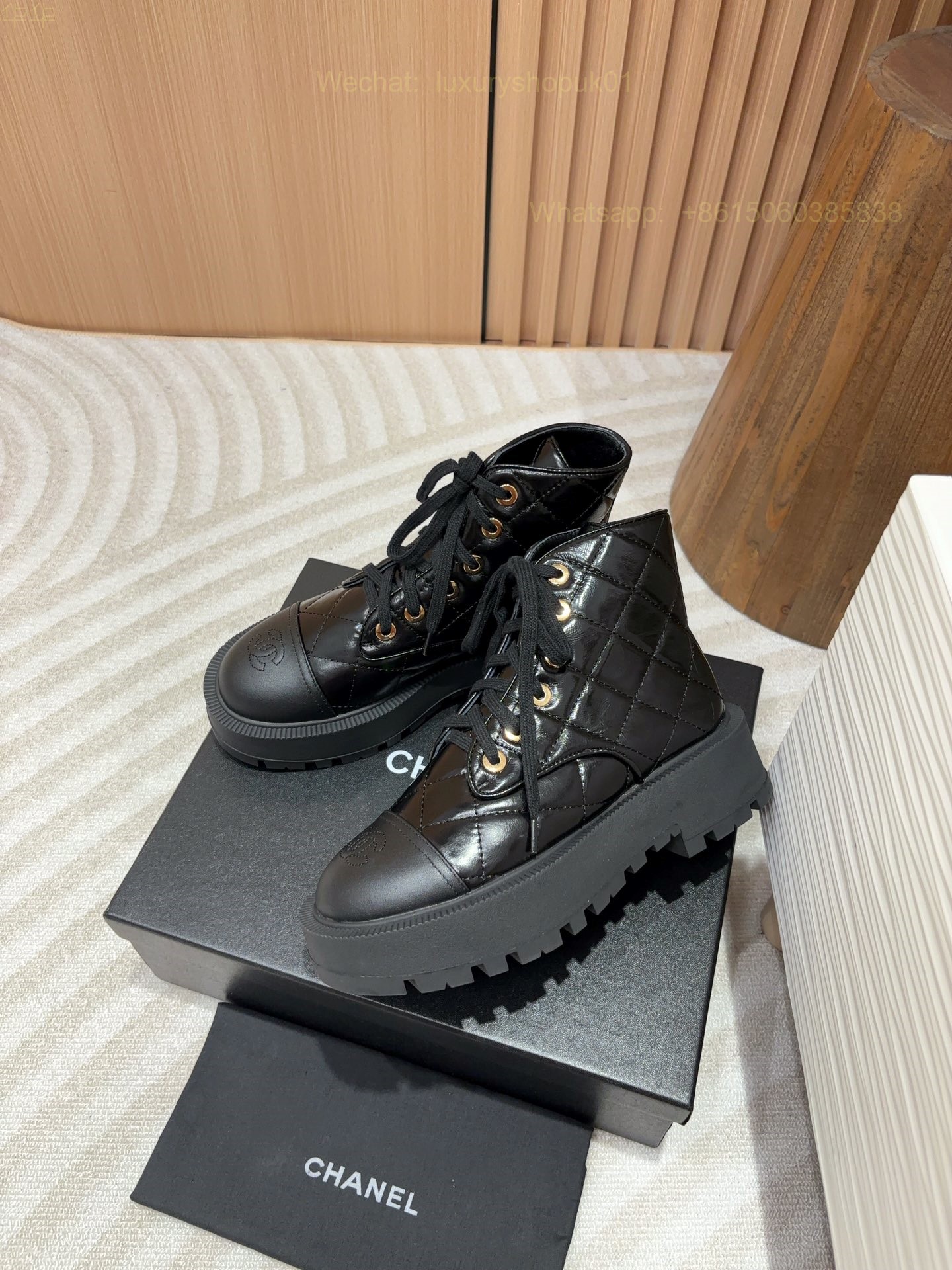 Chanel Quilted Leather CC Cap Toe Platform Combat Boots Women Shoes