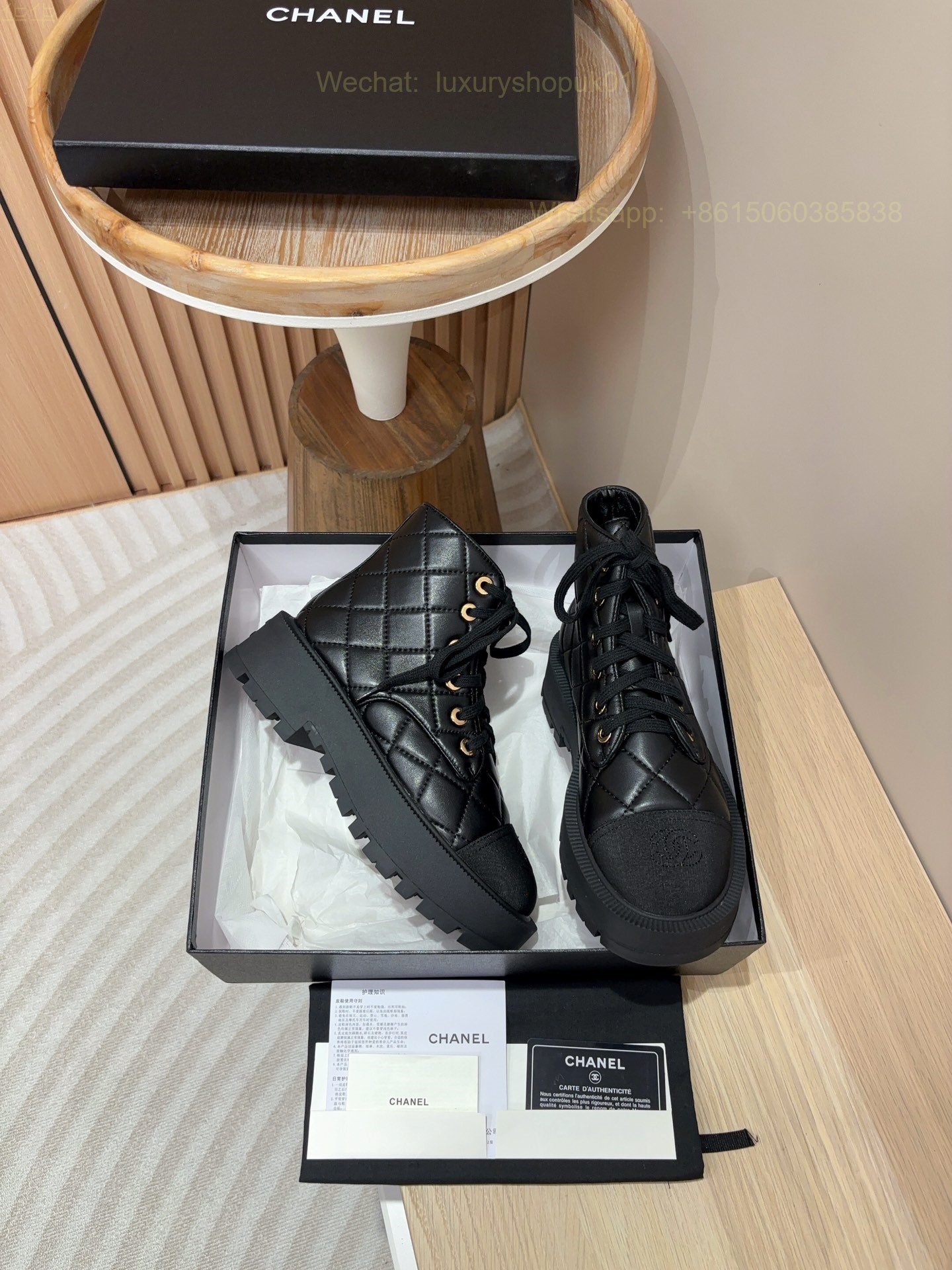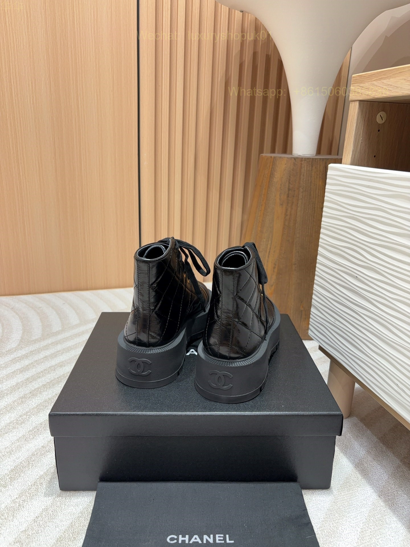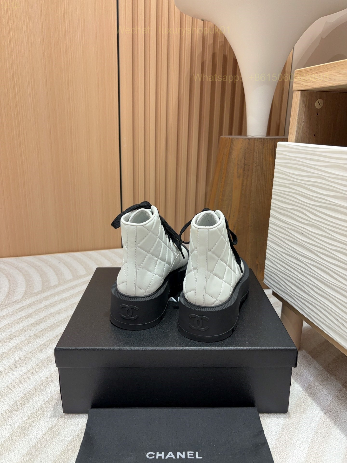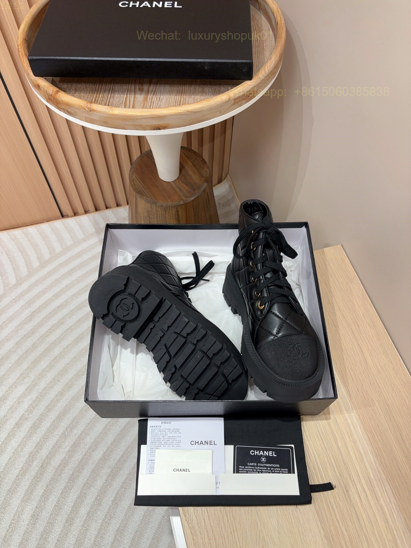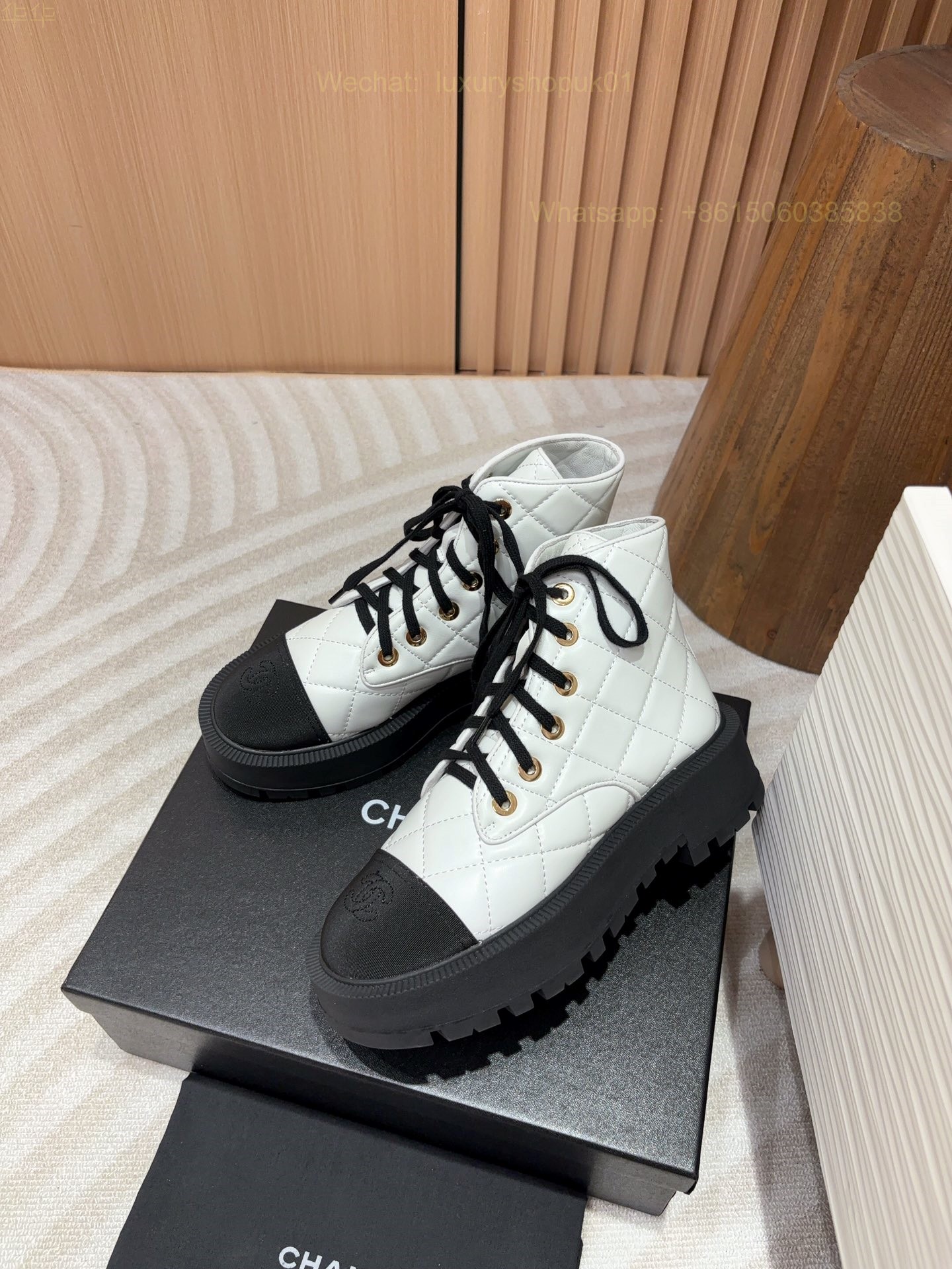 Chanel Quilted Leather CC Cap Toe Platform Combat Boots Women Shoes