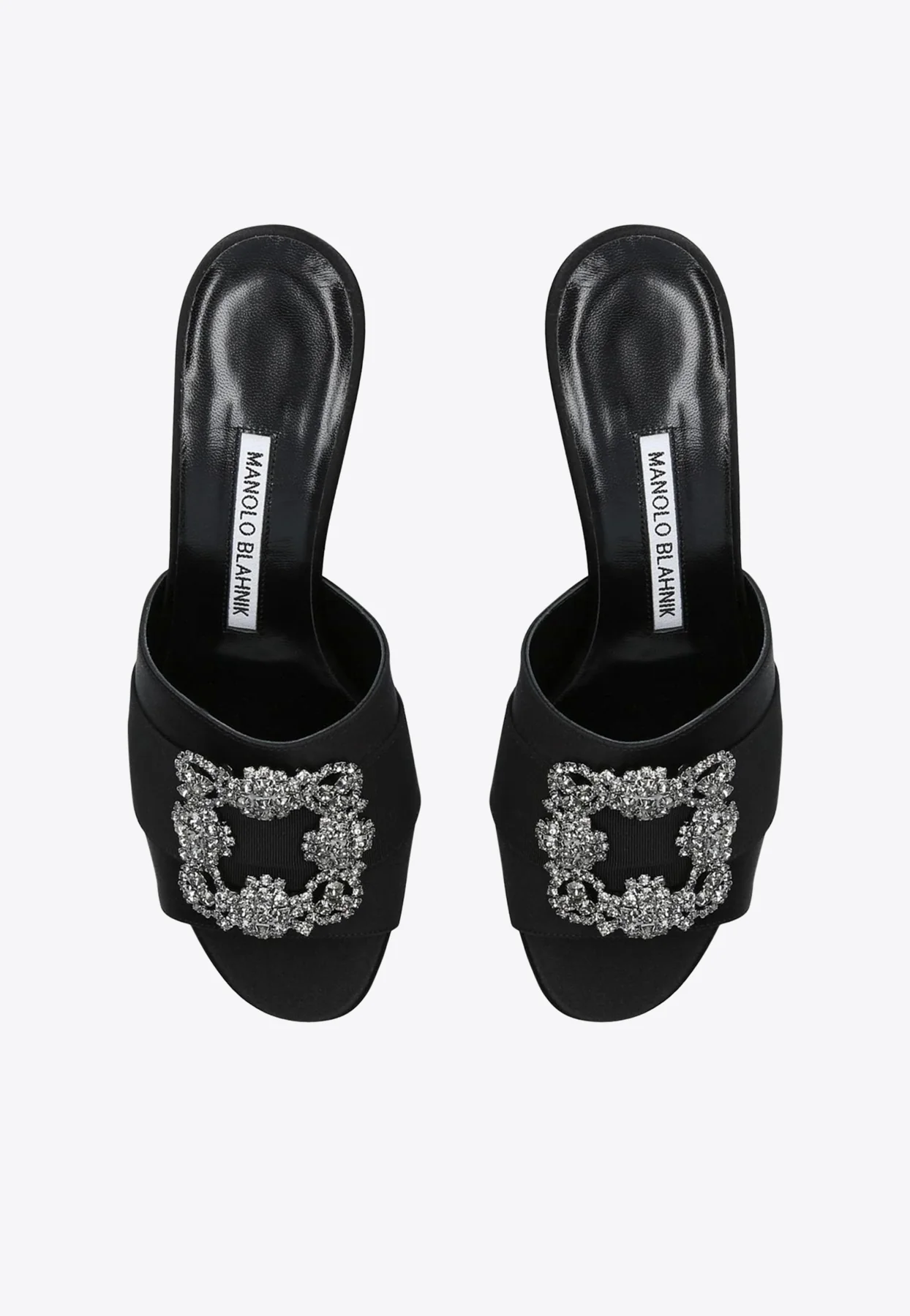 Manolo Blahnik Hangisimu 70 Satin Mules with FMC Crystal Buckle