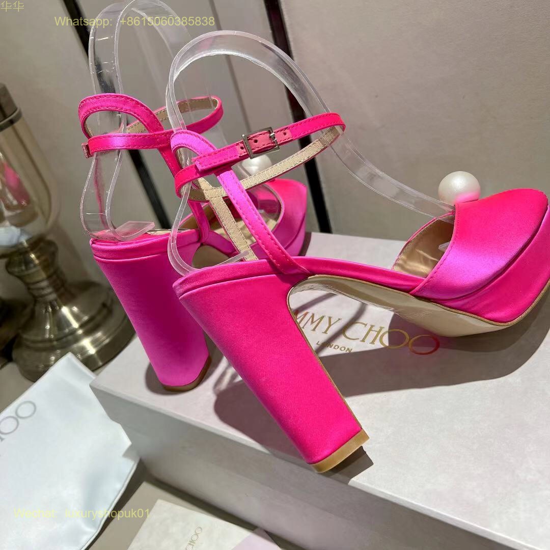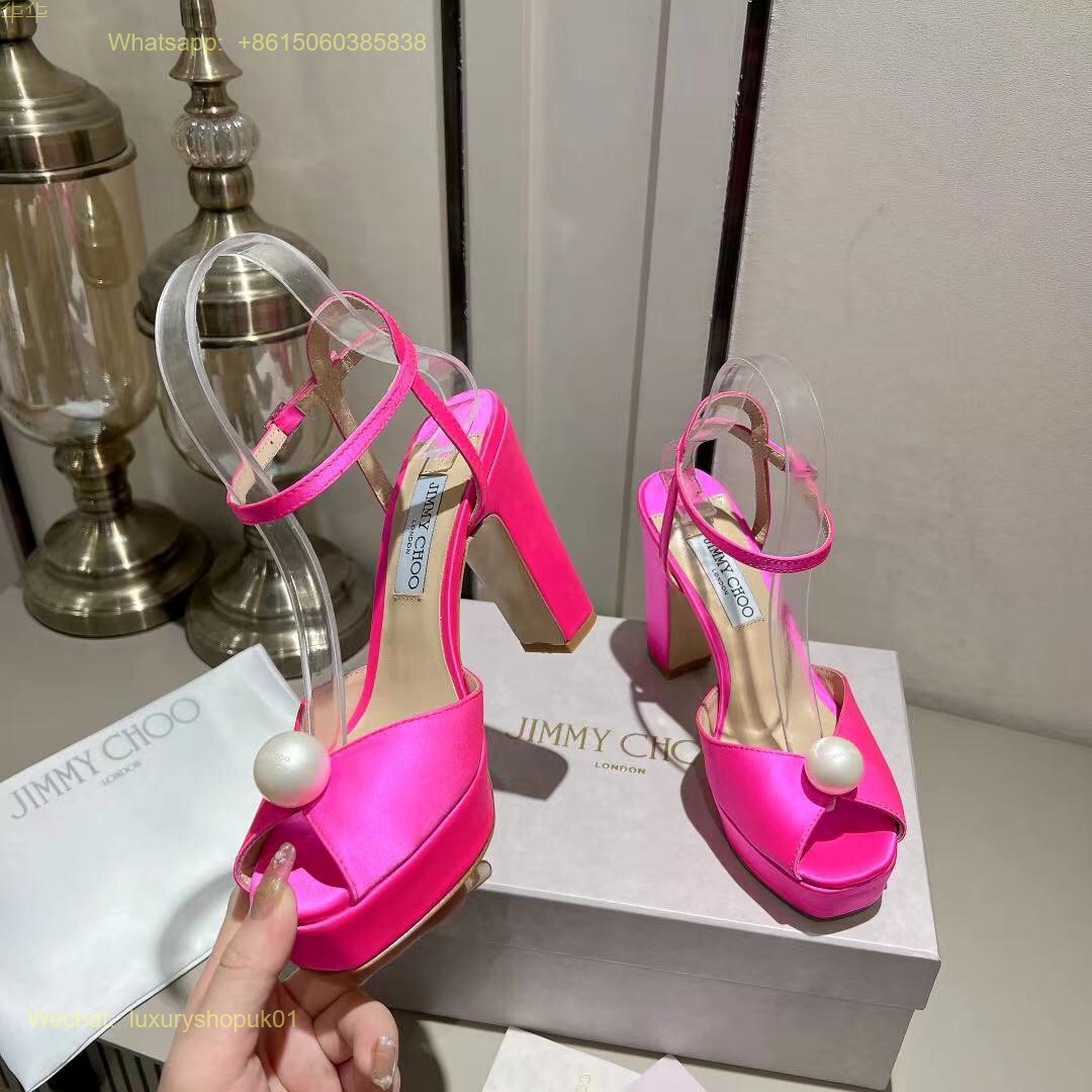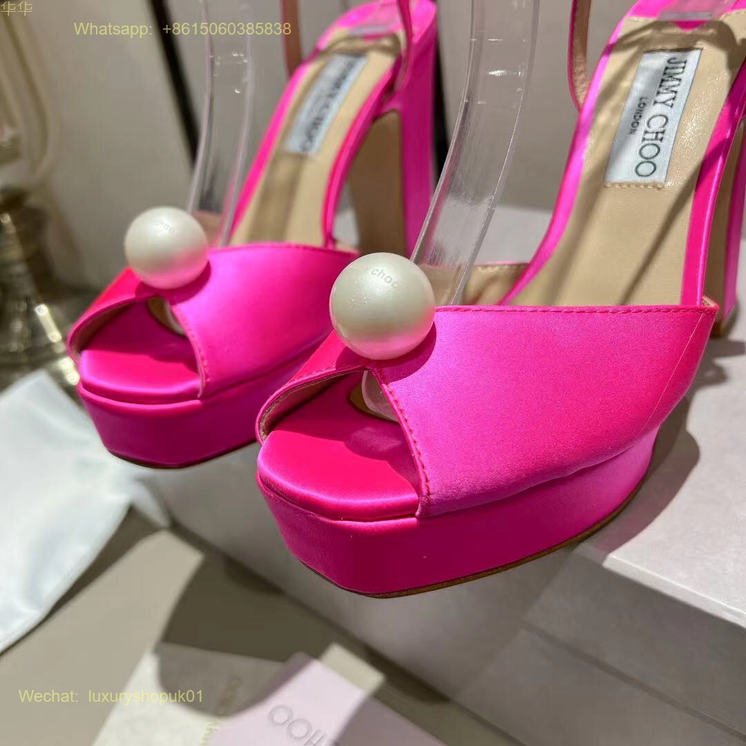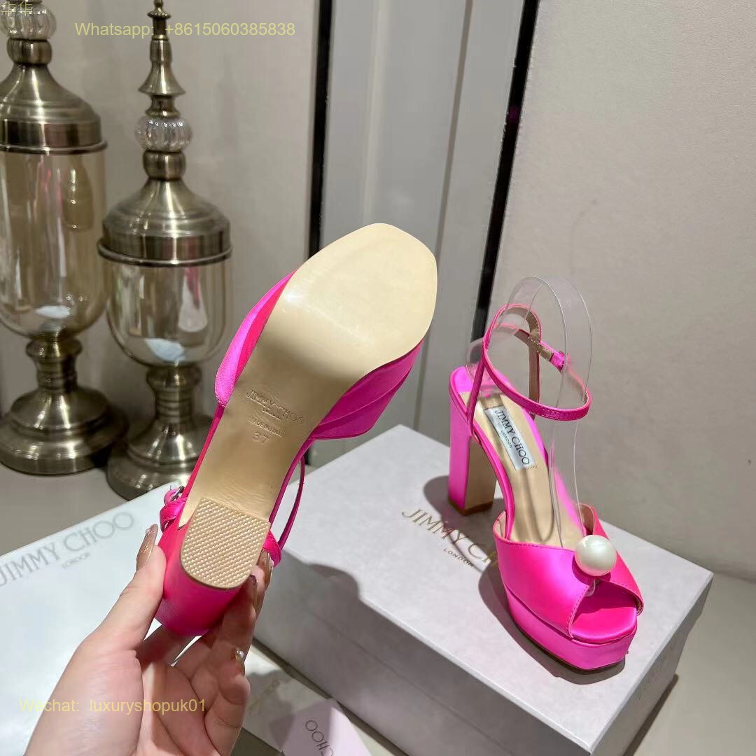 Jimmy Choo Sacaria Pearl-Embellished Satin Platform Sandals Women Shoes