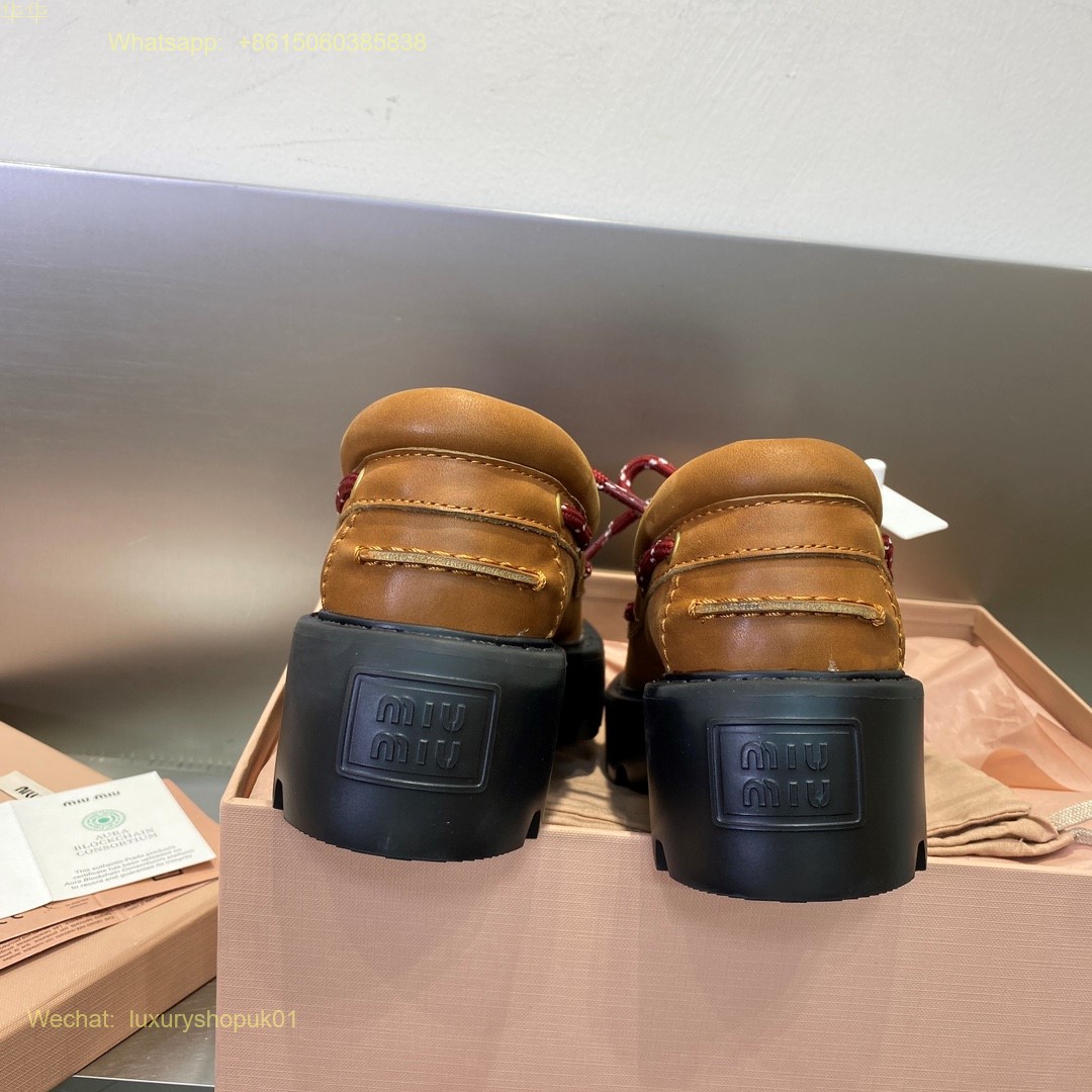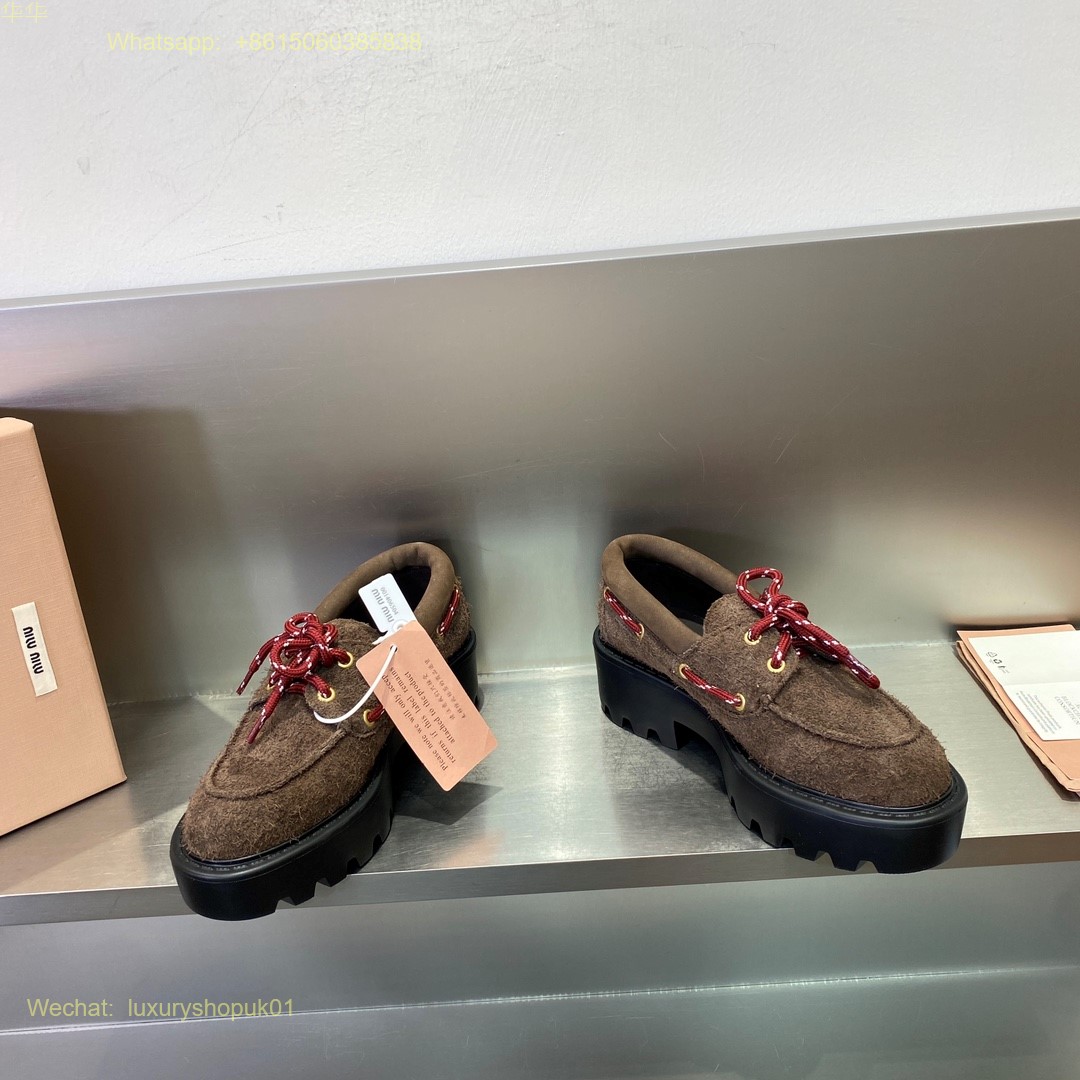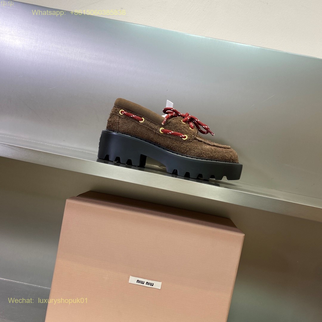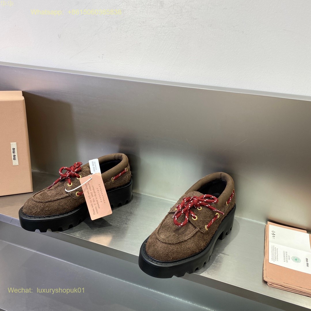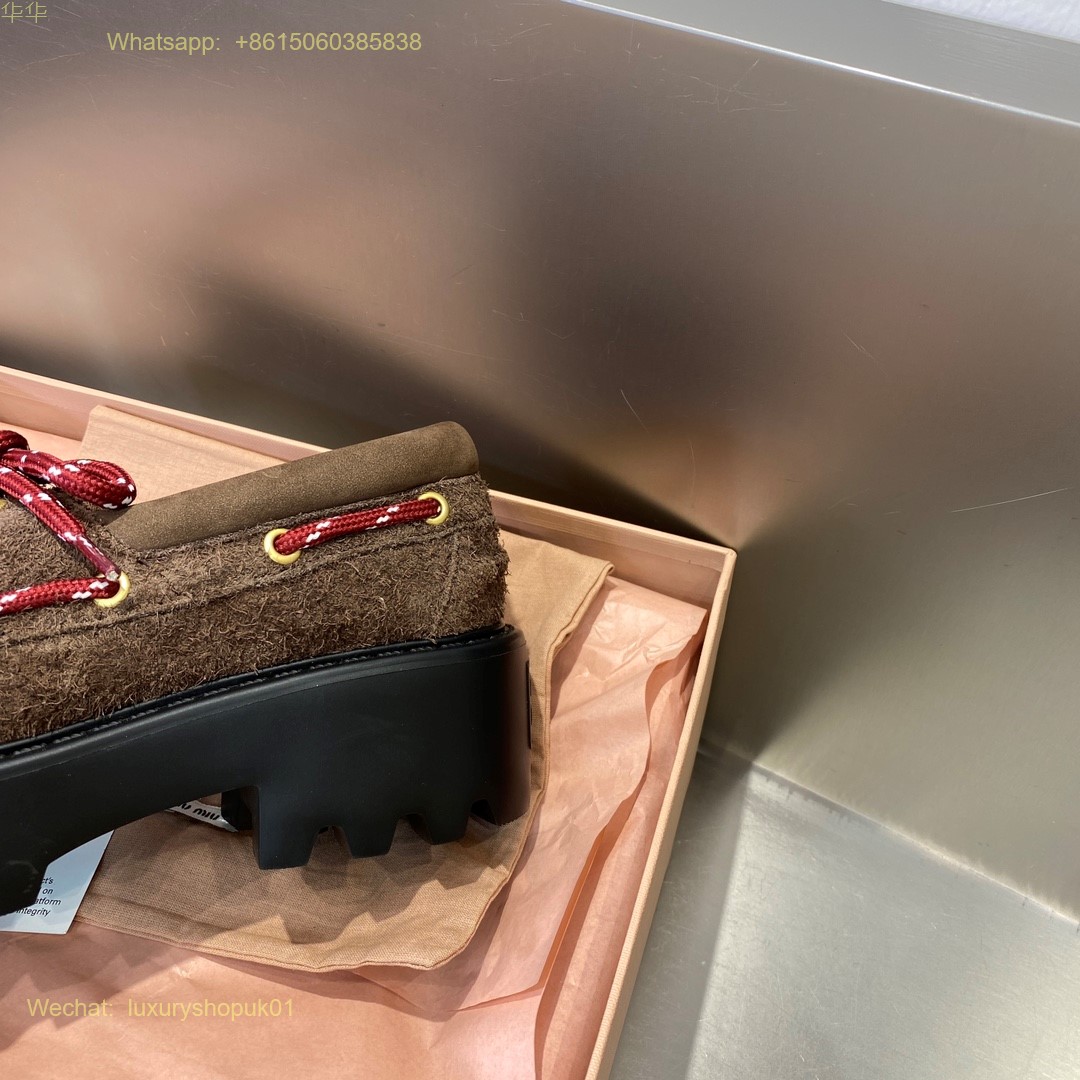 Miu Miu Lace-Up Suede Platform Loafers Brown Women Shoes