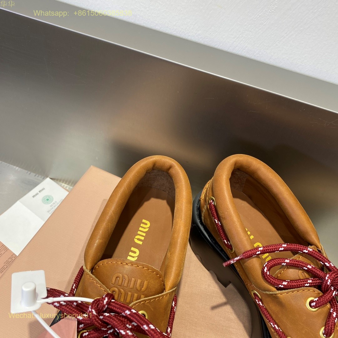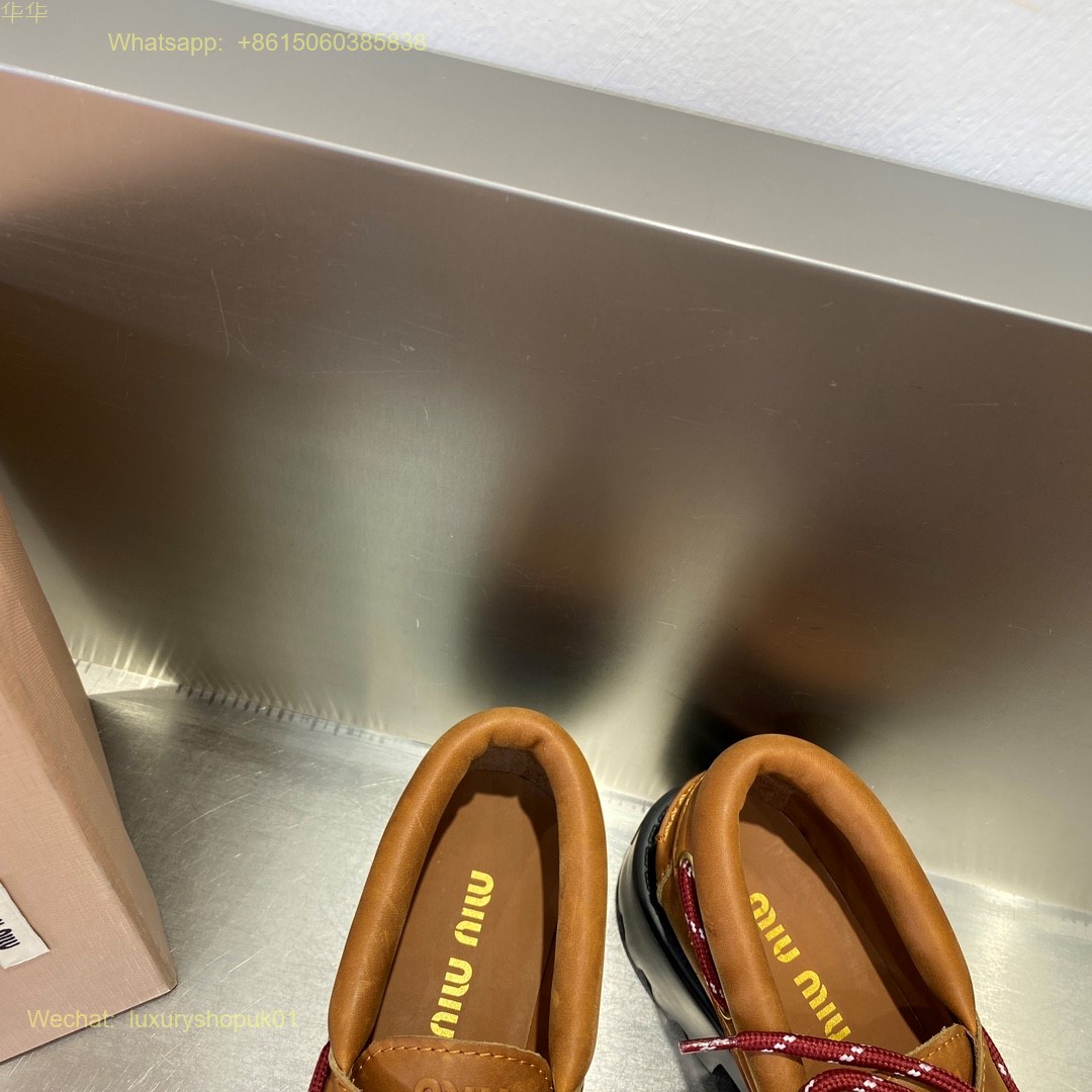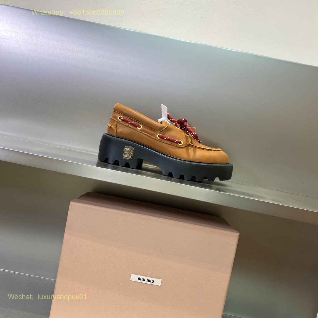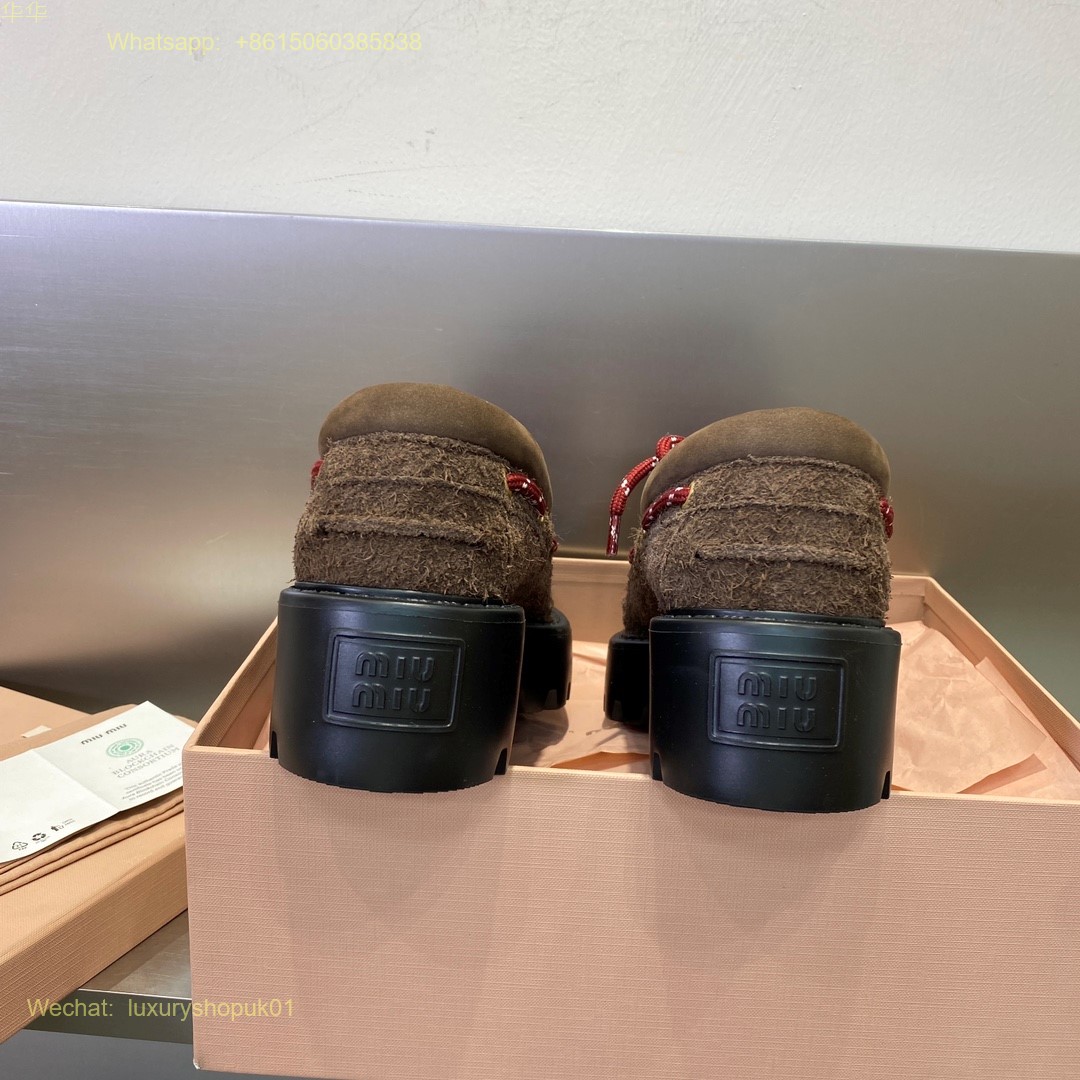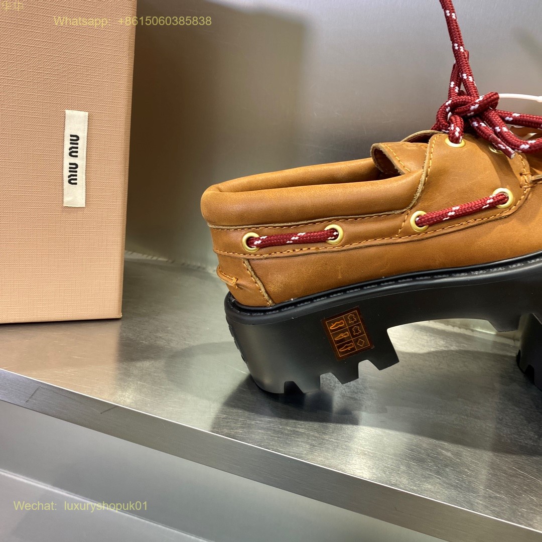 Miu Miu Lace-Up Suede Platform Loafers Brown Women Shoes
