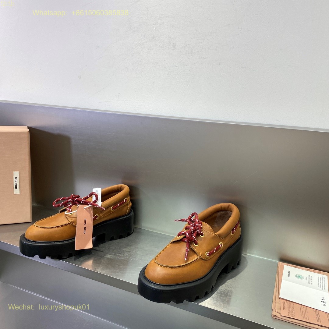 Miu Miu Lace-Up Suede Platform Loafers Women Shoes