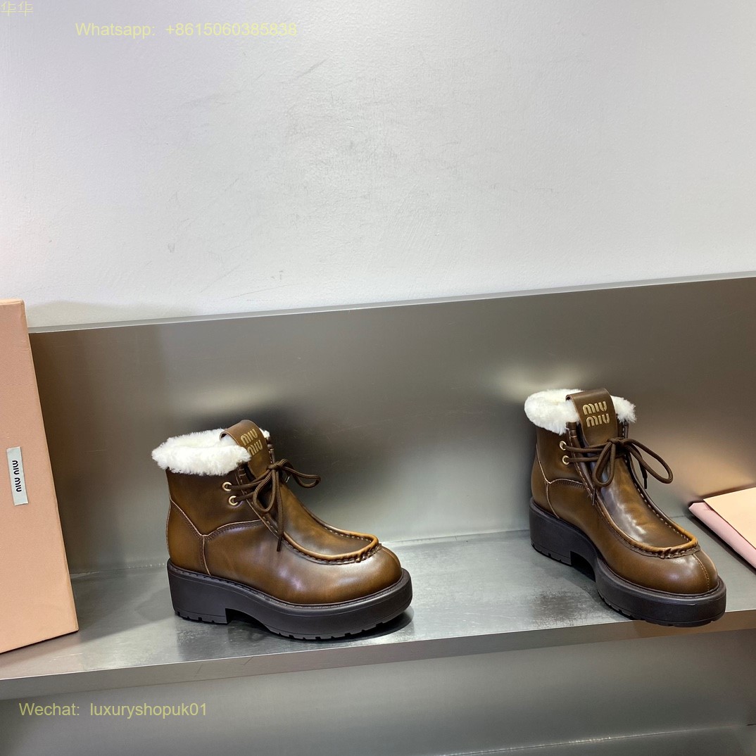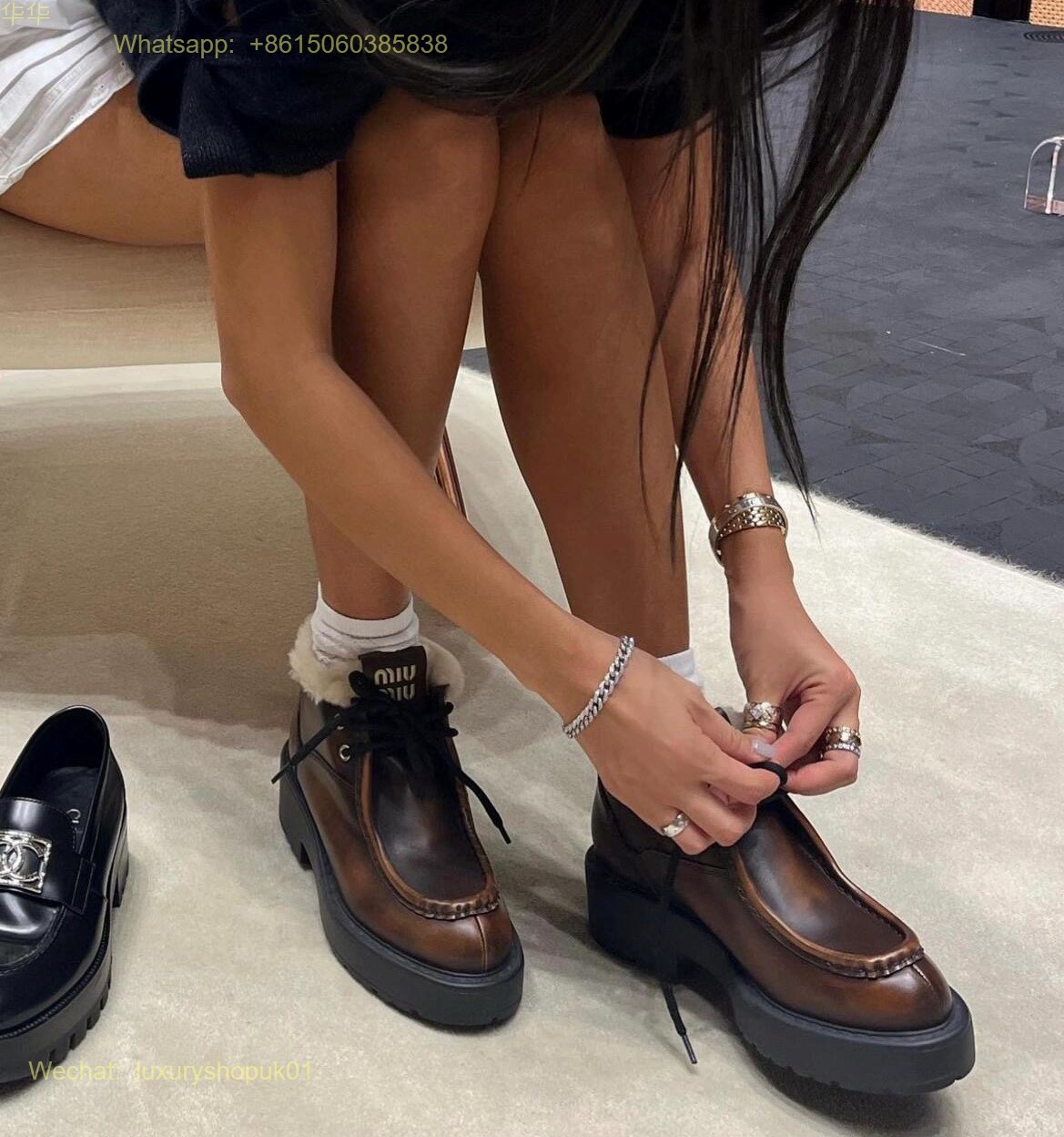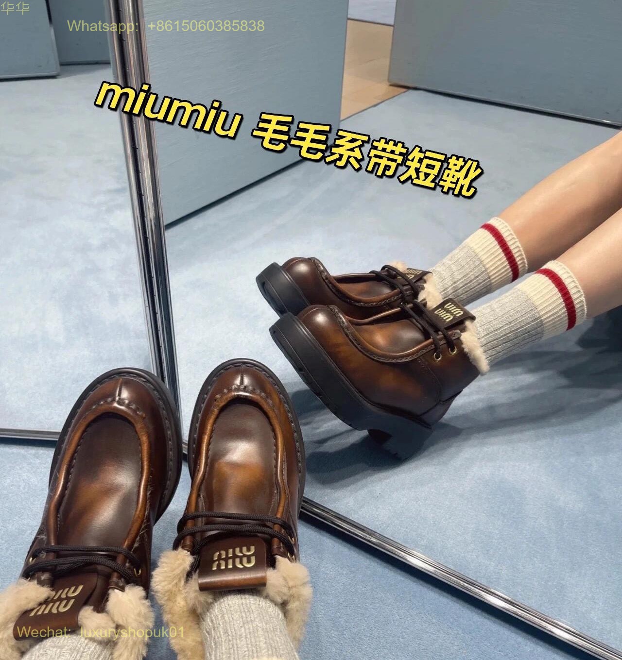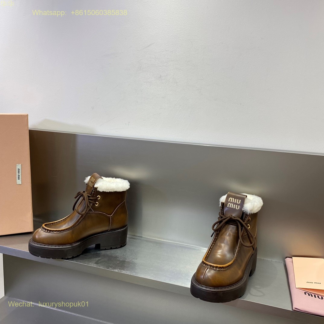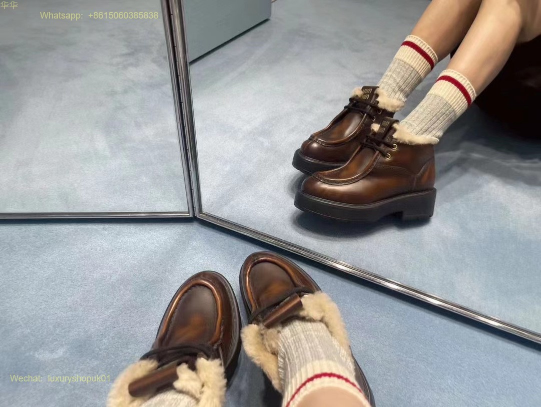 Miu Miu Heeled Lace-Up Platform high top fur shearling Loafers Women Shoes