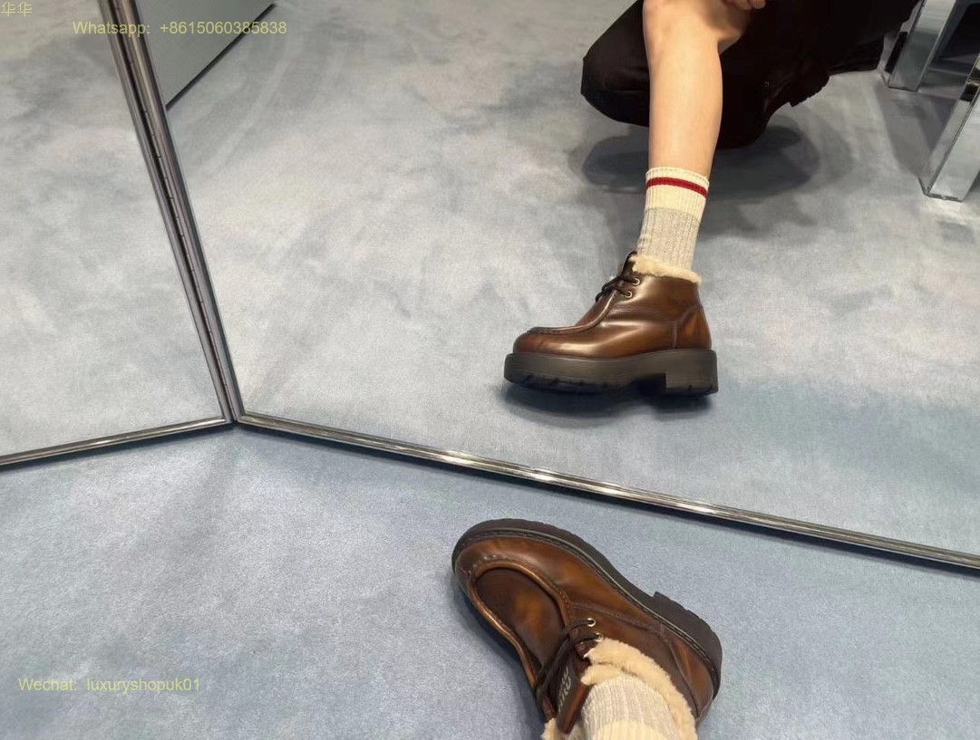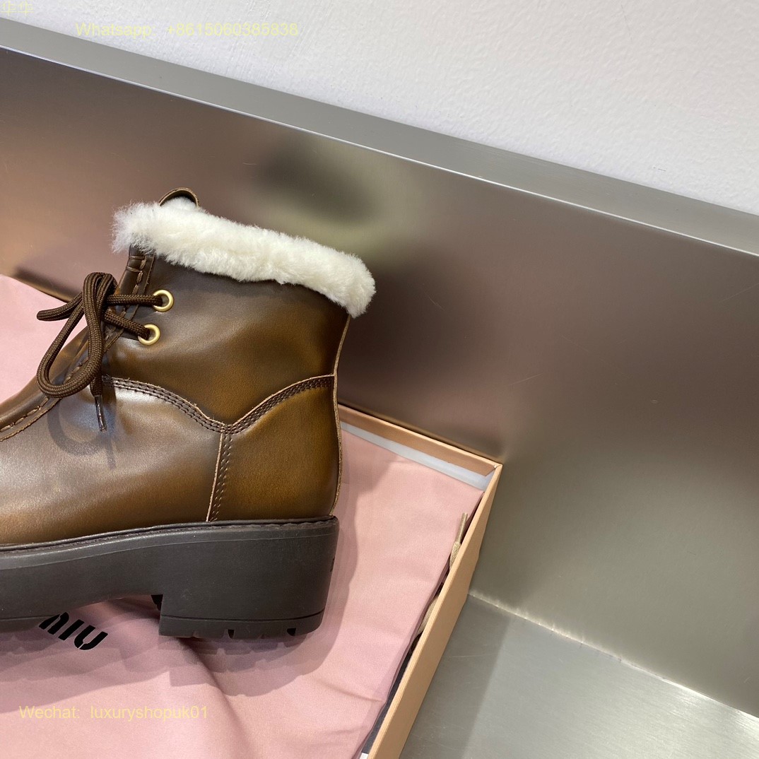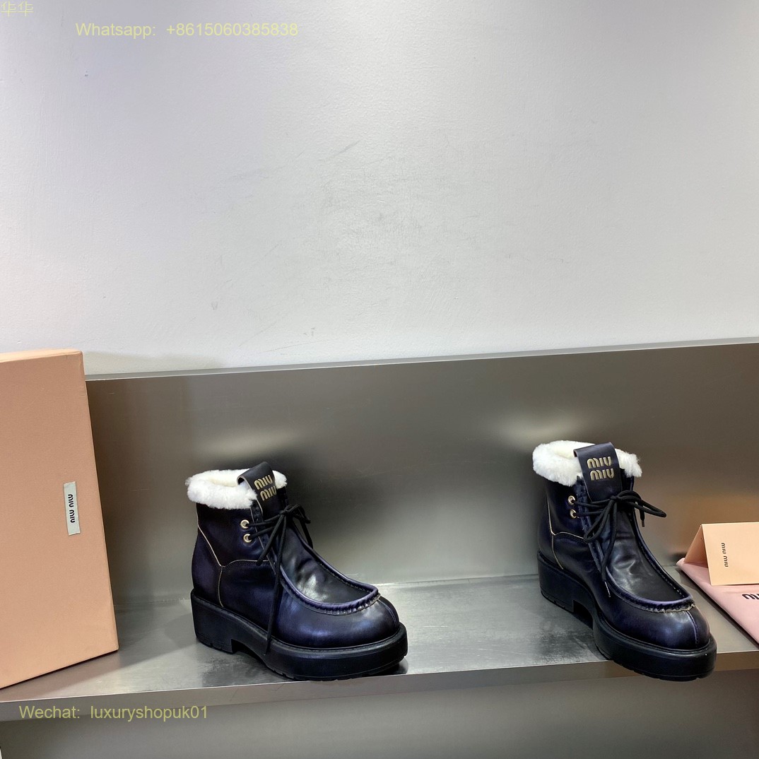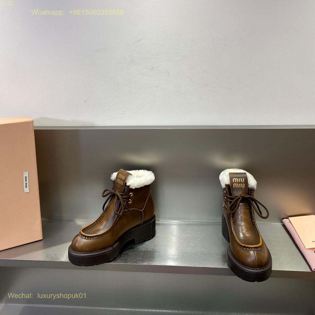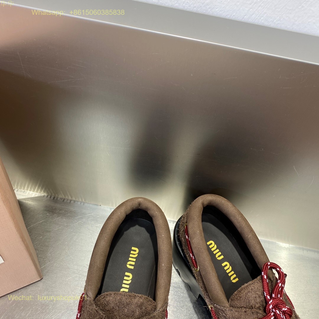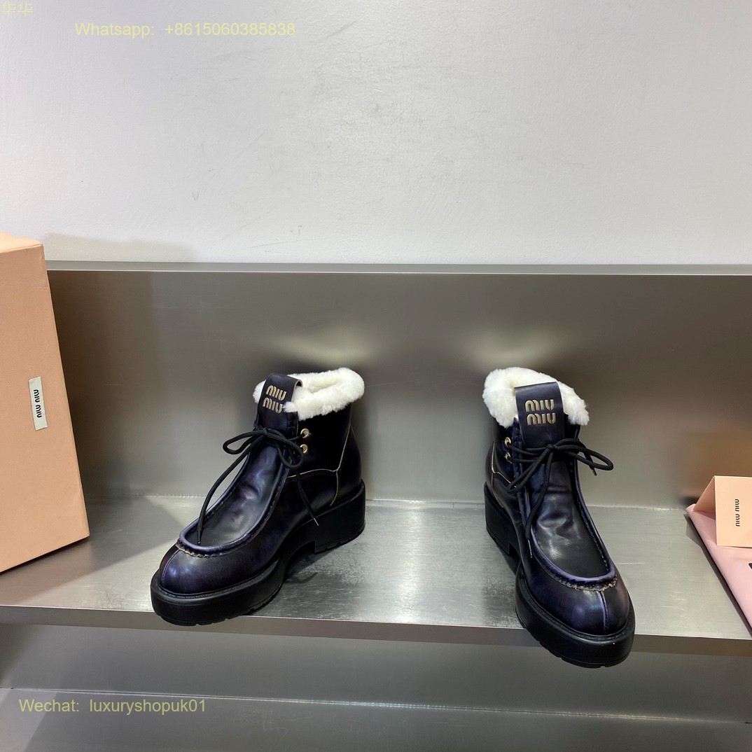 Miu Miu Heeled Lace-Up Platform high top fur shearling Loafers Women Shoes