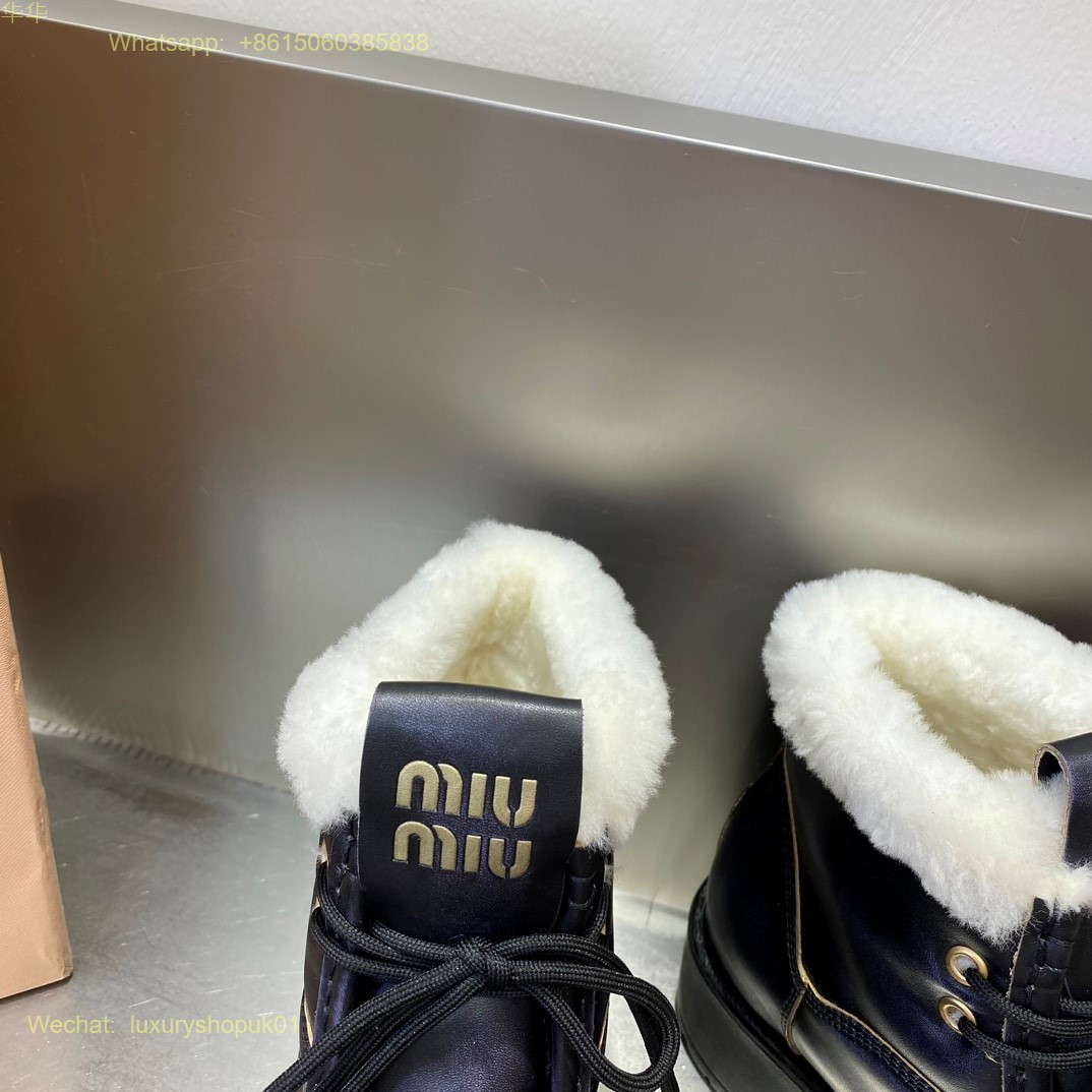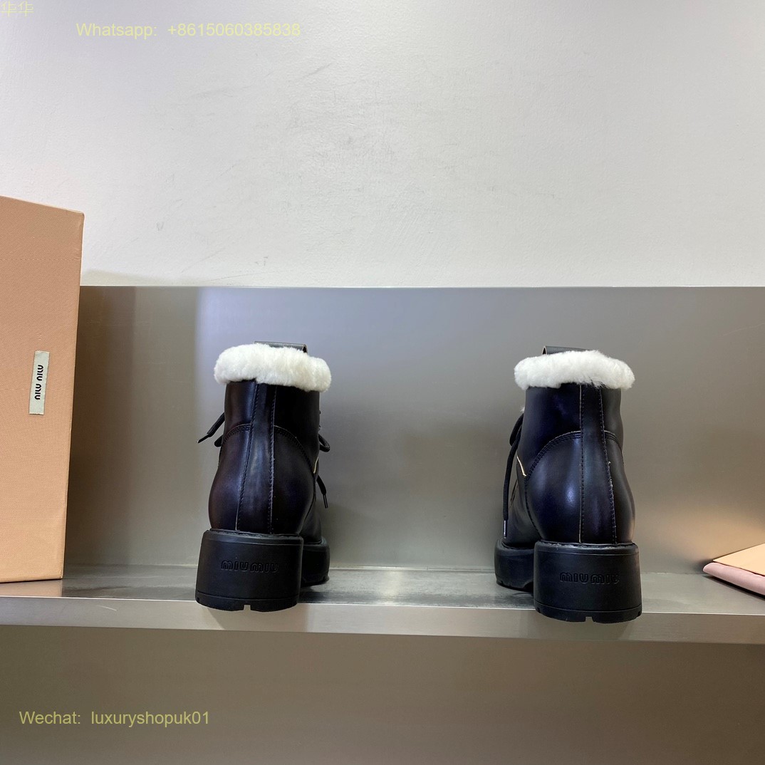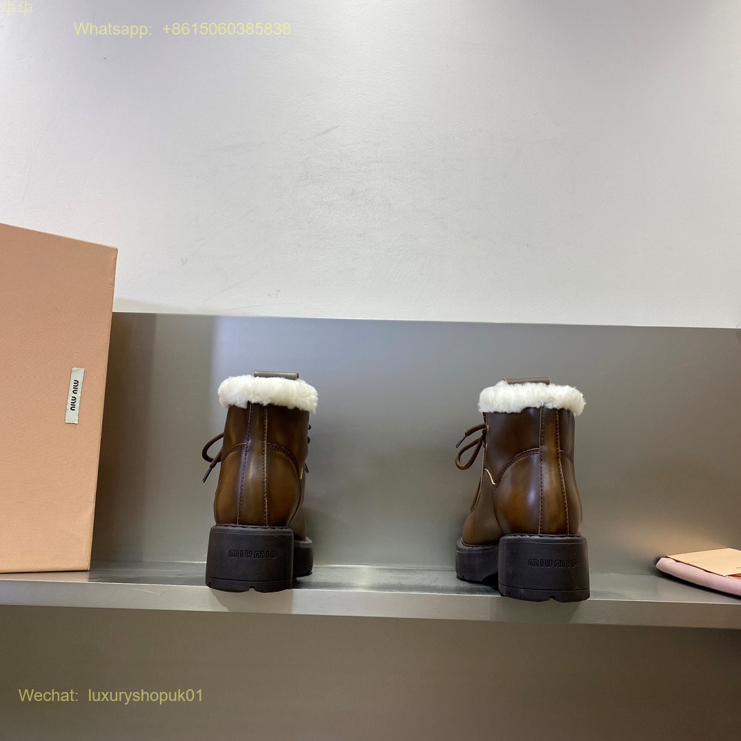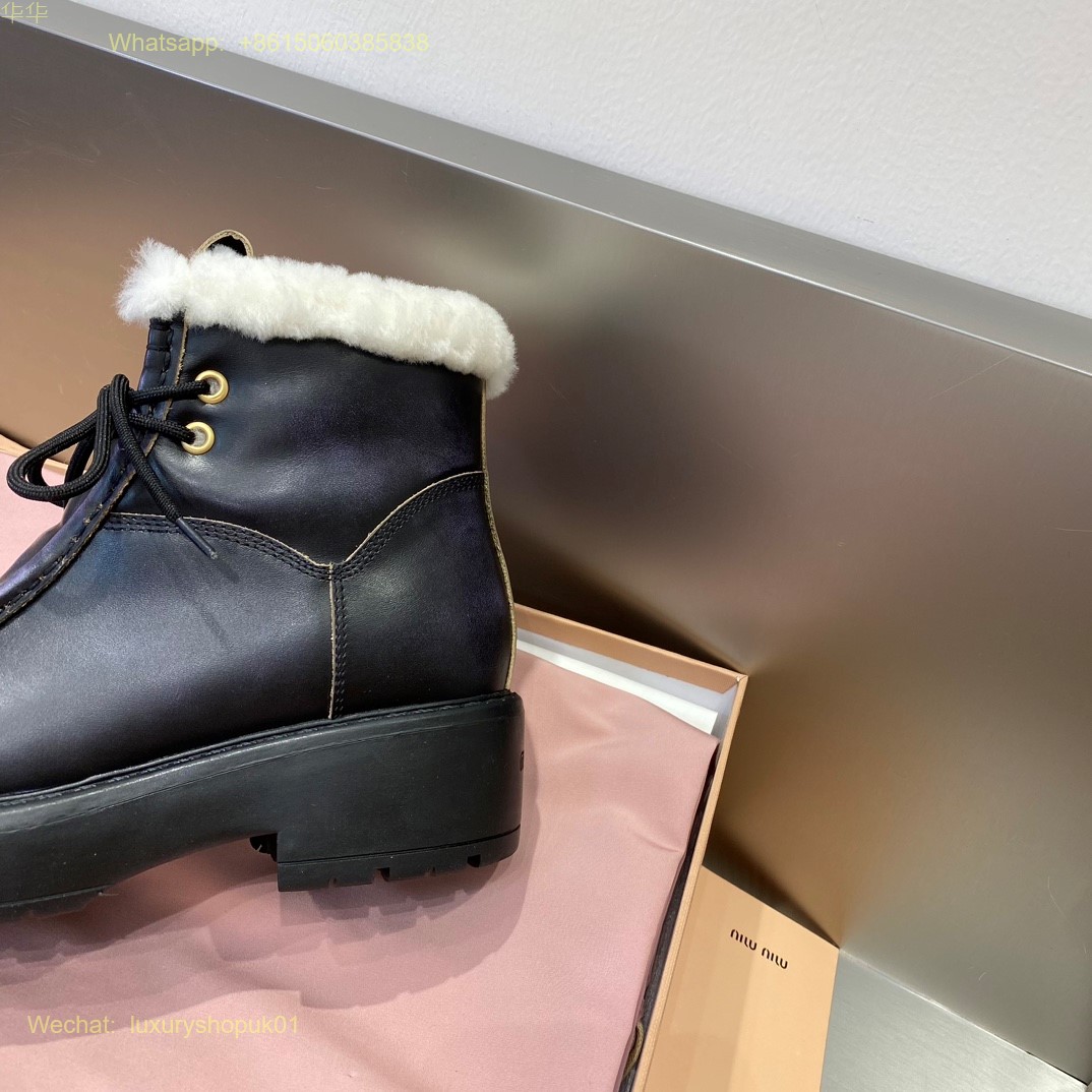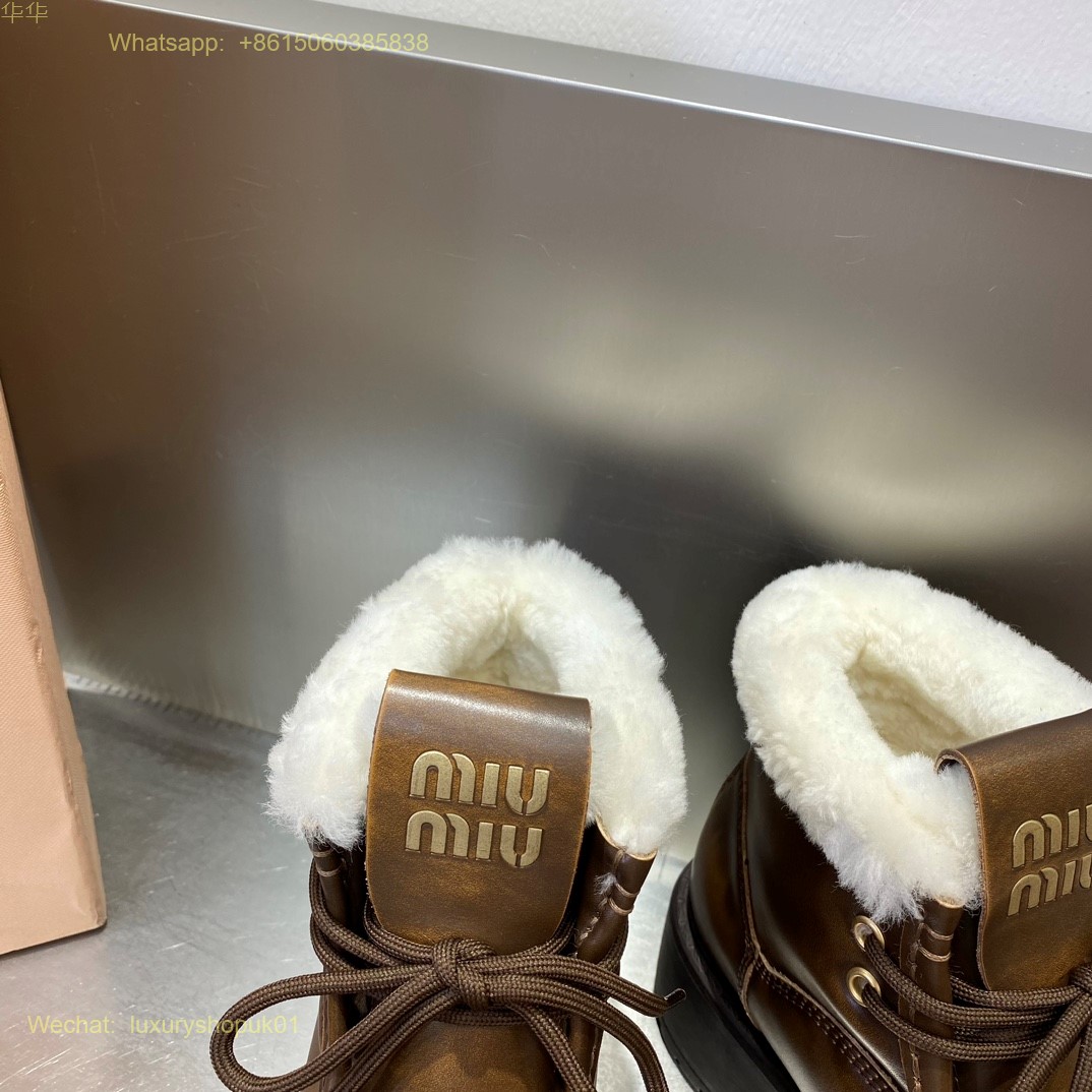 Miu Miu Heeled Lace-Up Platform high top fur shearling Loafers Women Shoes