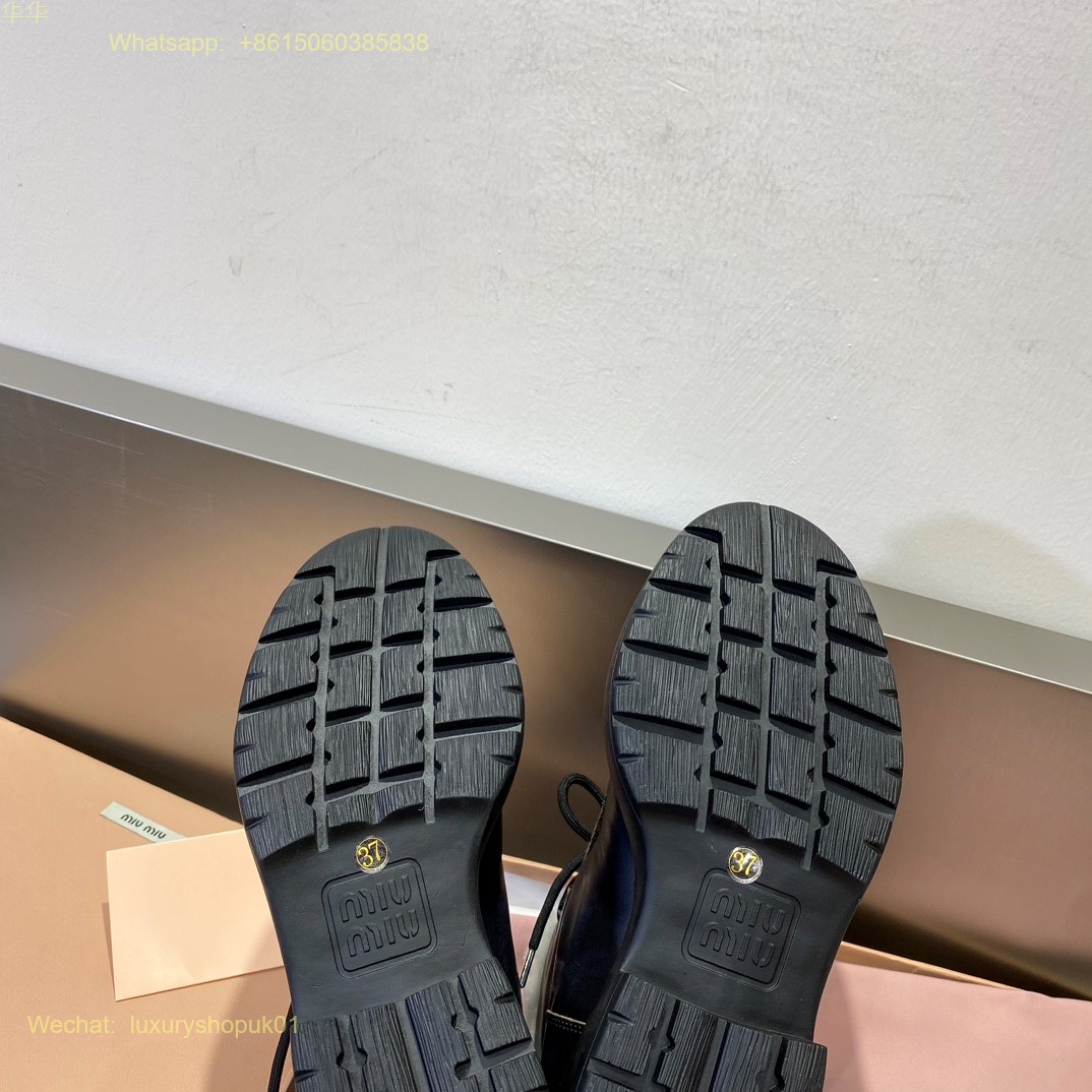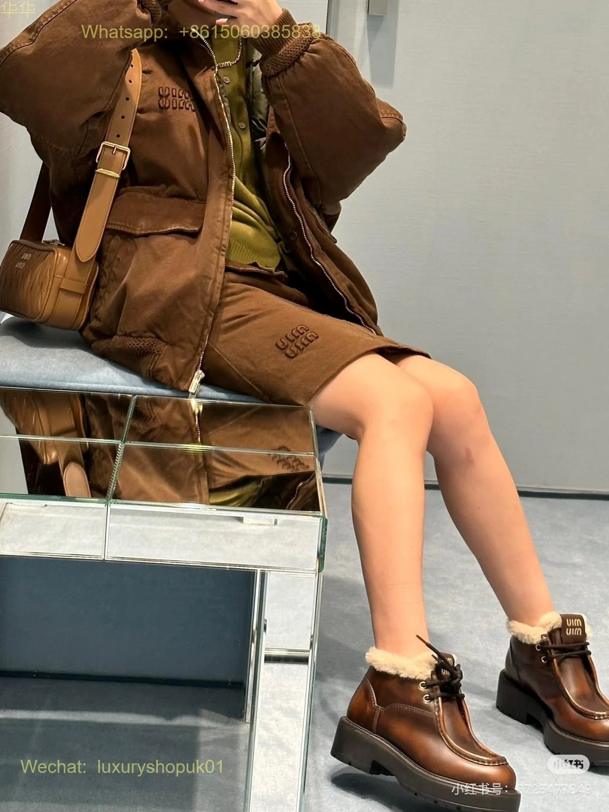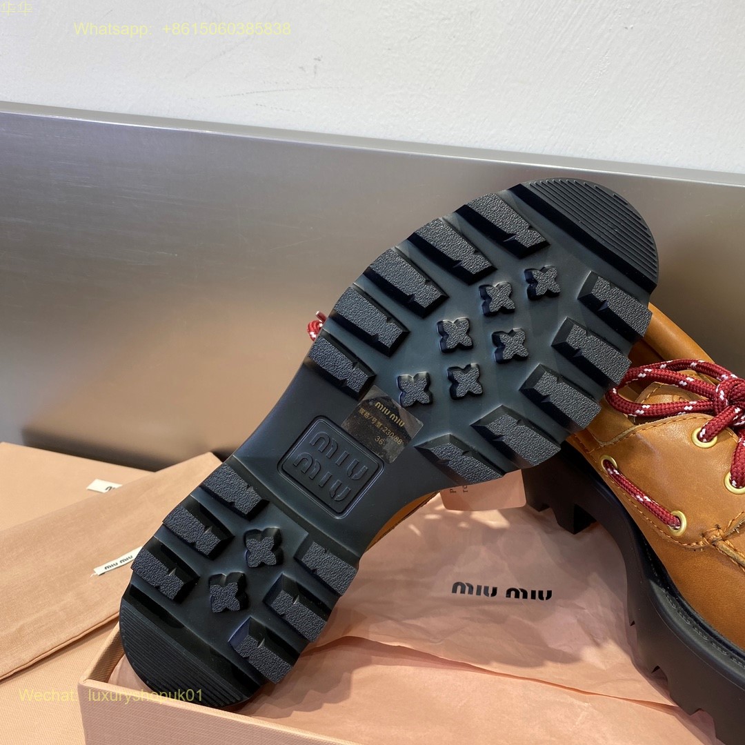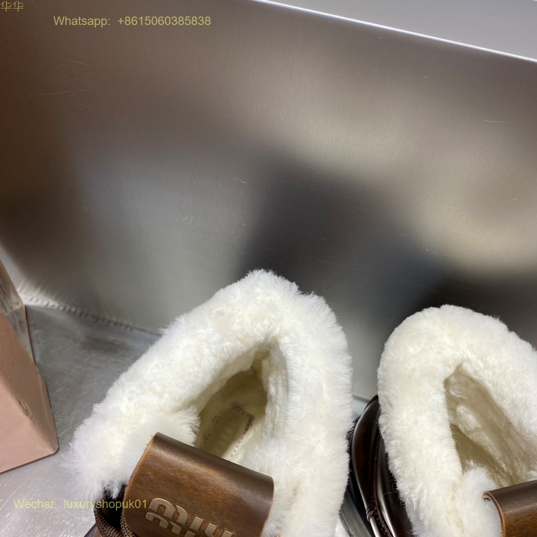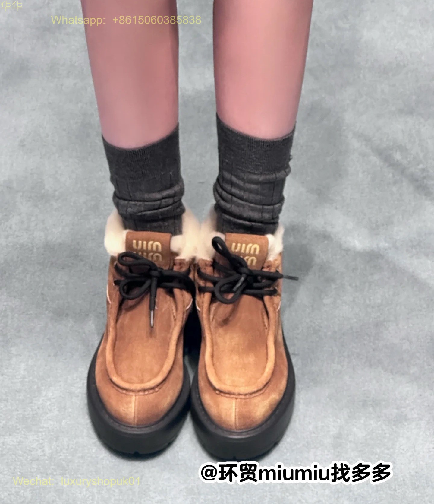Miu Miu Heeled Lace-Up Platform high top fur shearling Loafers Women Shoes