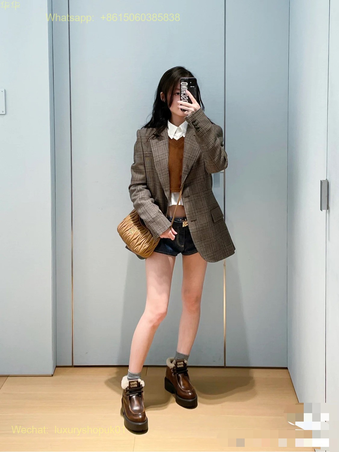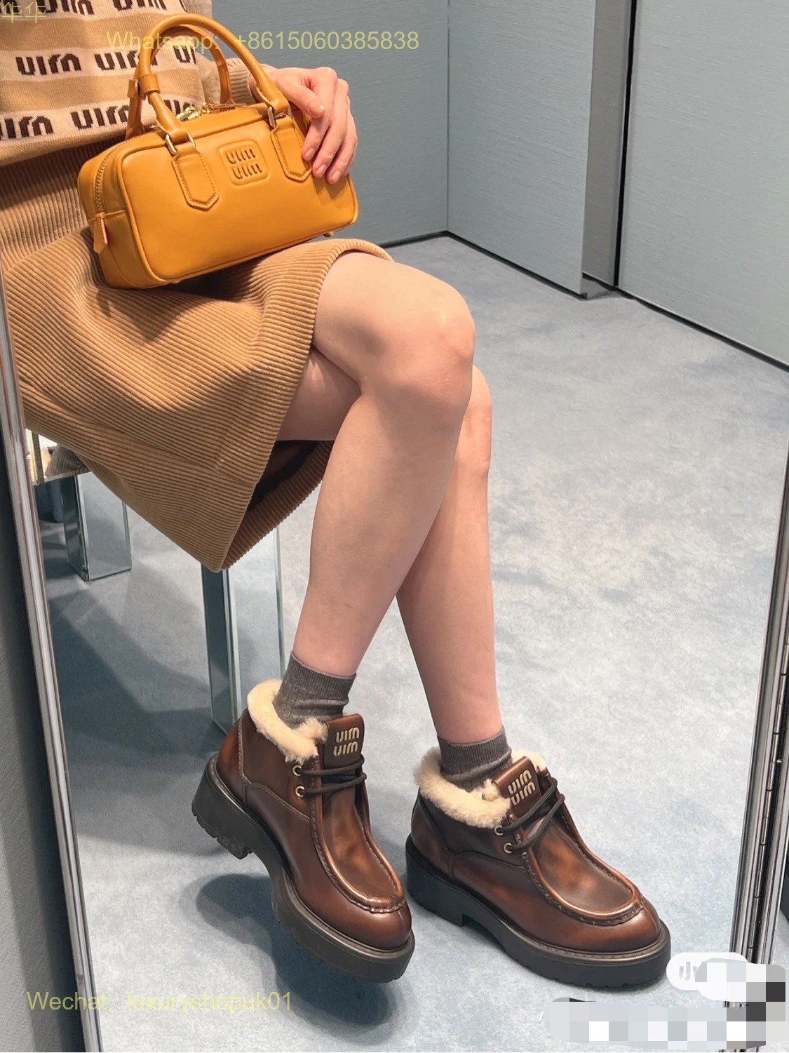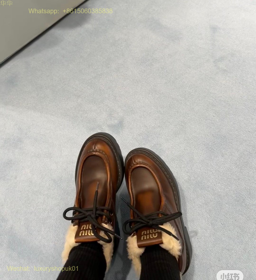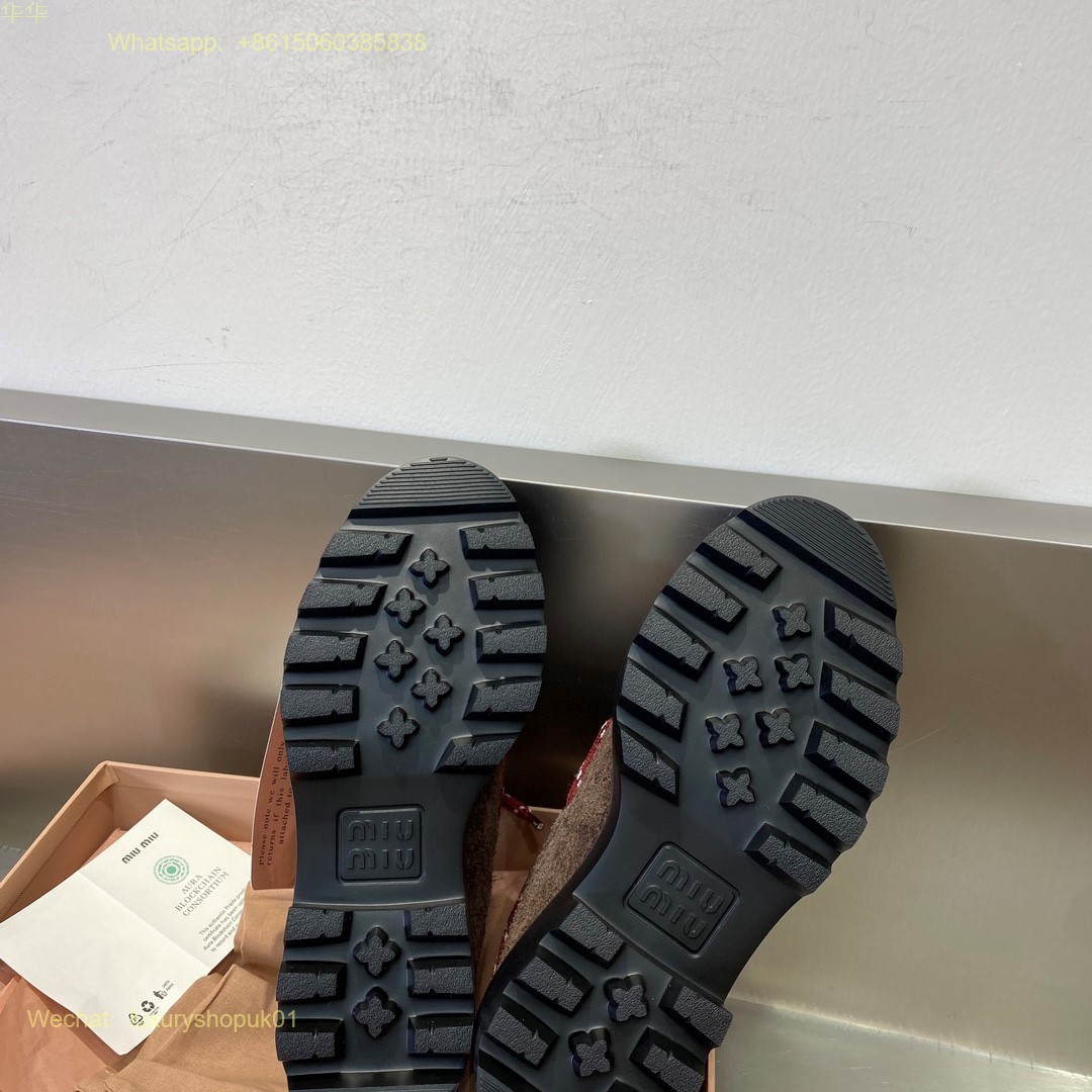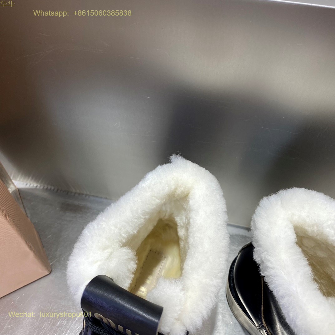 Miu Miu Heeled Lace-Up Platform high top fur shearling Loafers Women Shoes