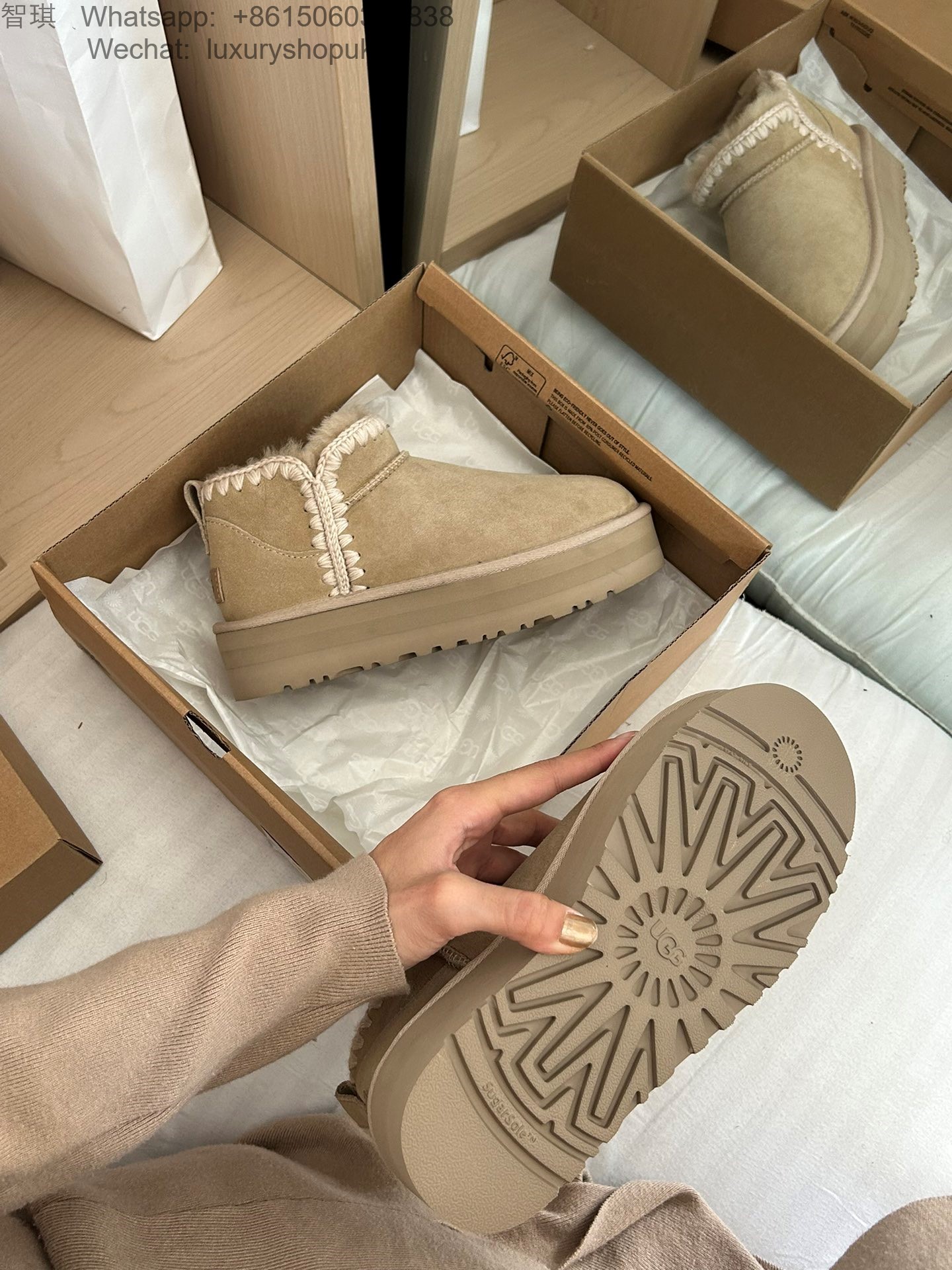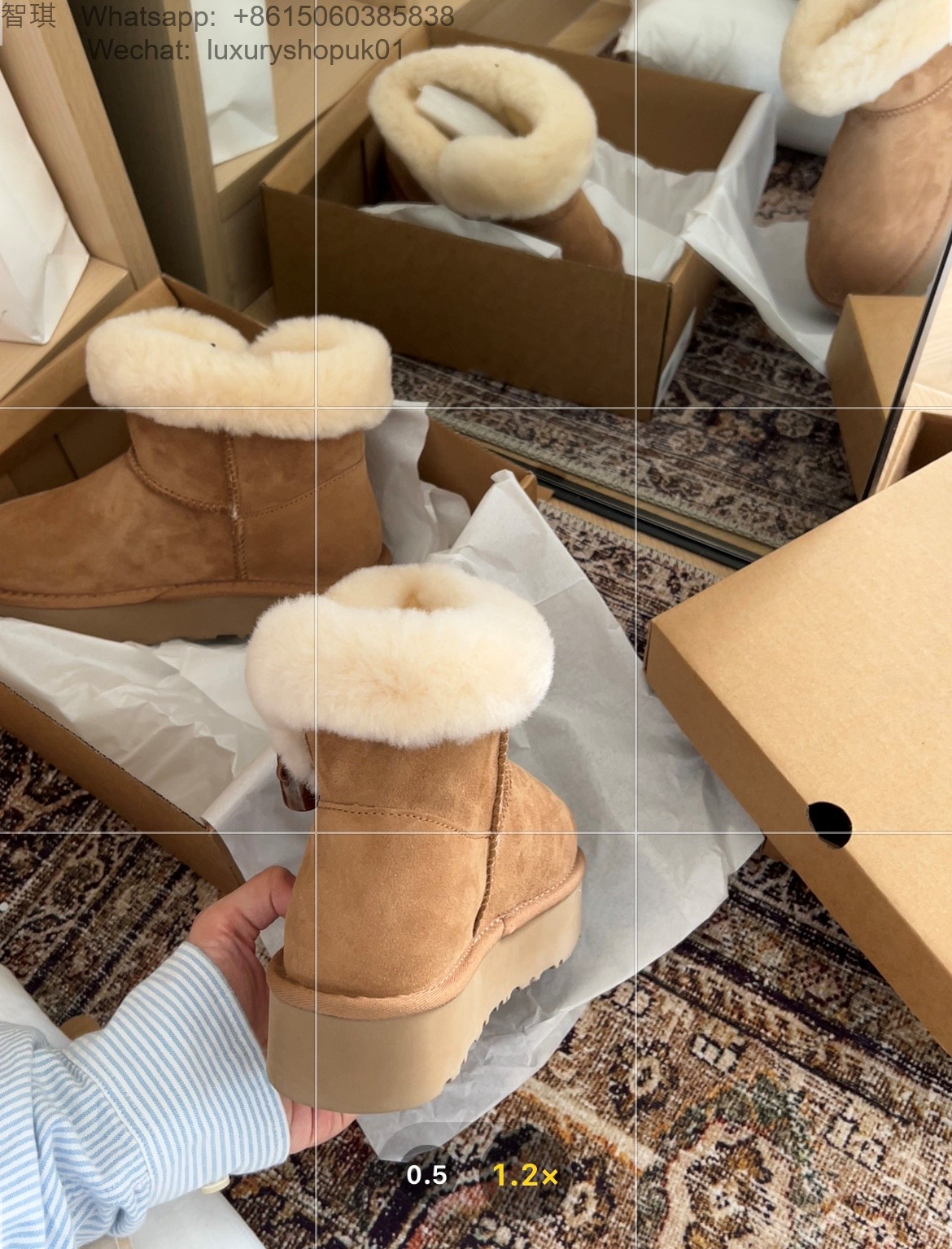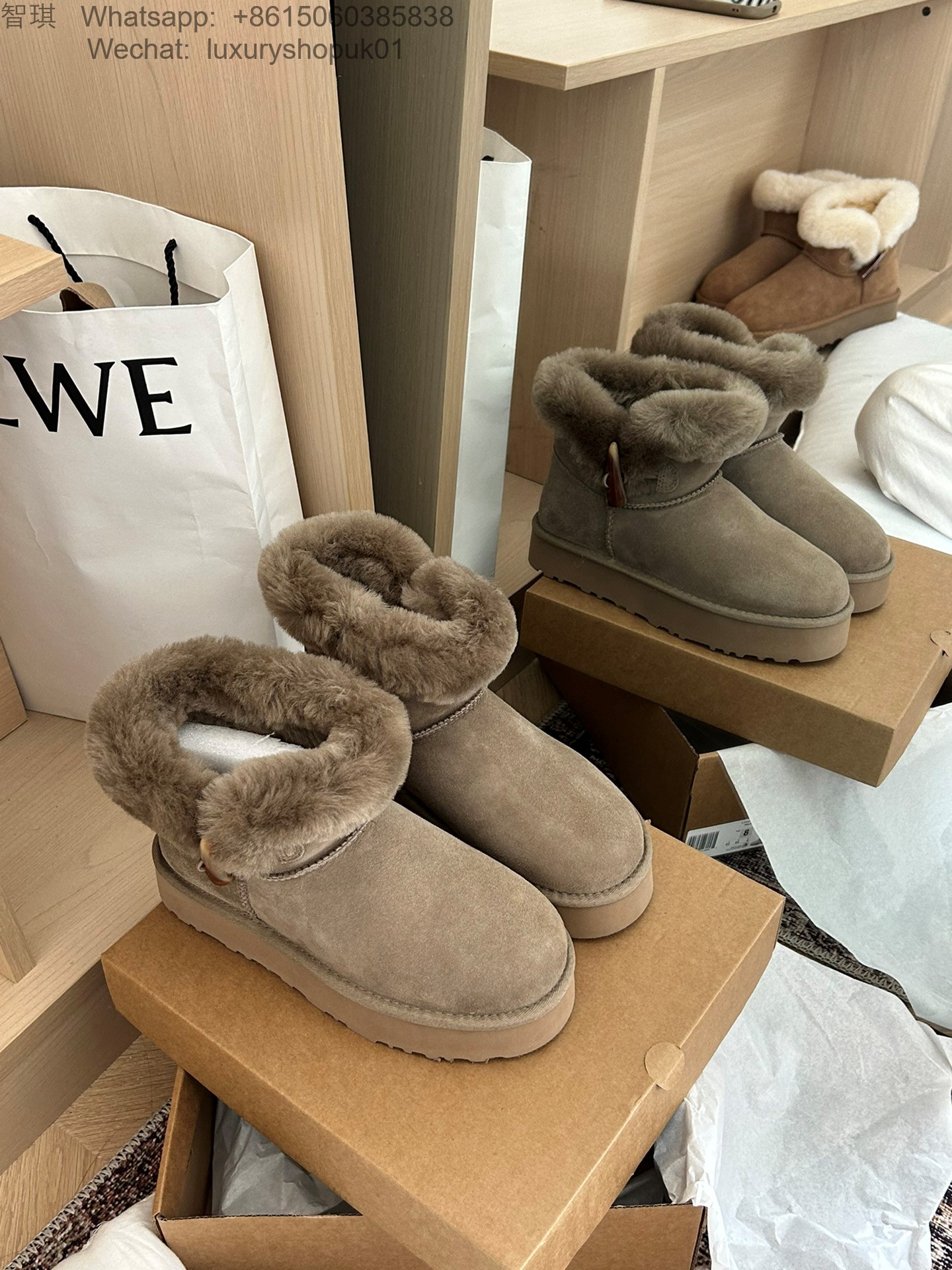 UGG Fur Platform Mini Boots Women Snow Shoes