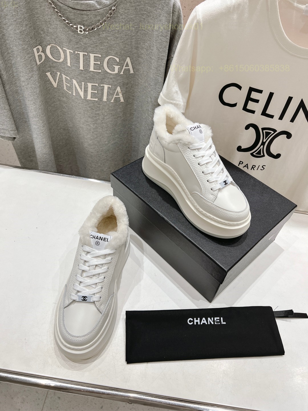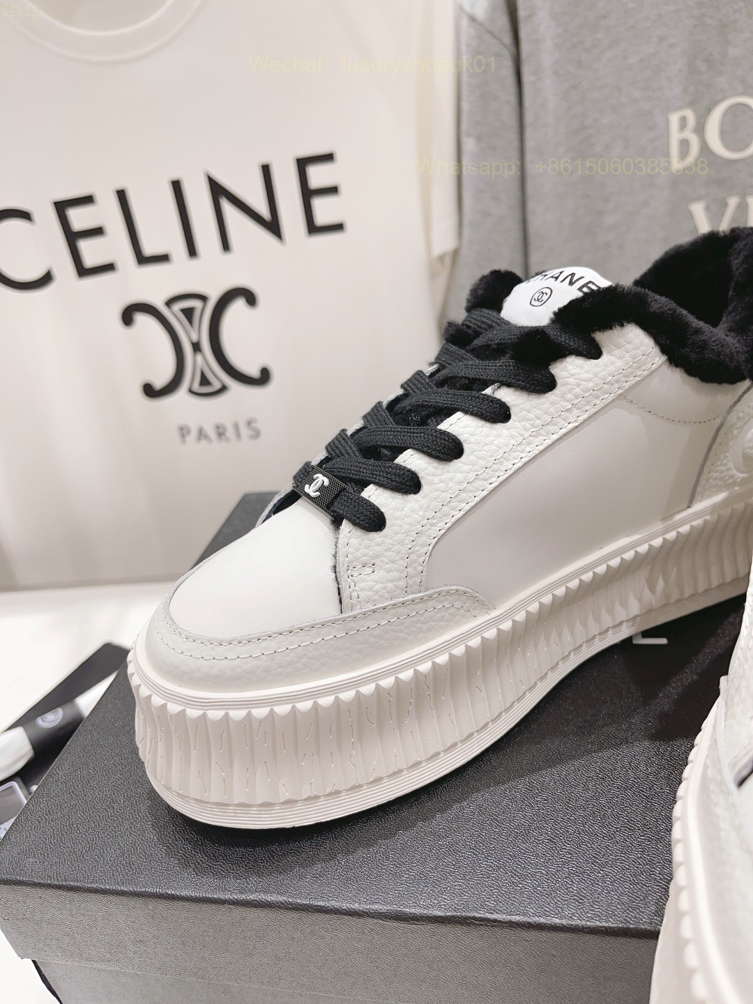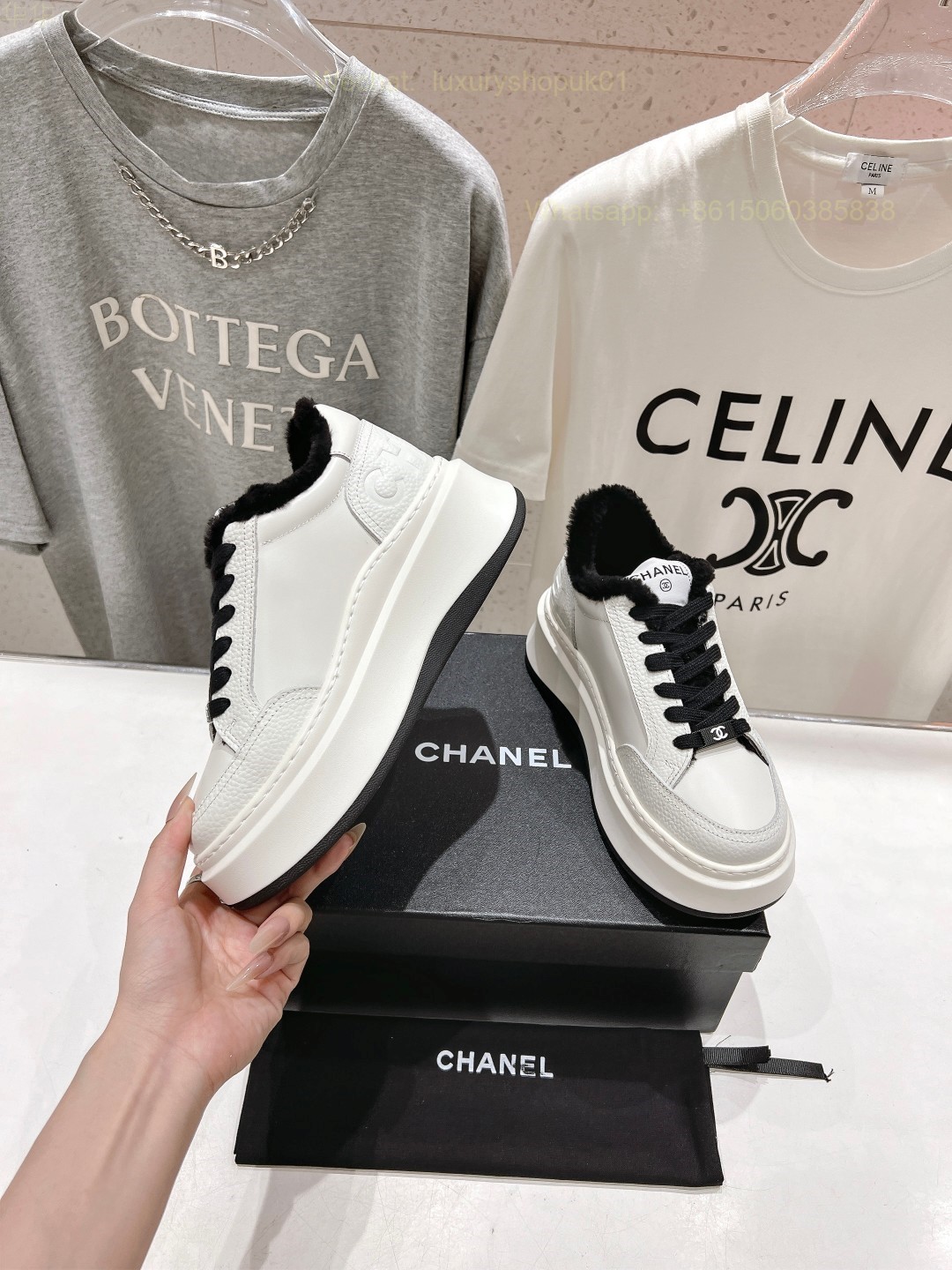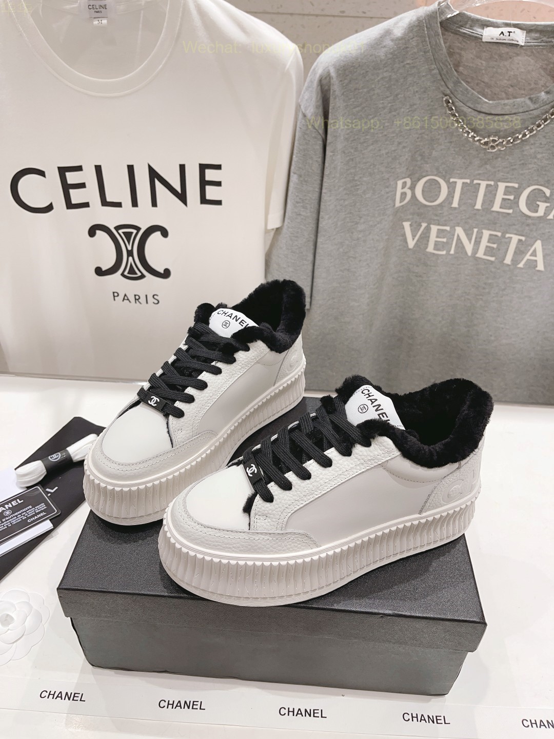 Chanel Fur Shearling Sneaker CC Logo Women Platform Shoes