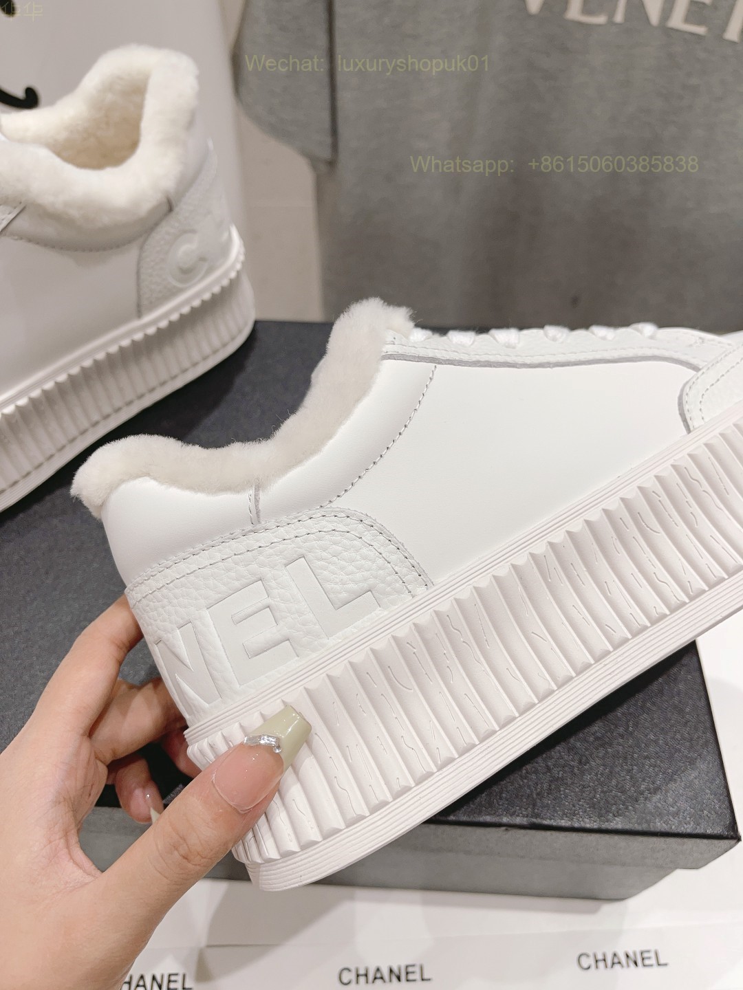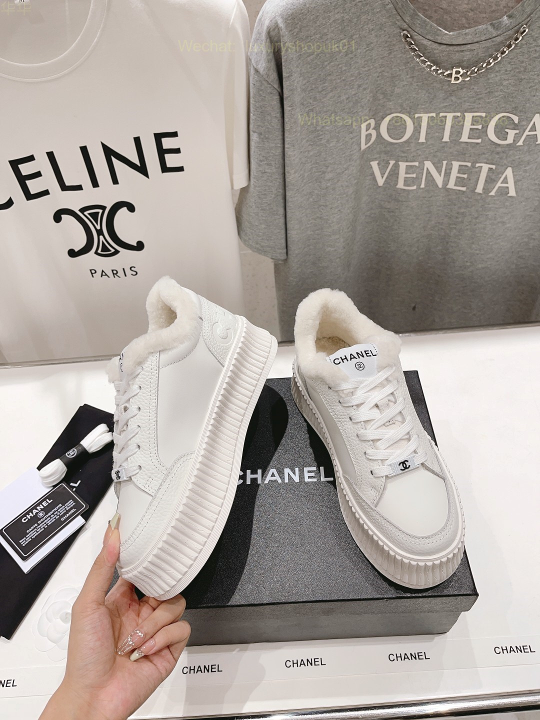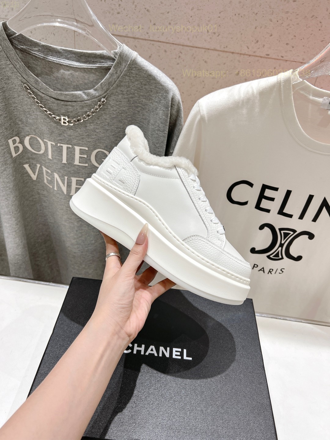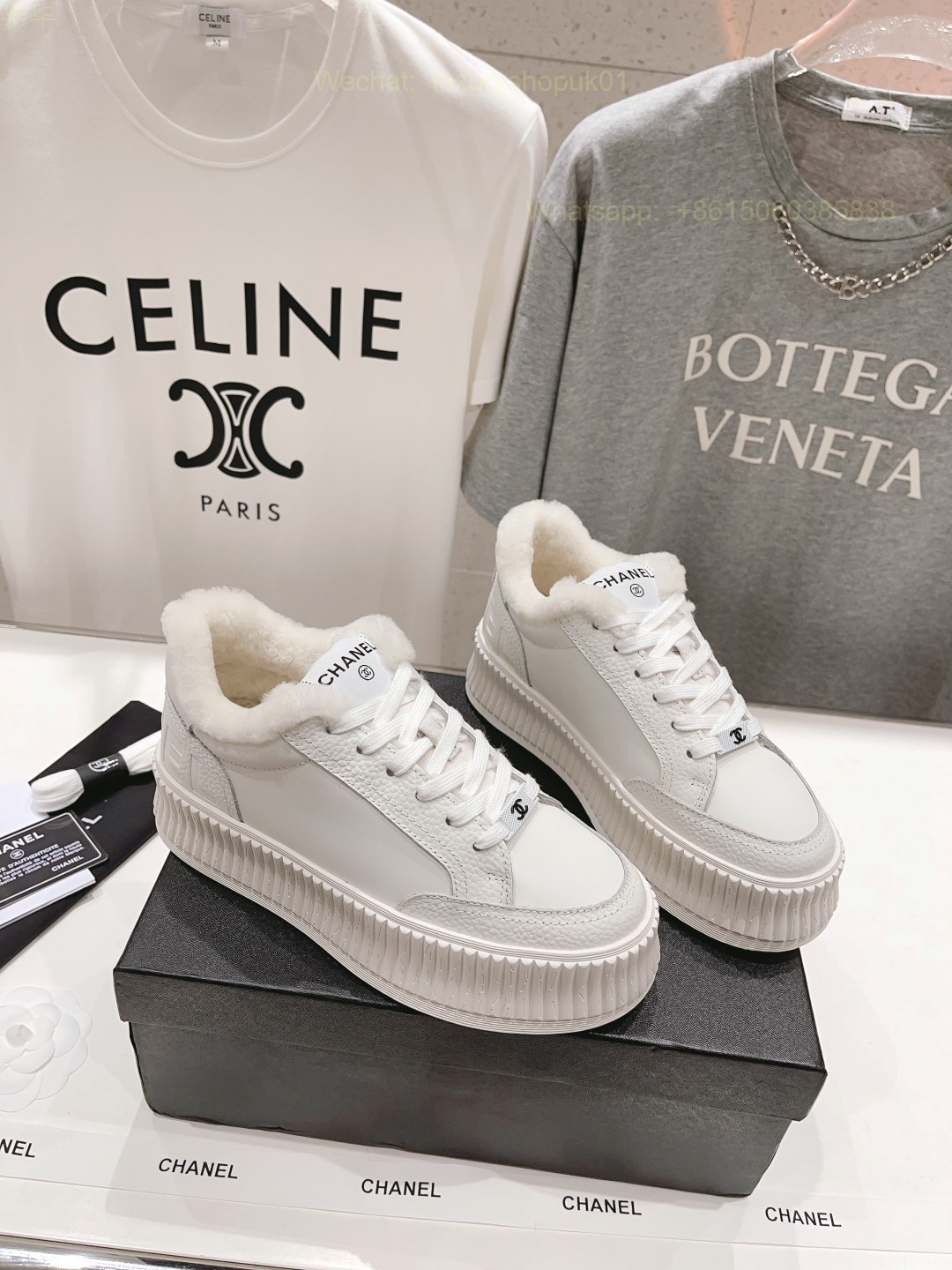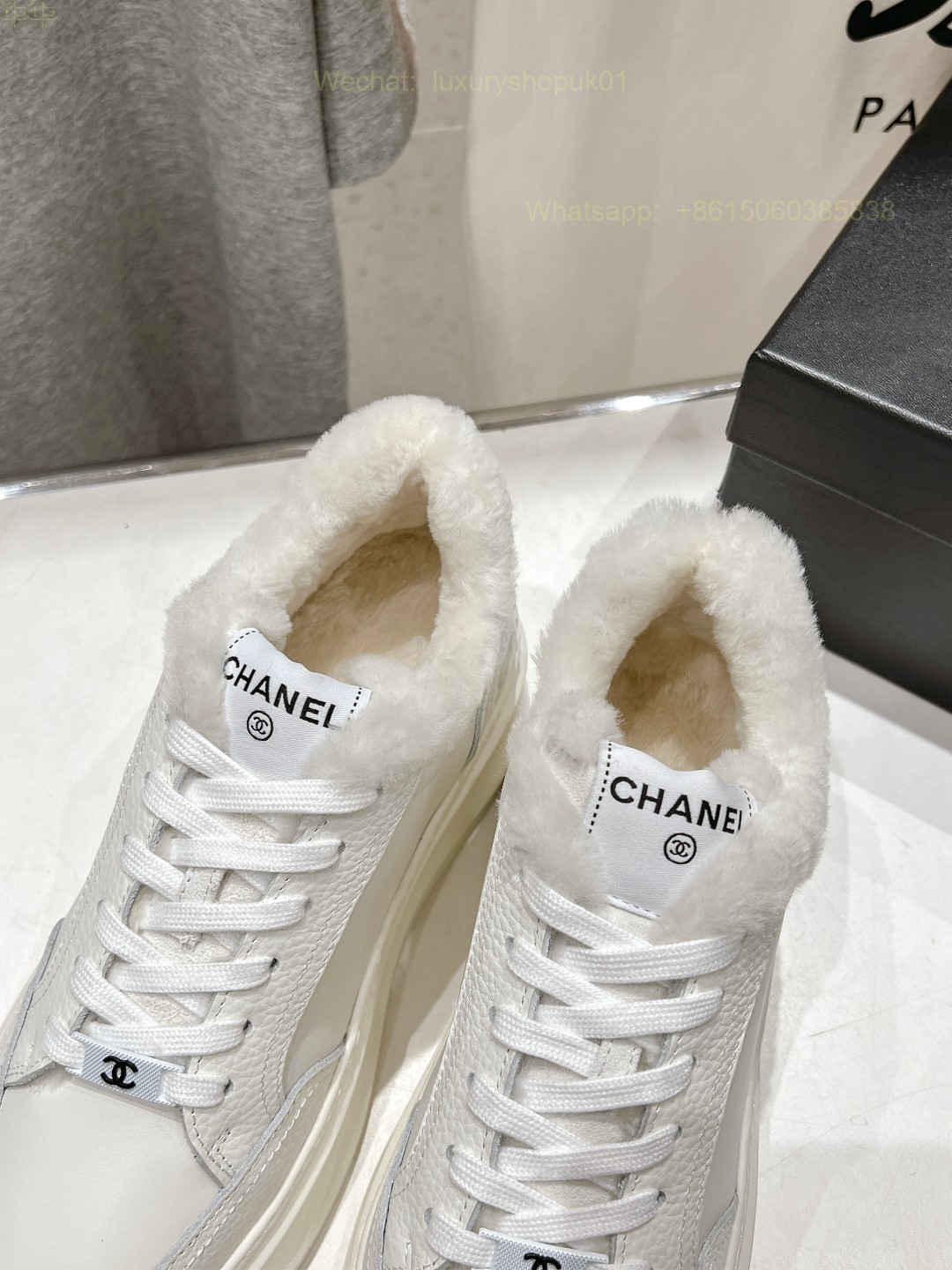 Chanel Fur Shearling Sneaker CC Logo Women Platform Shoes