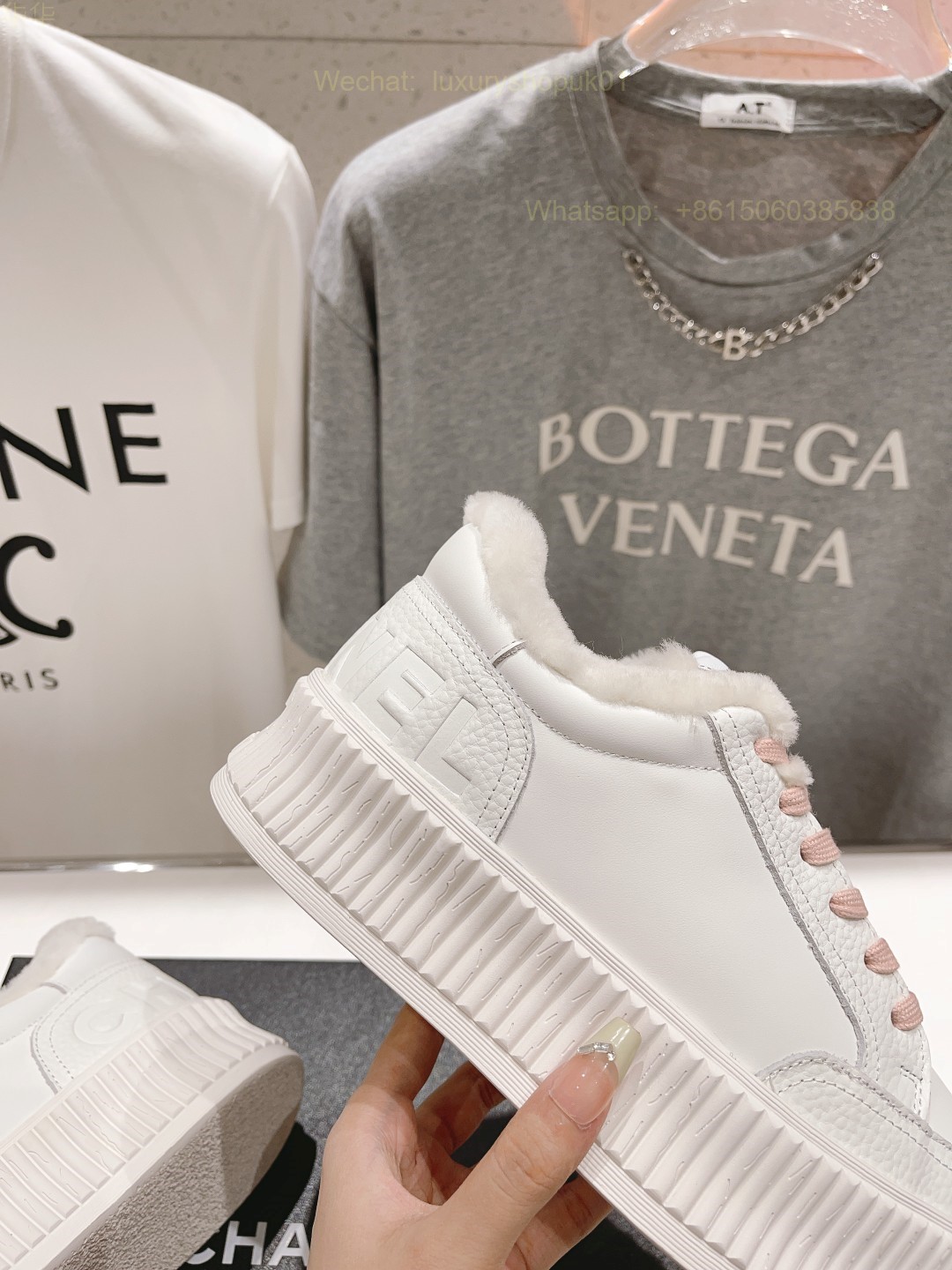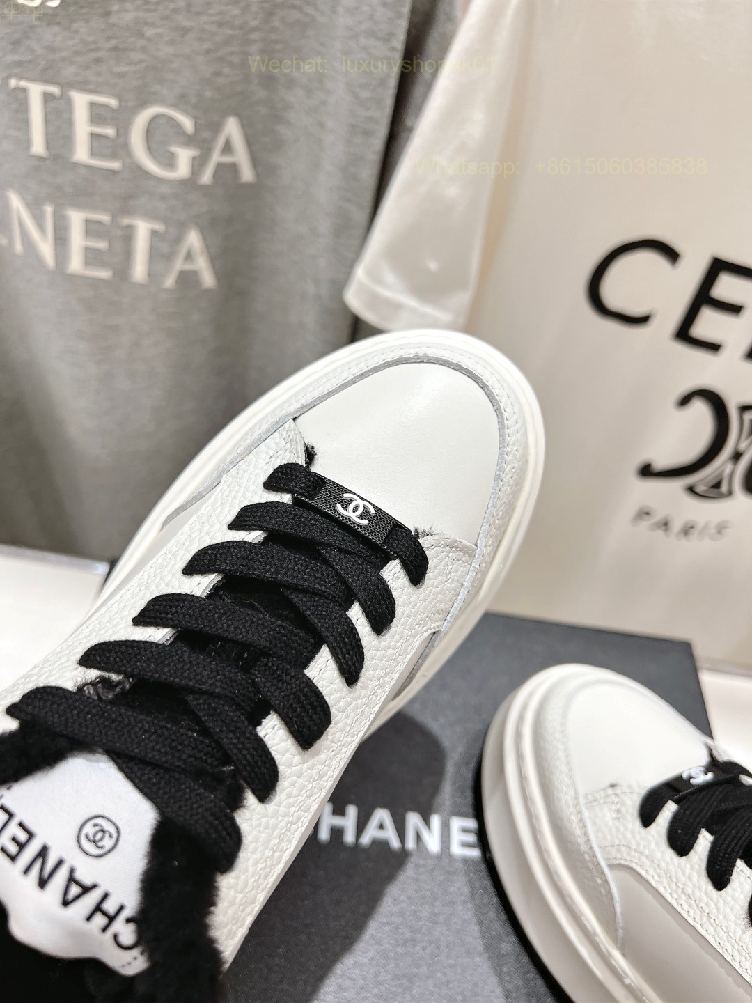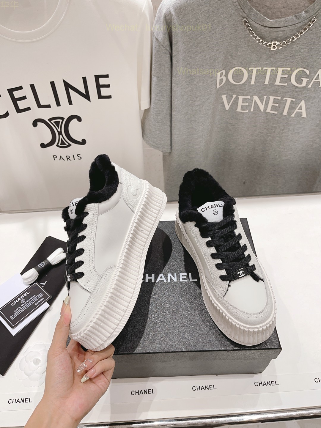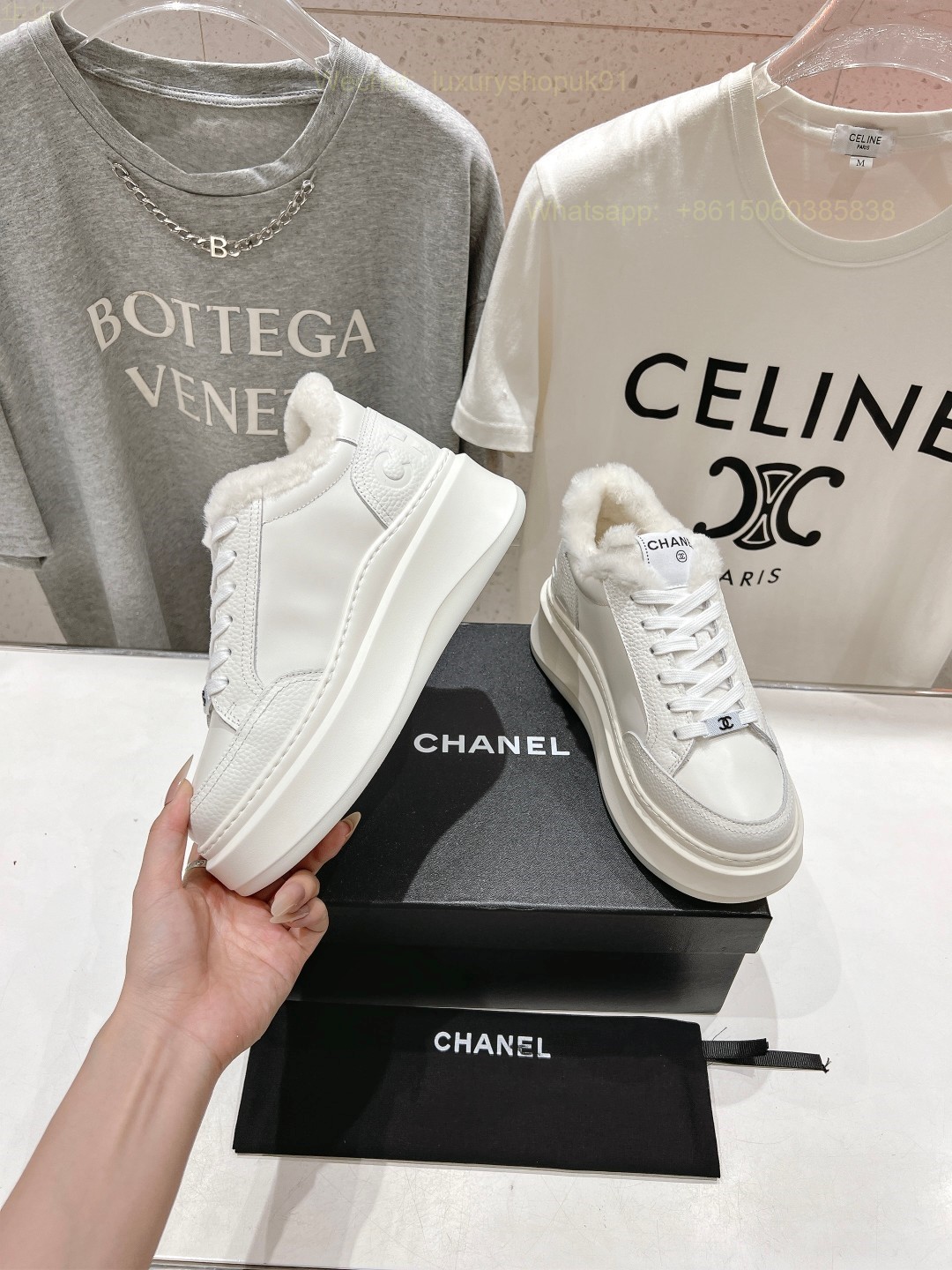 Chanel Fur Shearling Sneaker CC Logo Women Platform Shoes