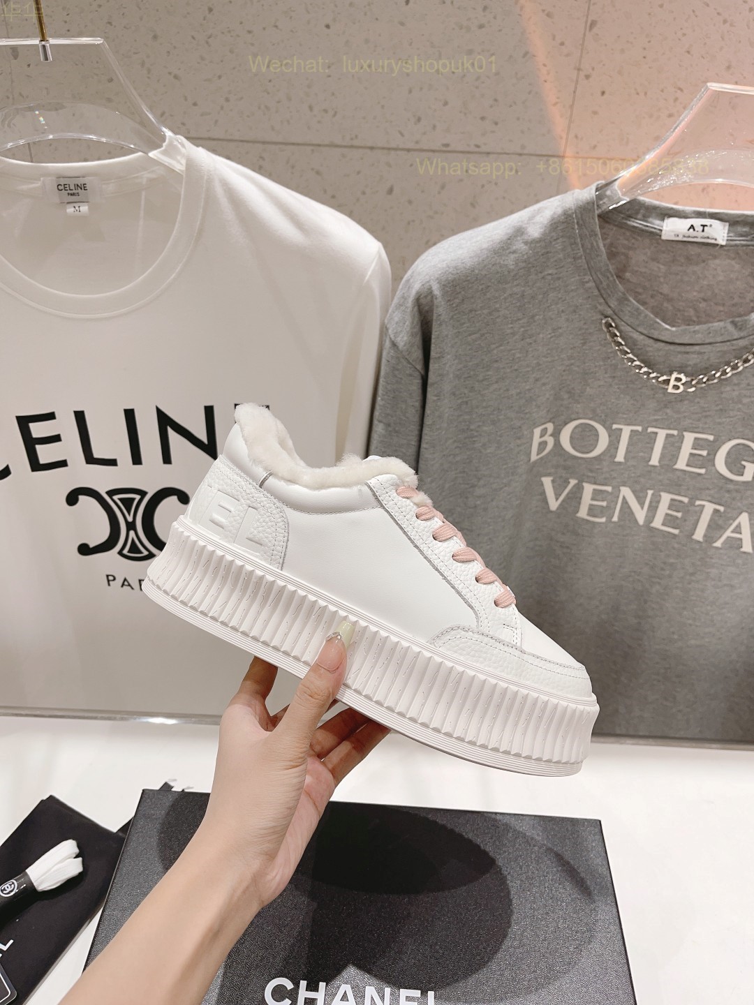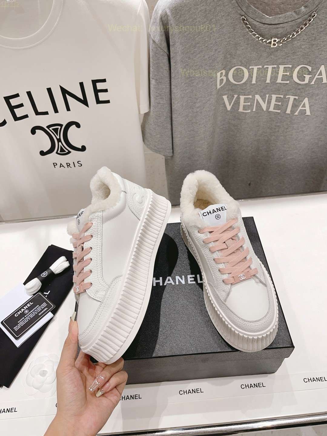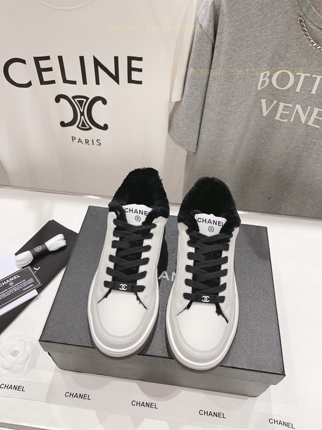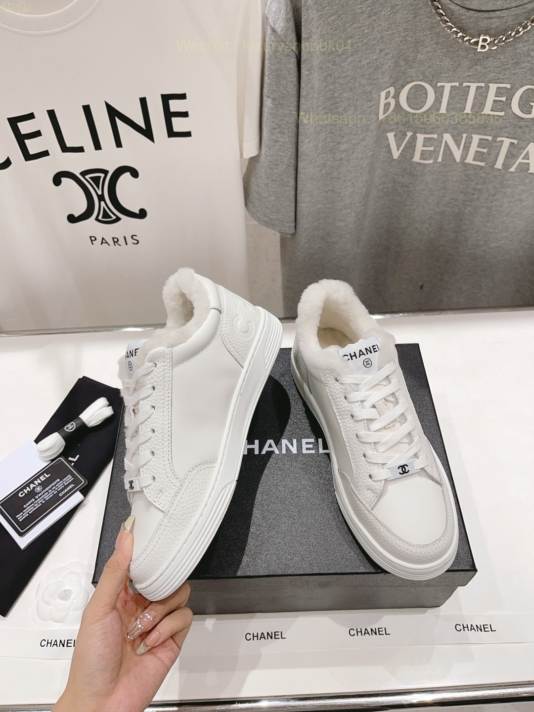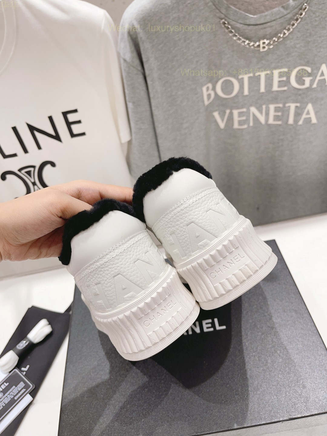 Chanel Fur Shearling Sneaker CC Logo Women Platform Shoes