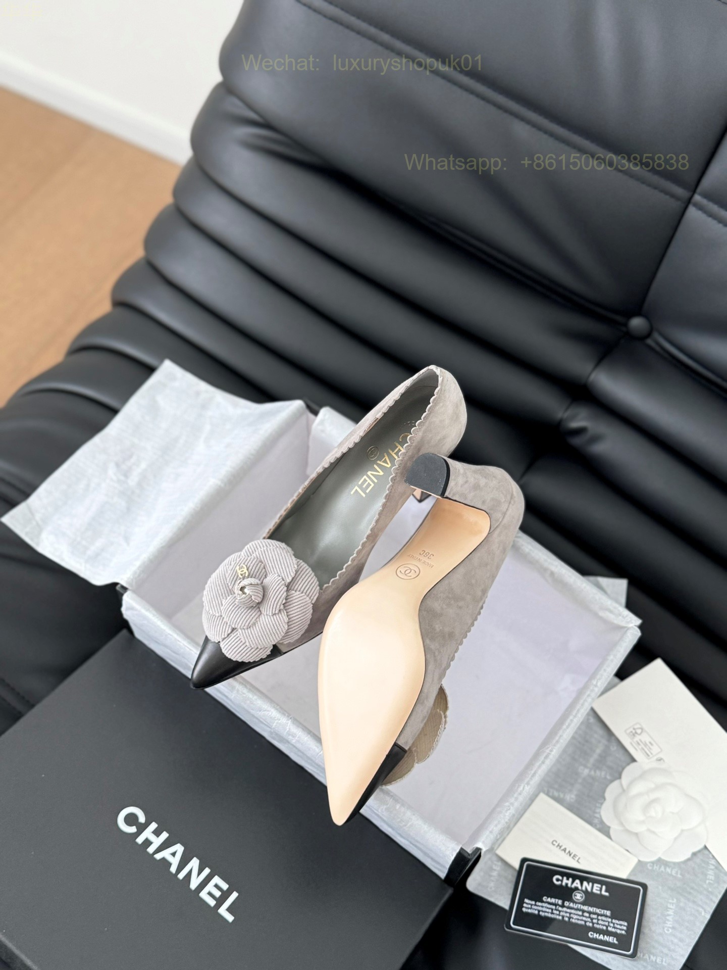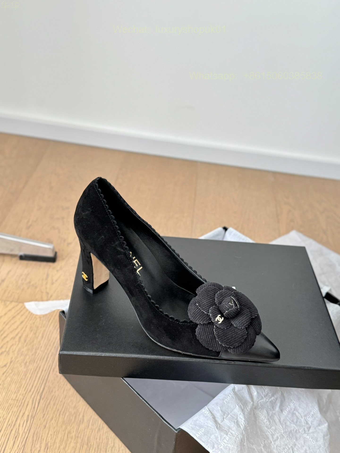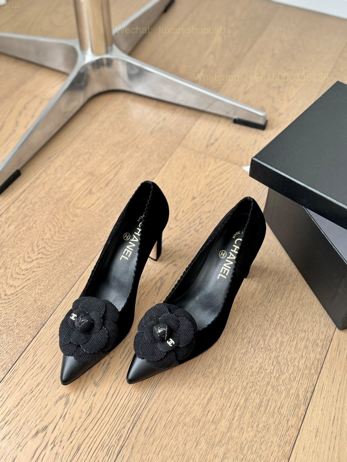 Chanel Leather Camellia Flower High heels pumps Pointed toe Women Shoes