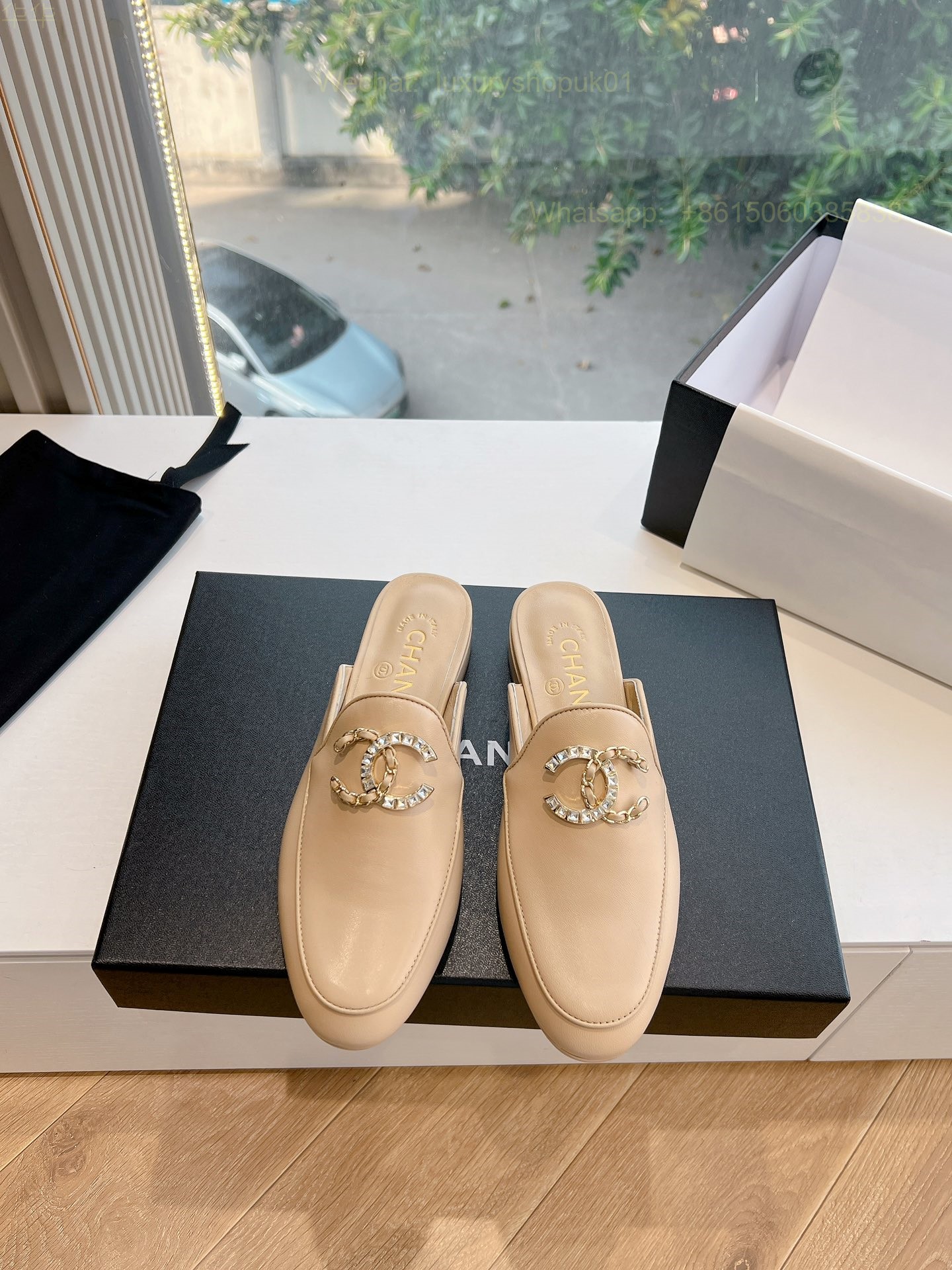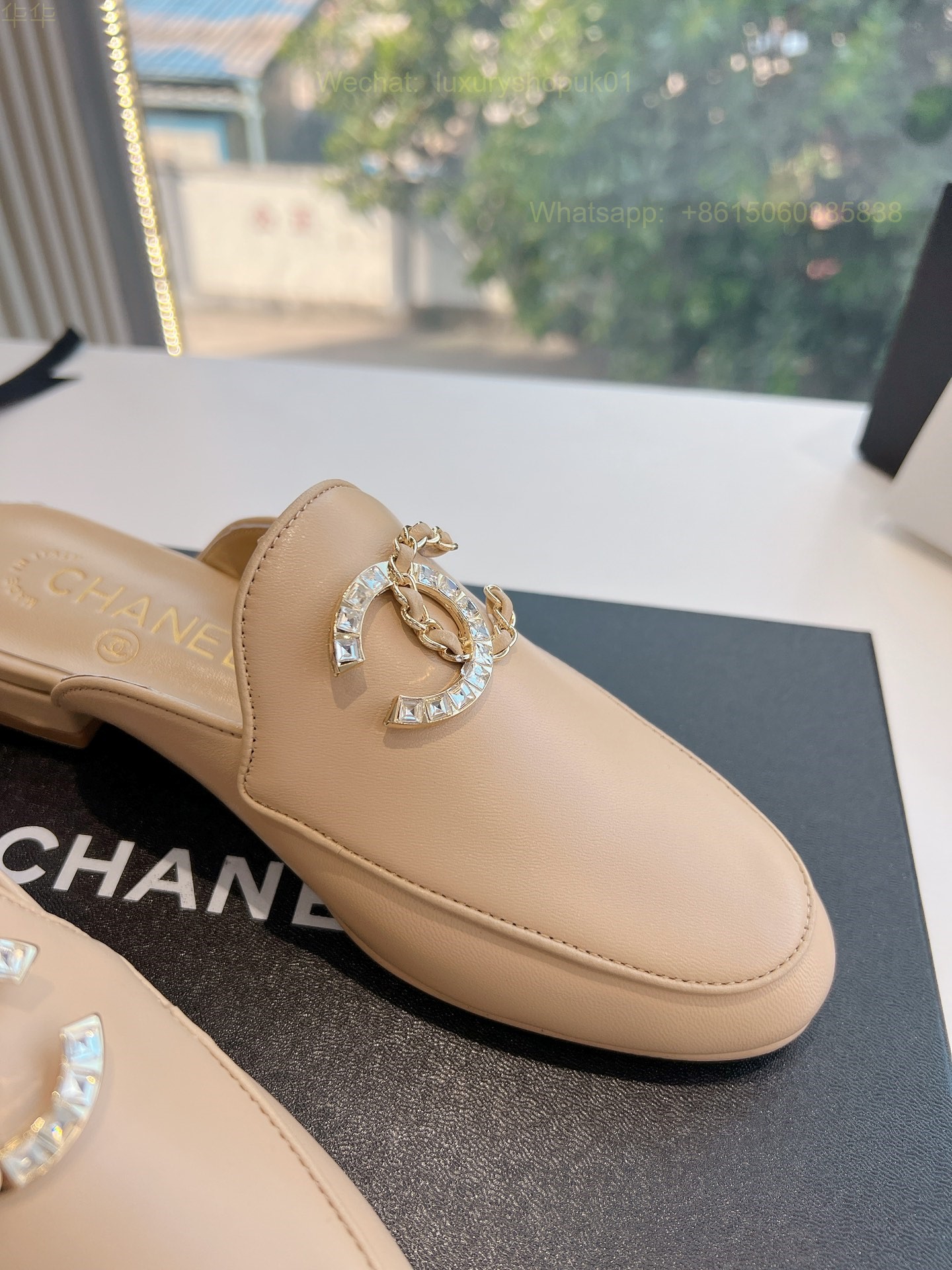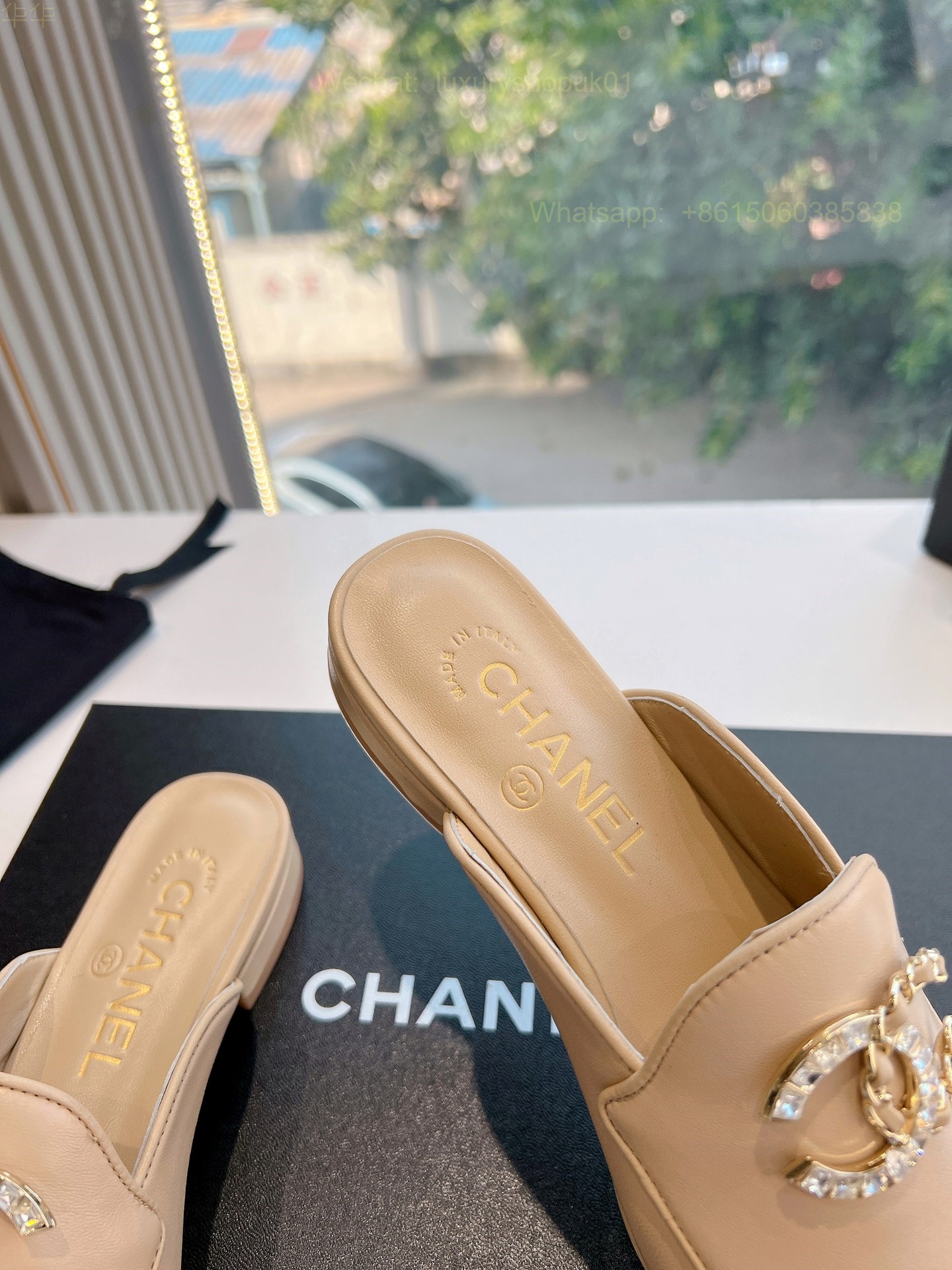 Chanel CC Logo Leather Slip On Slippers Slide Sandals