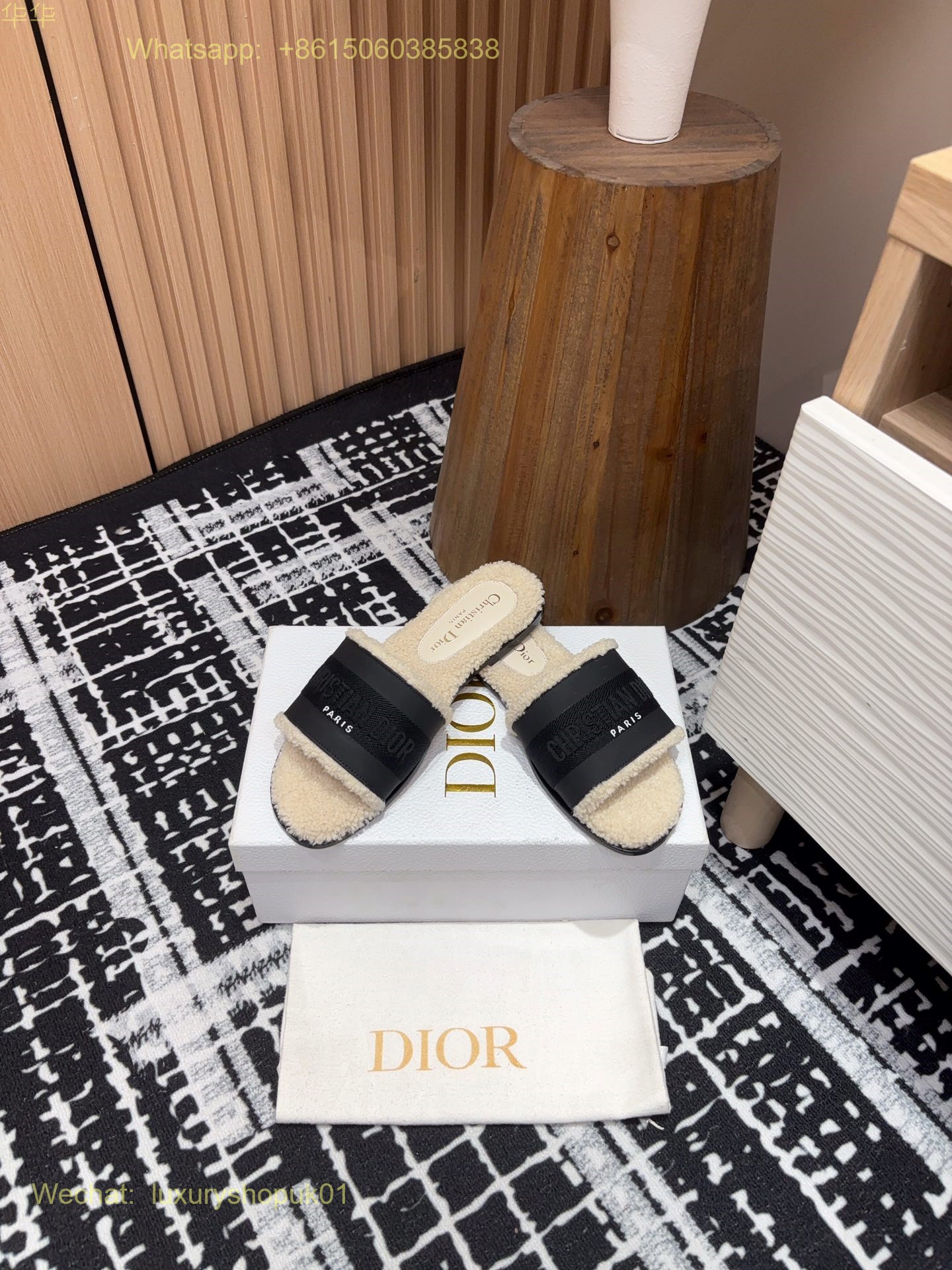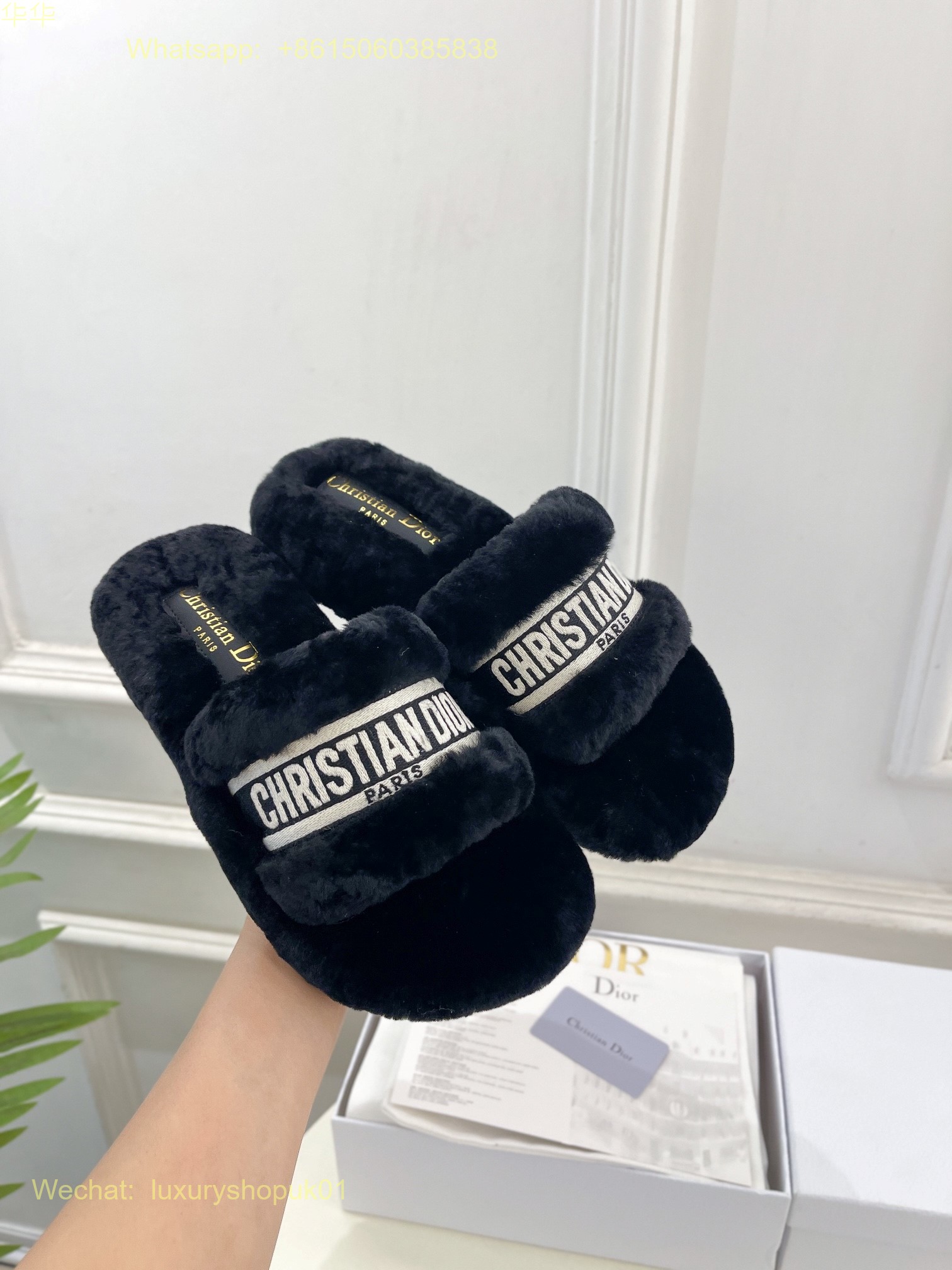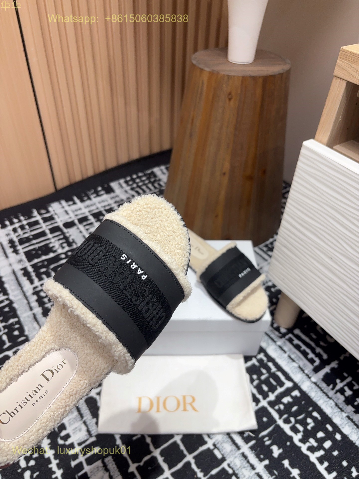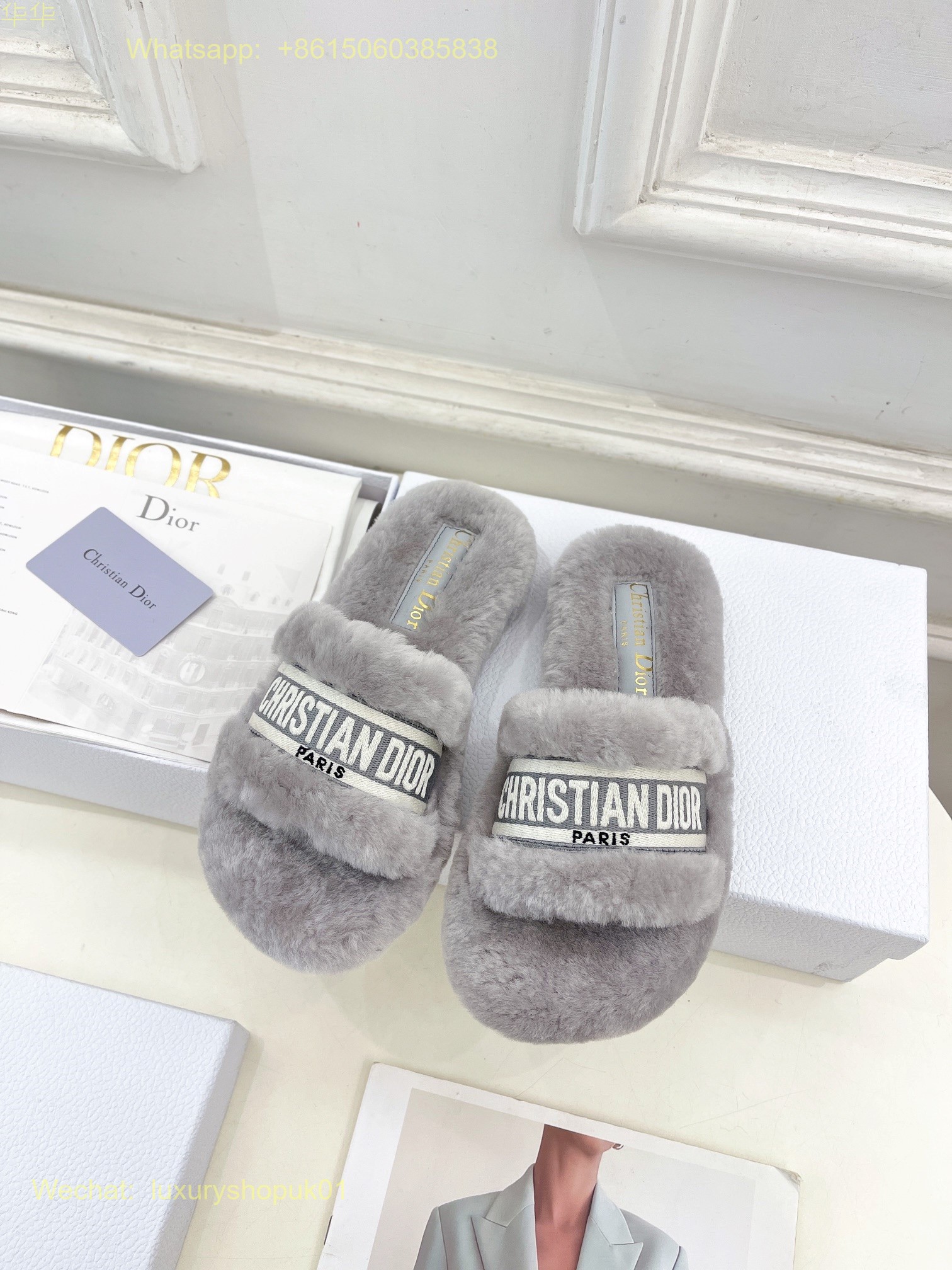 Christian Dior Wool Fur Shearling Slides Women Shoes
