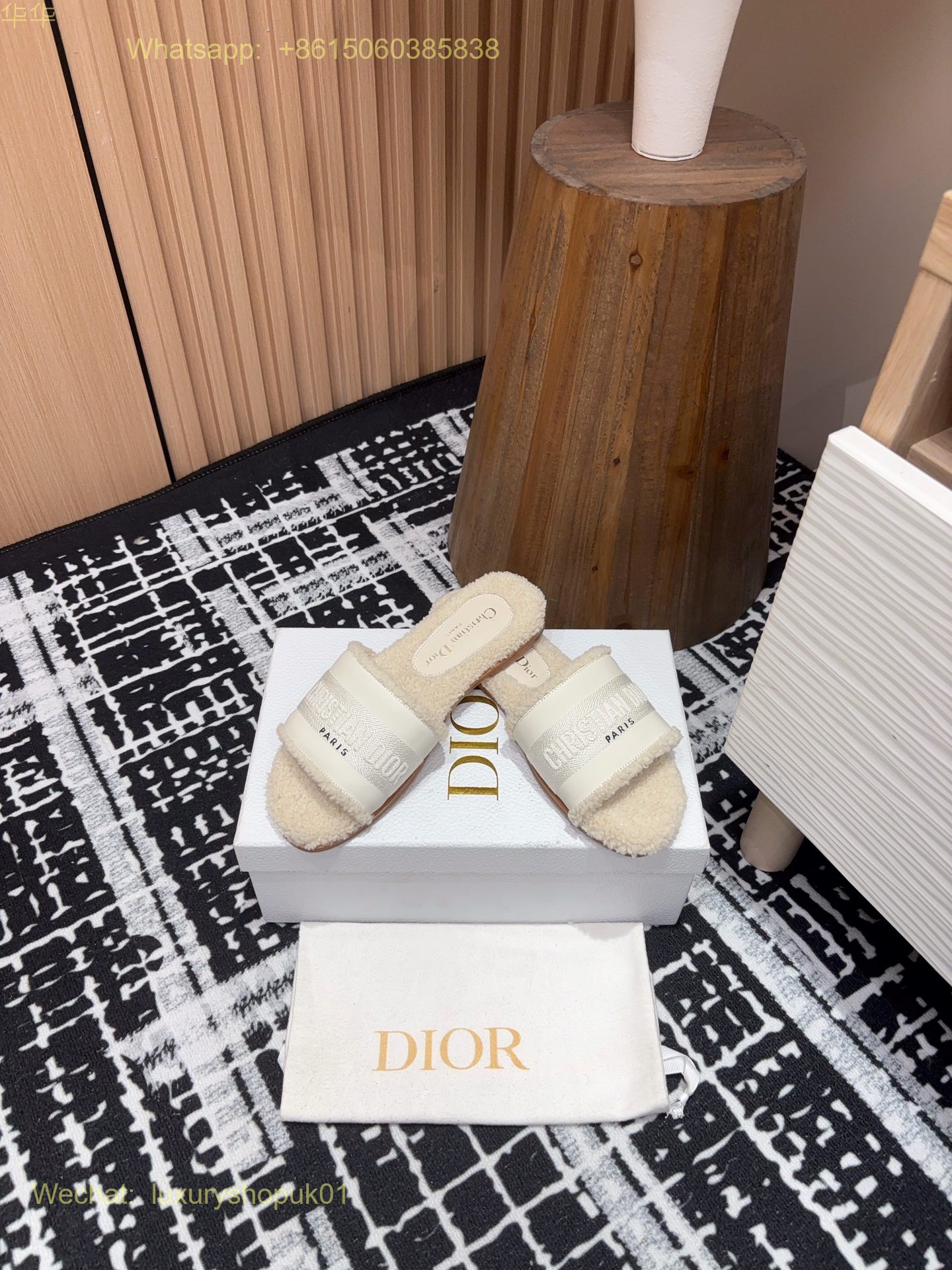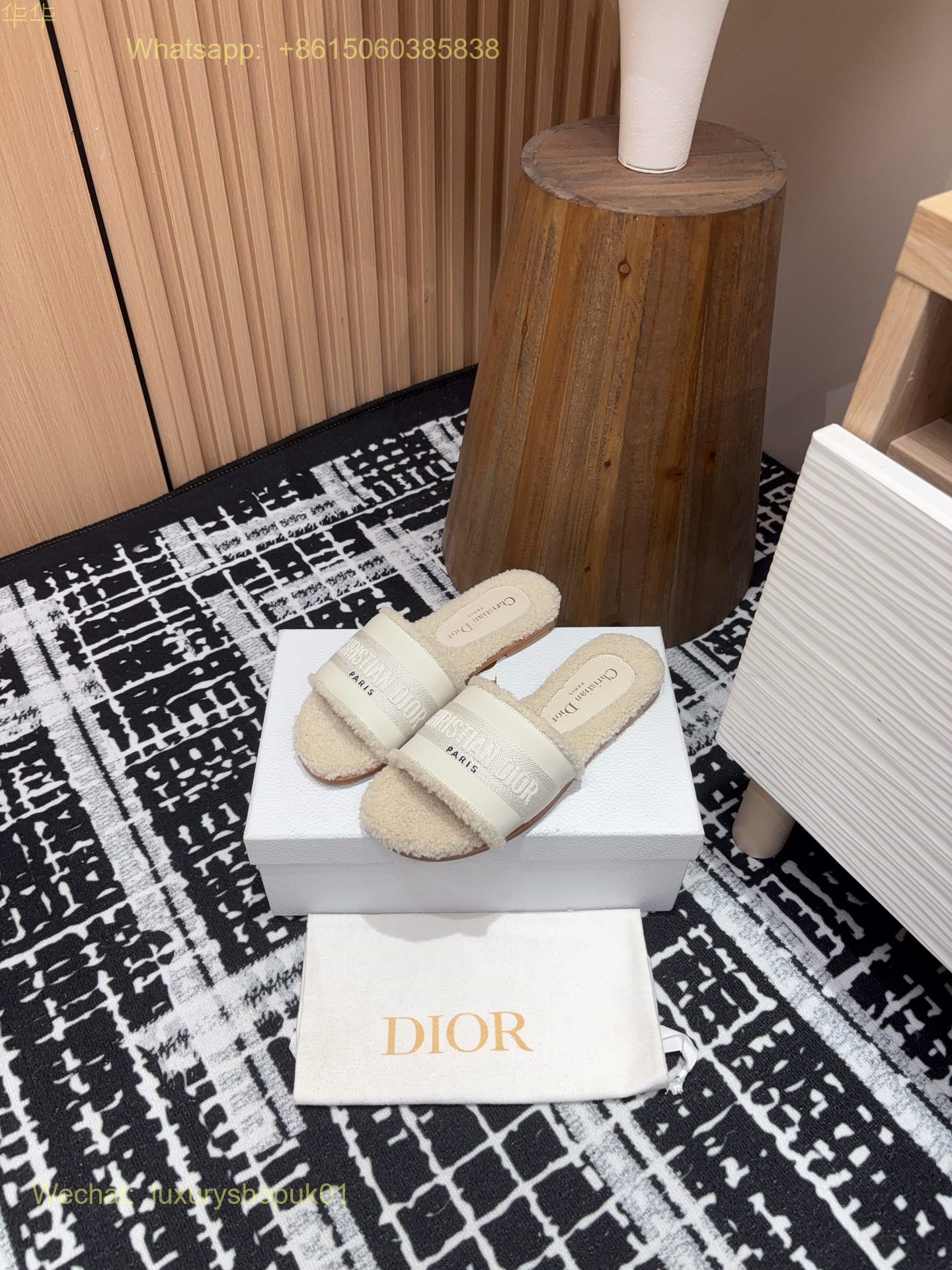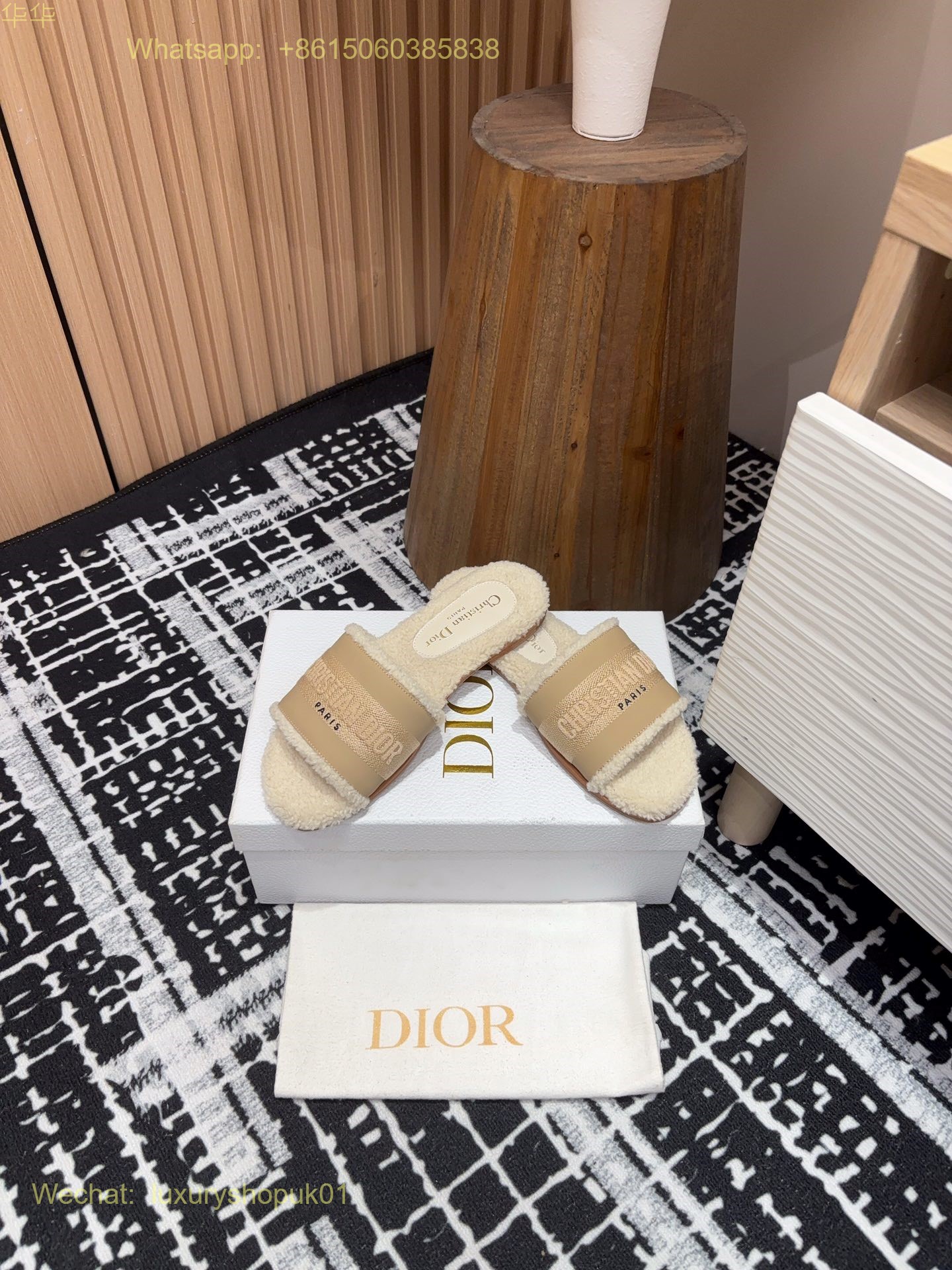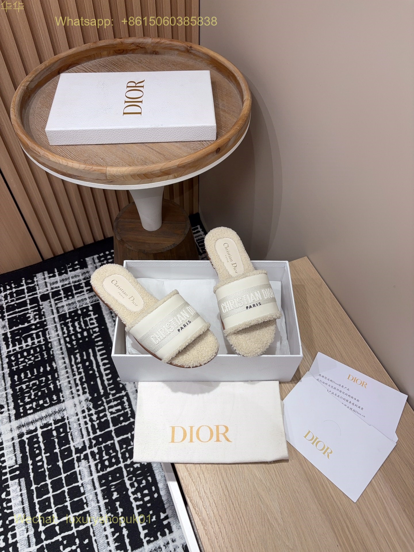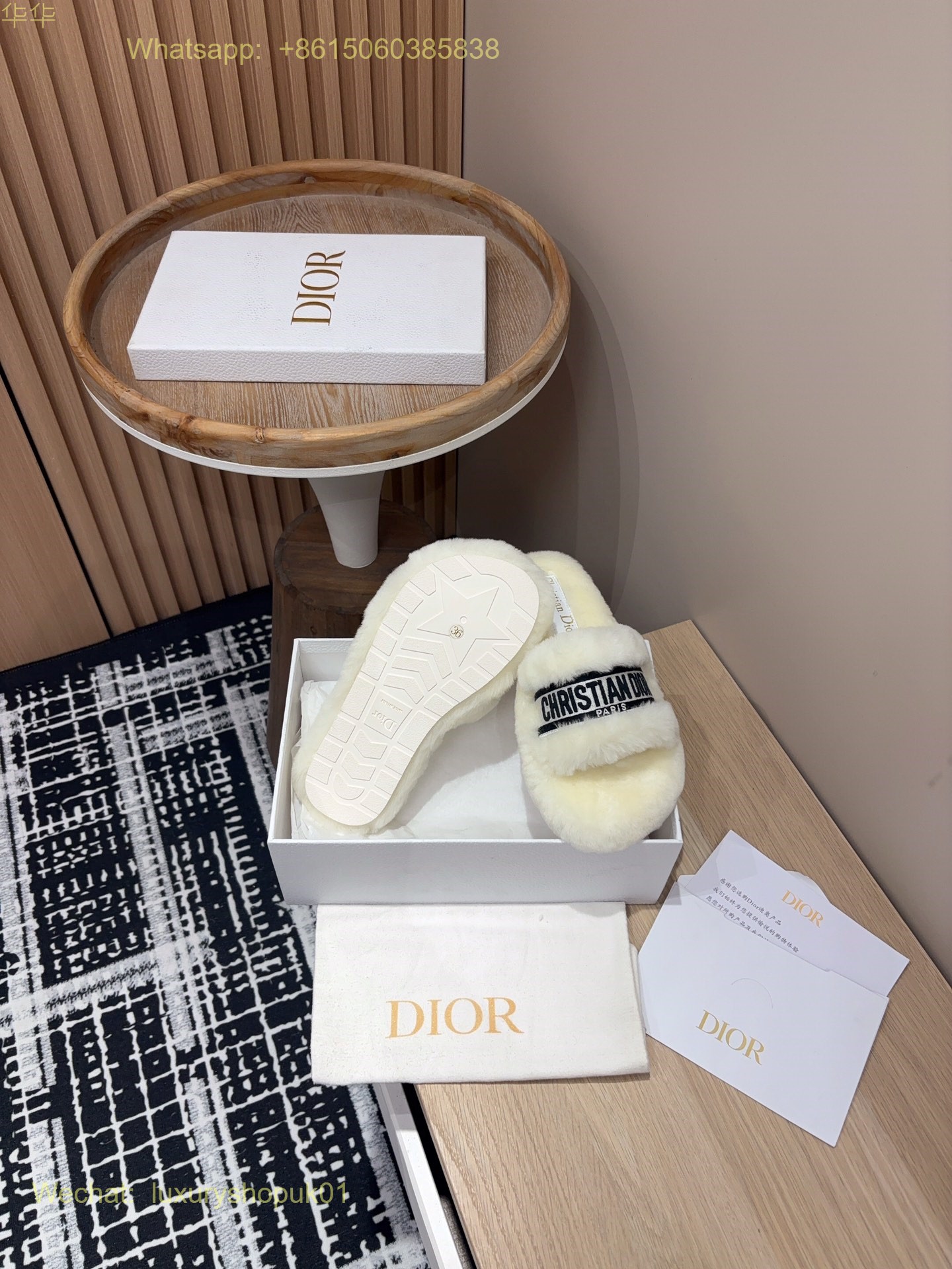 Christian Dior Wool Fur Shearling Slides Women Shoes