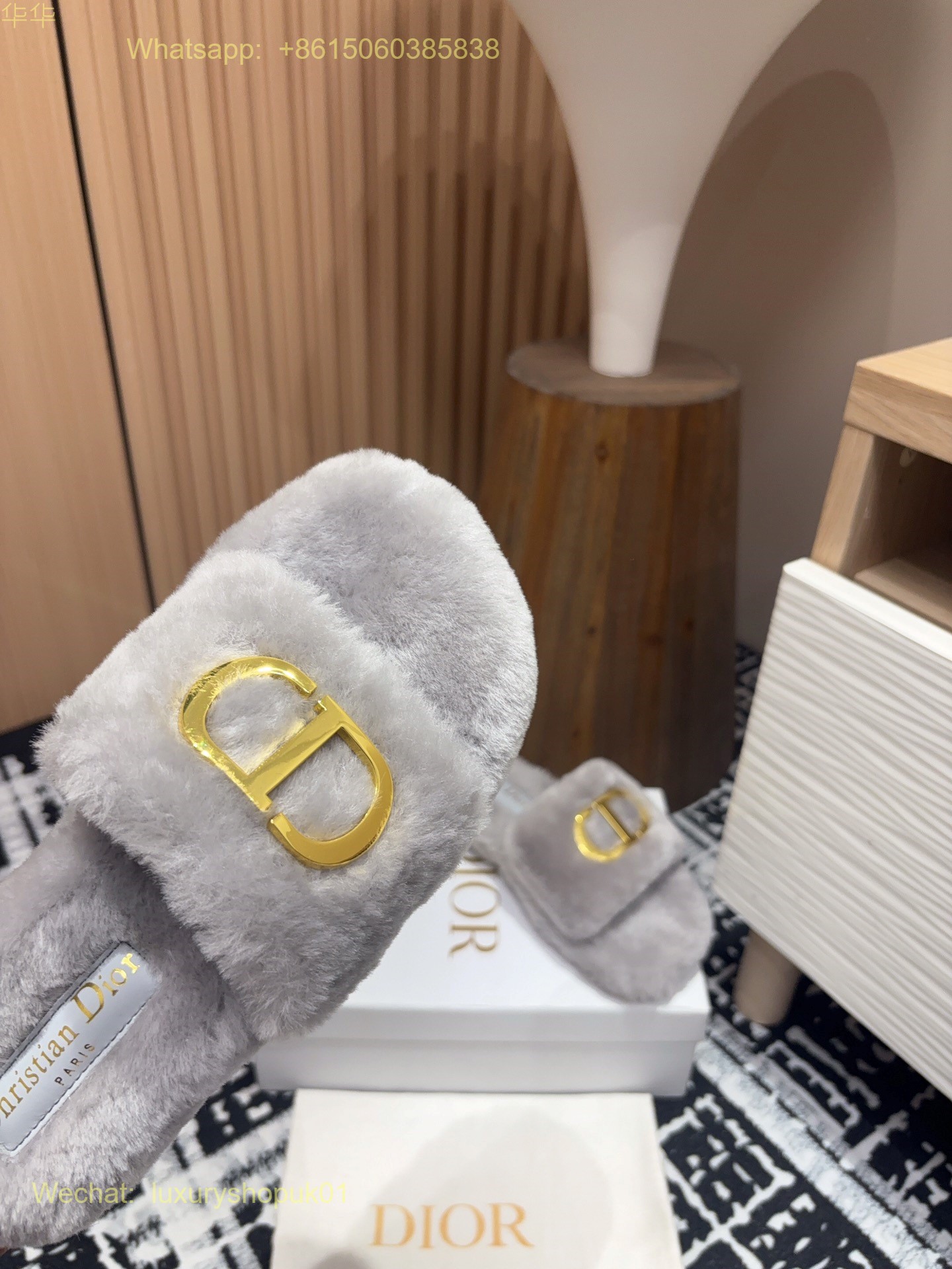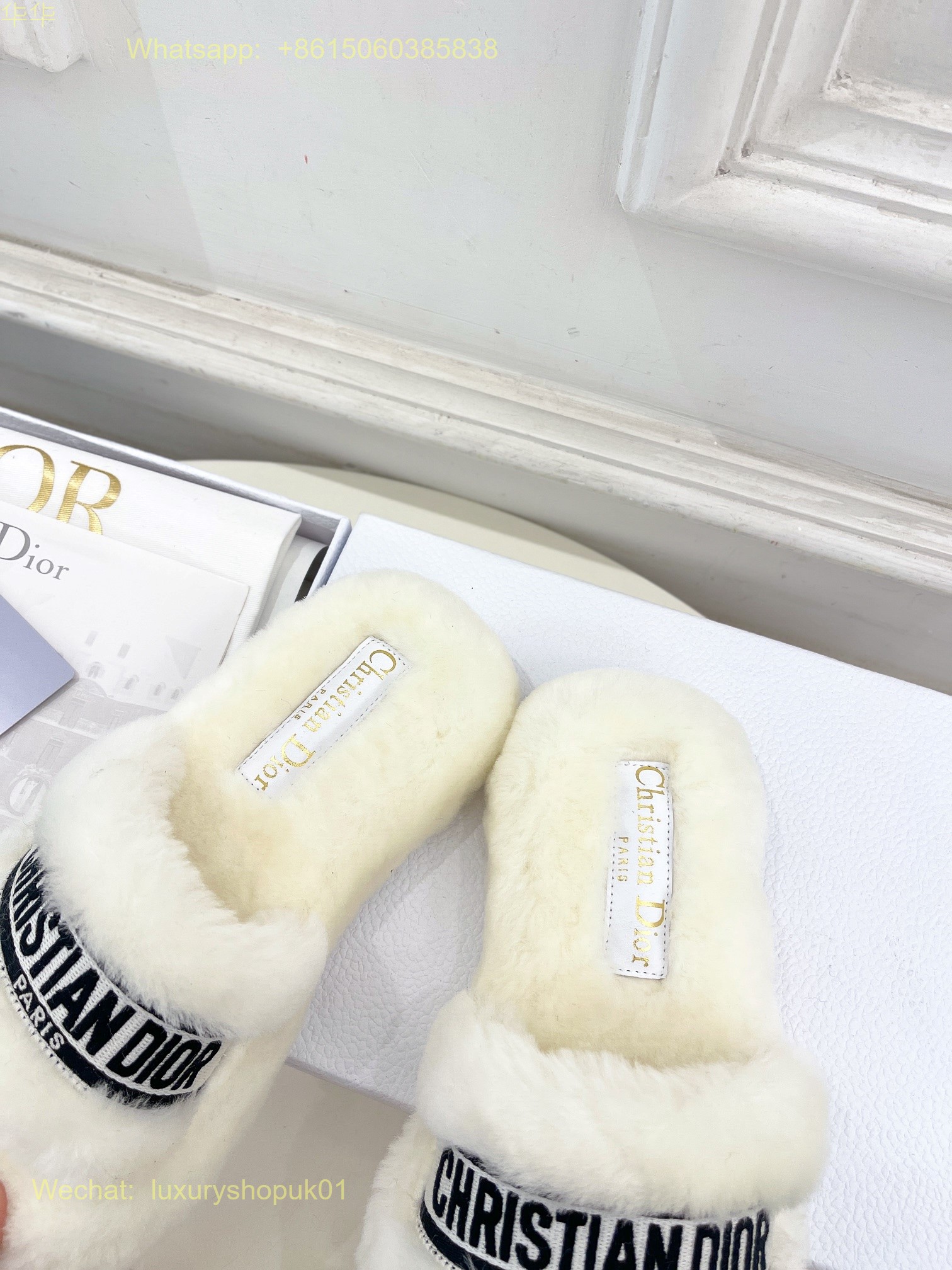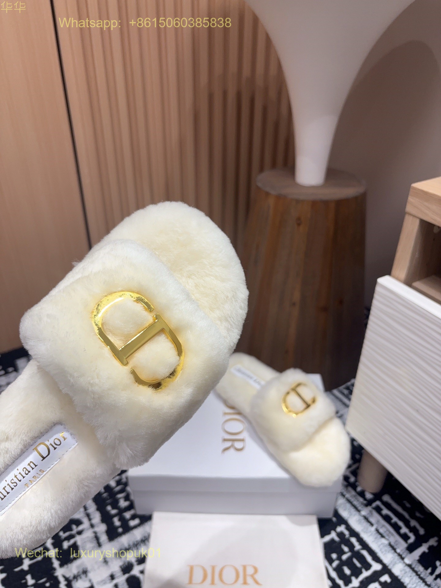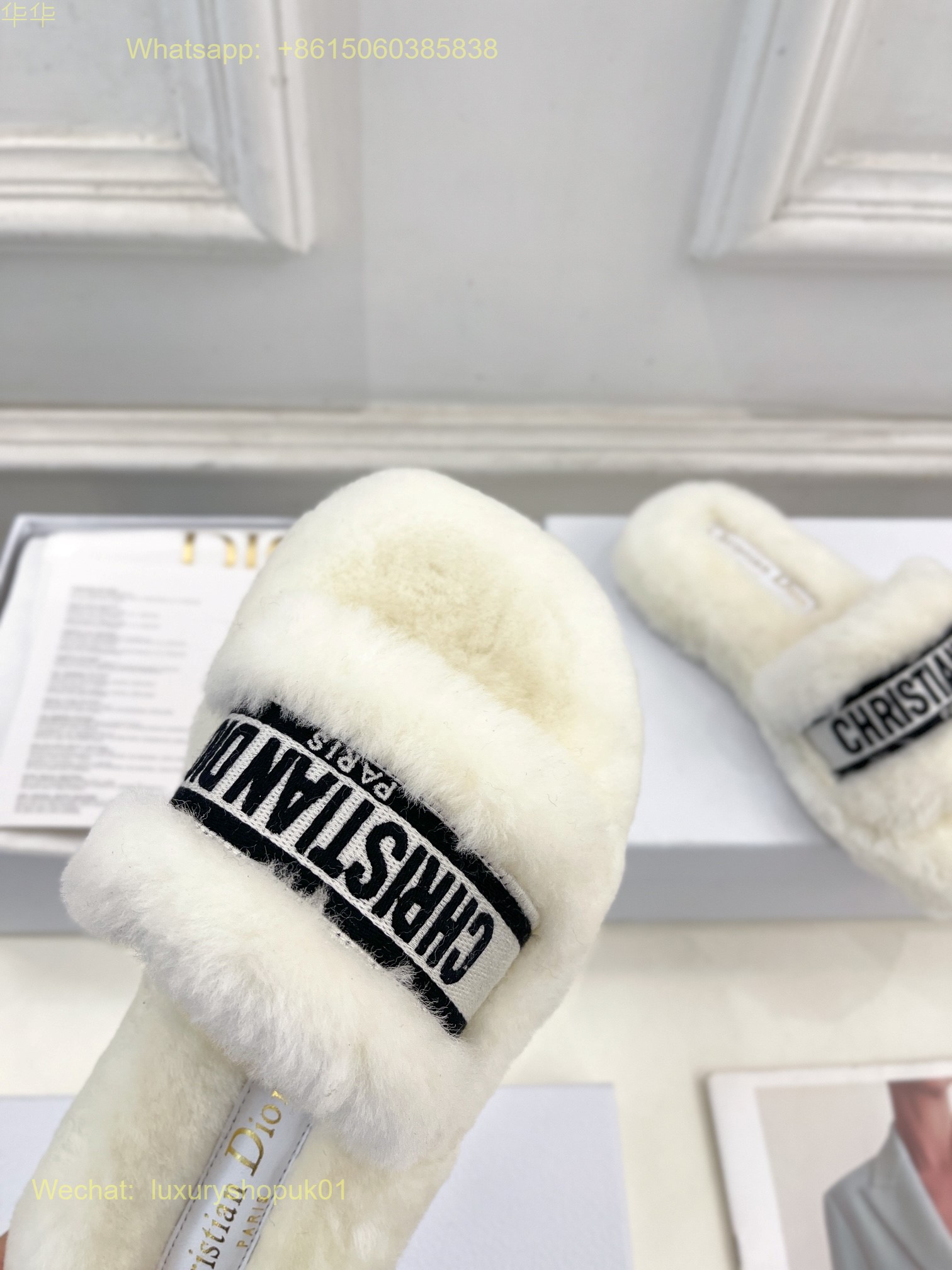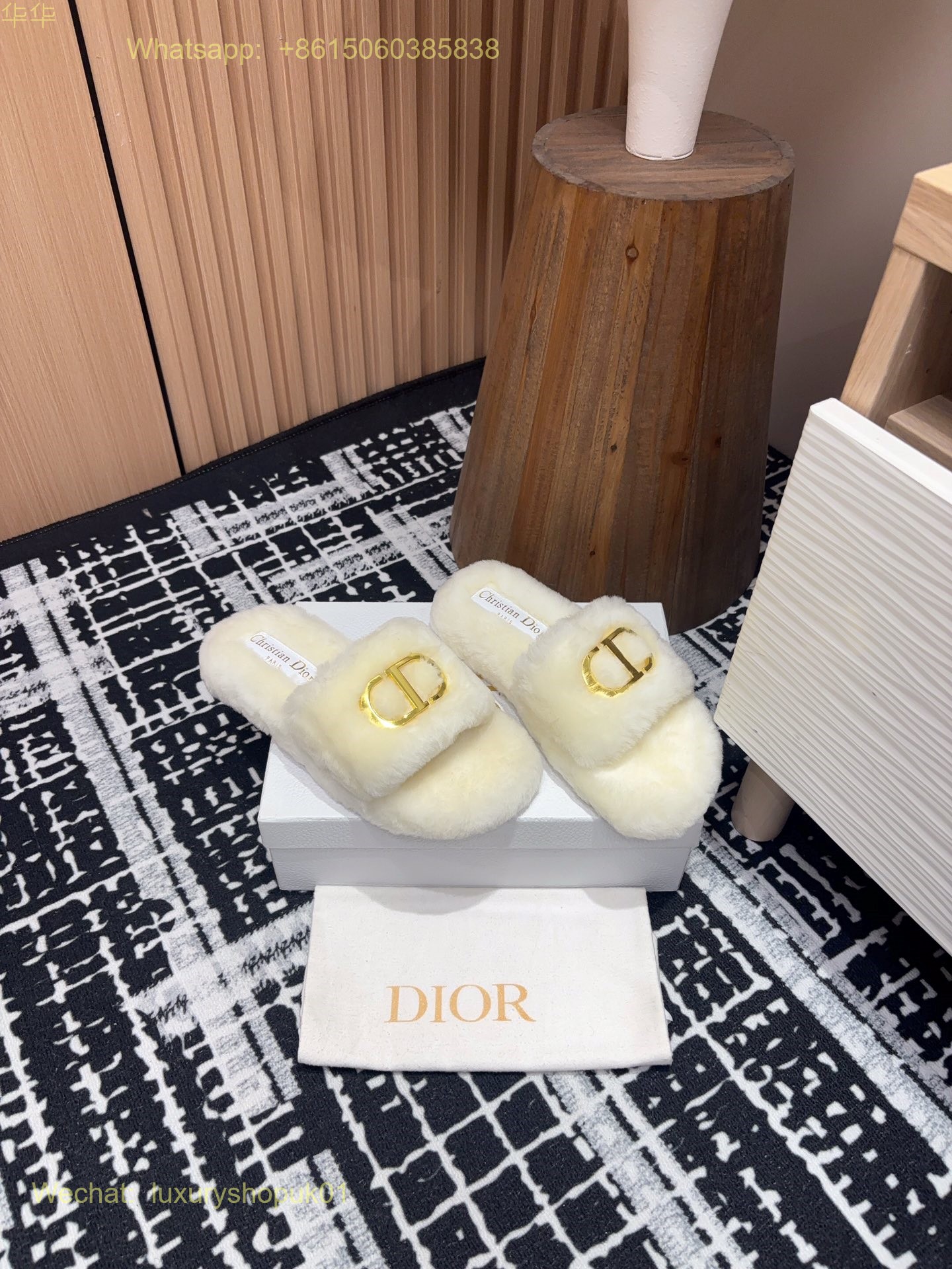 Christian Dior Chez Moi Wool Fur Shearling Slides Women Shoes