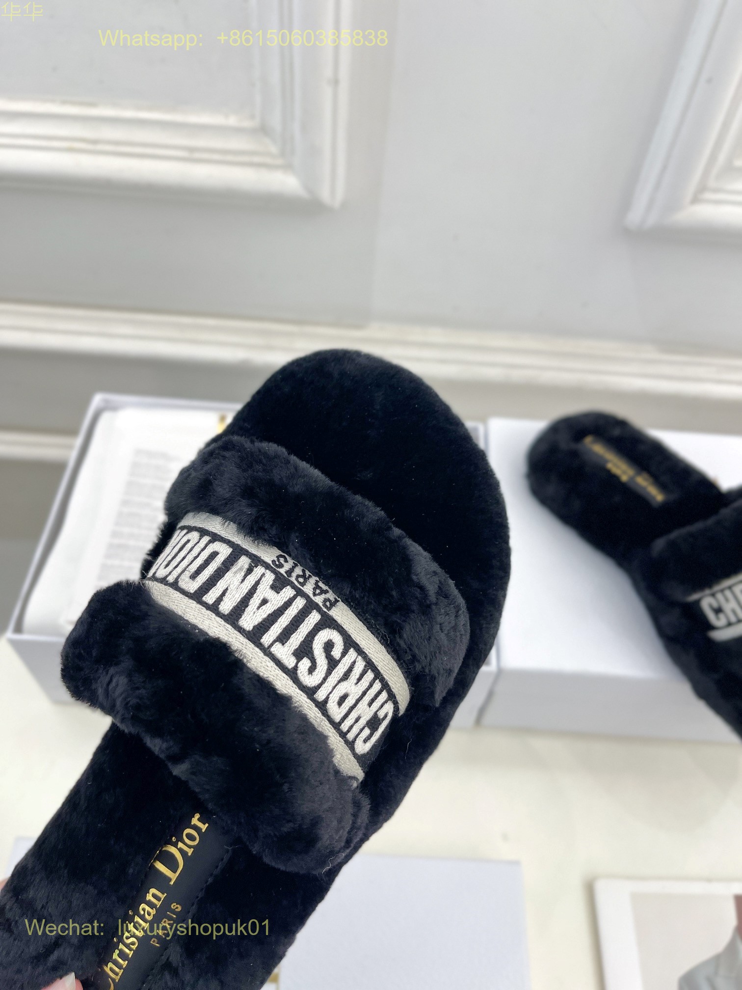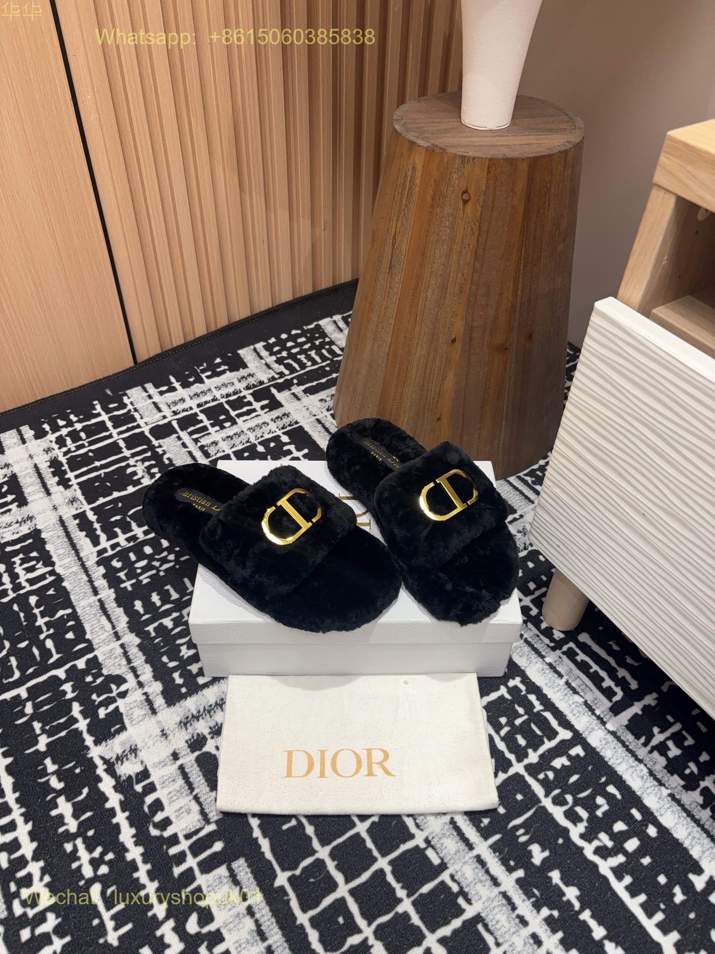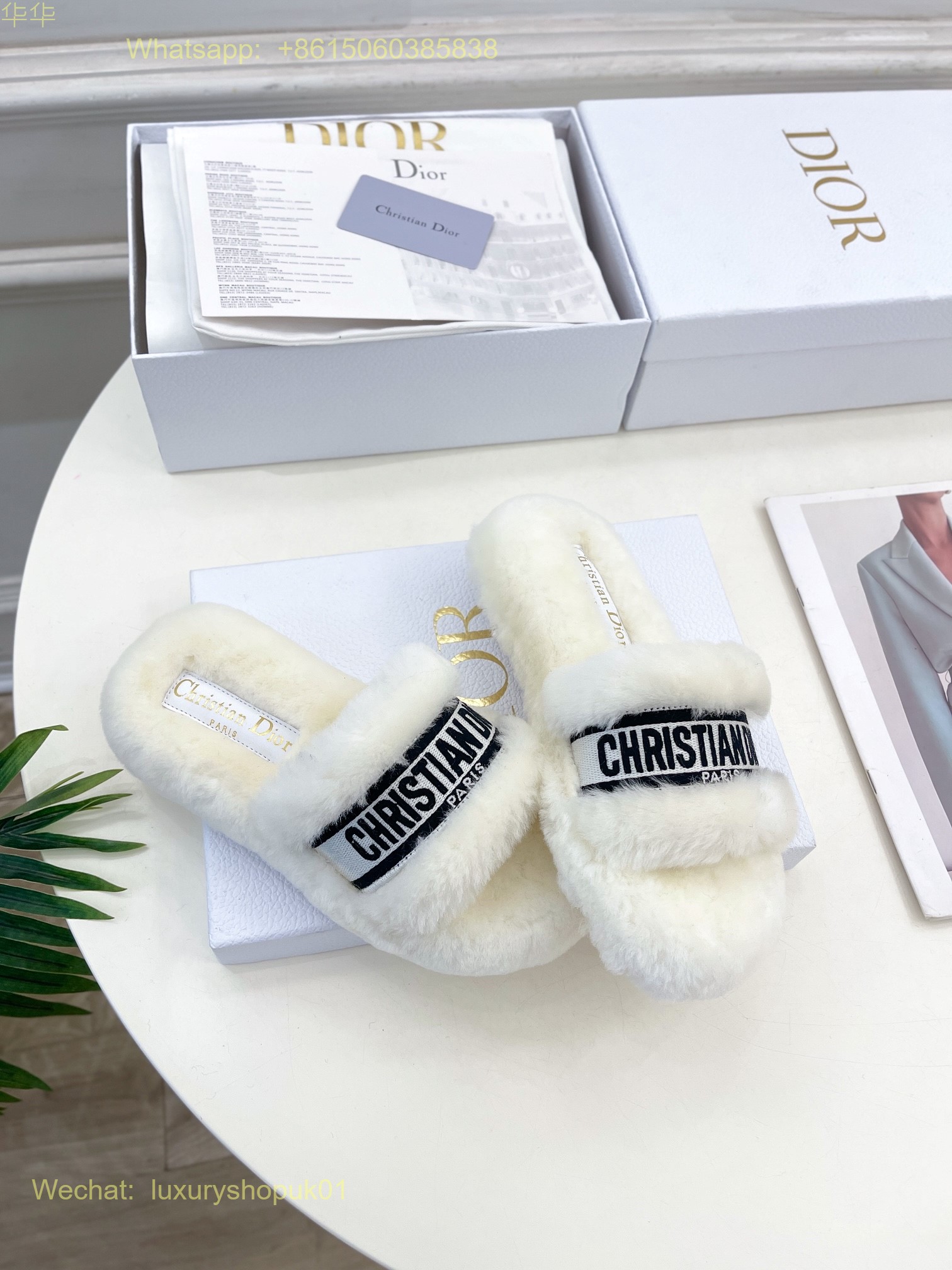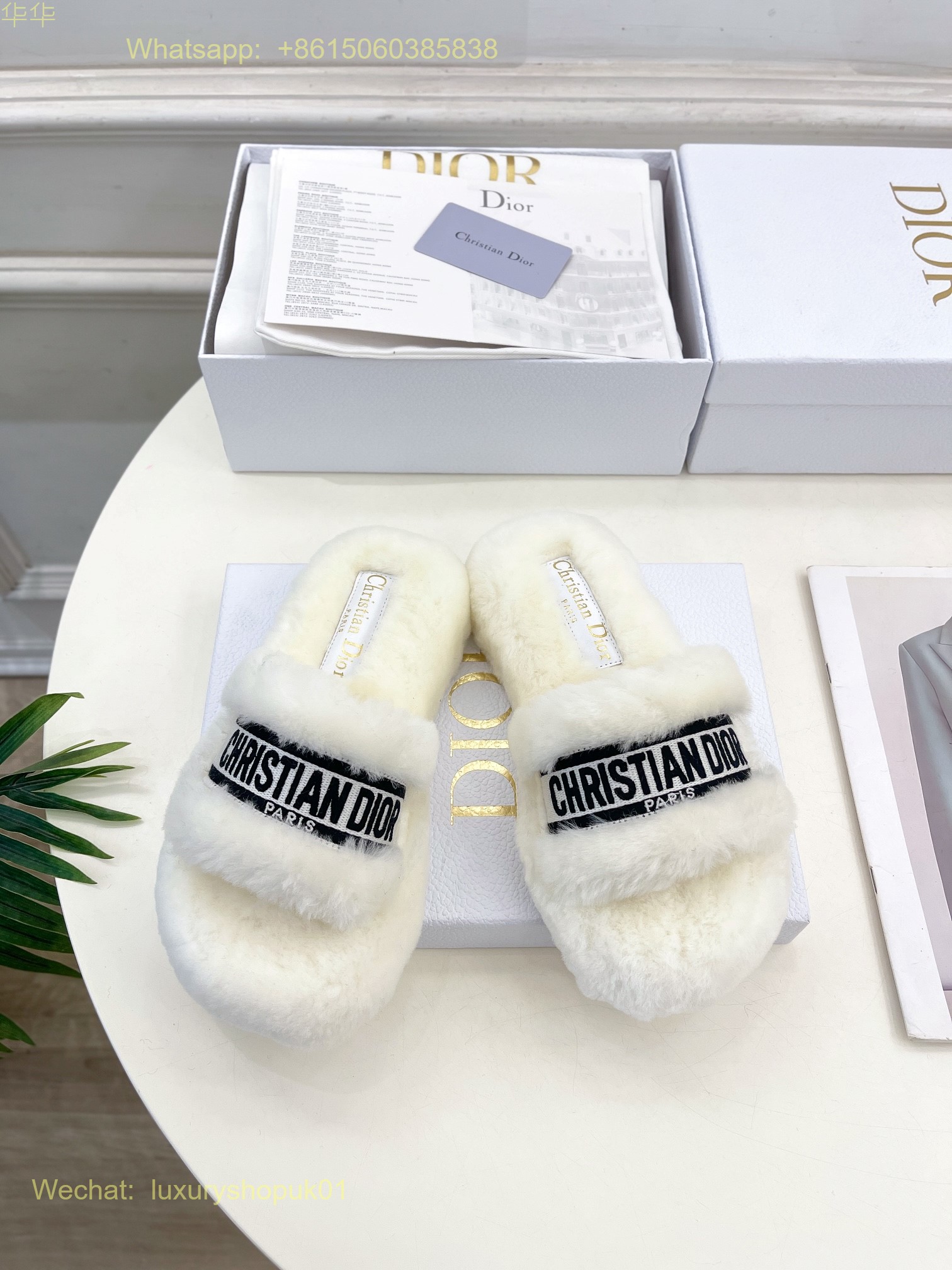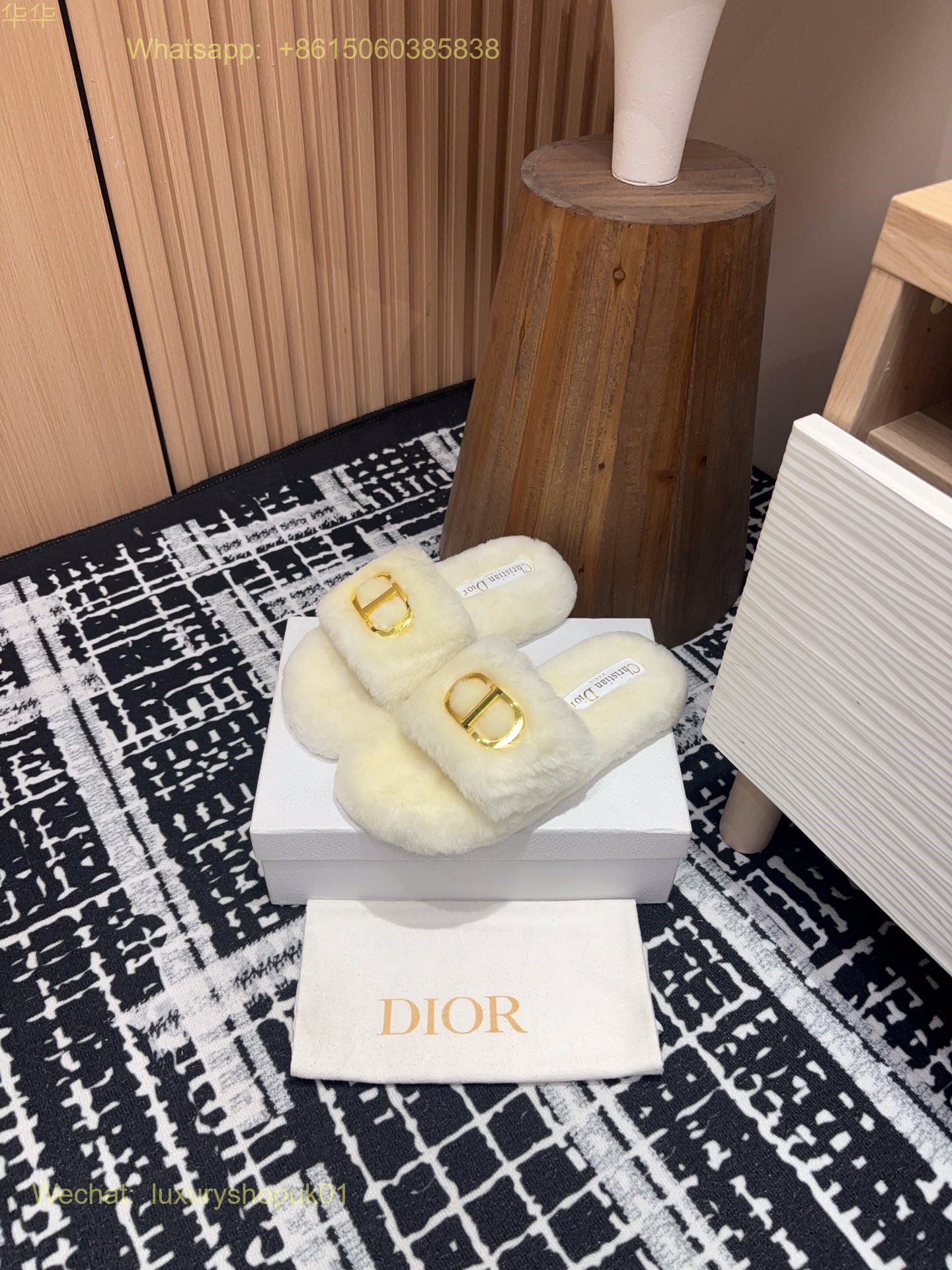 Christian Dior Chez Moi Wool Fur Shearling Slides Women Shoes