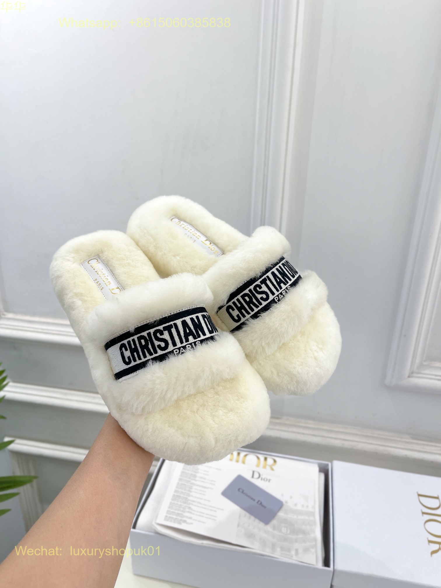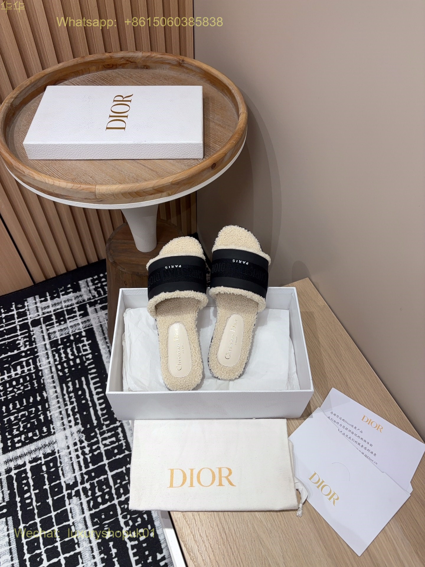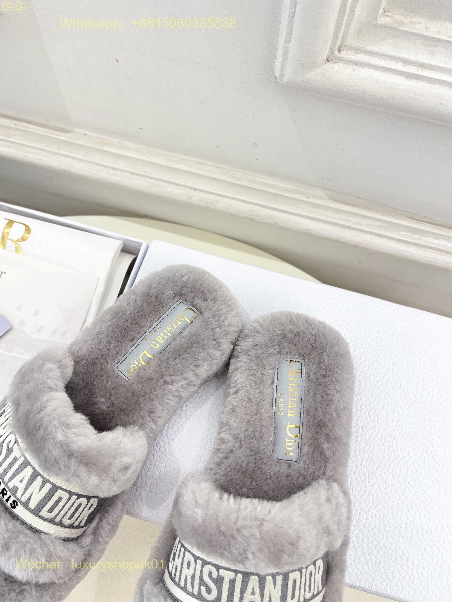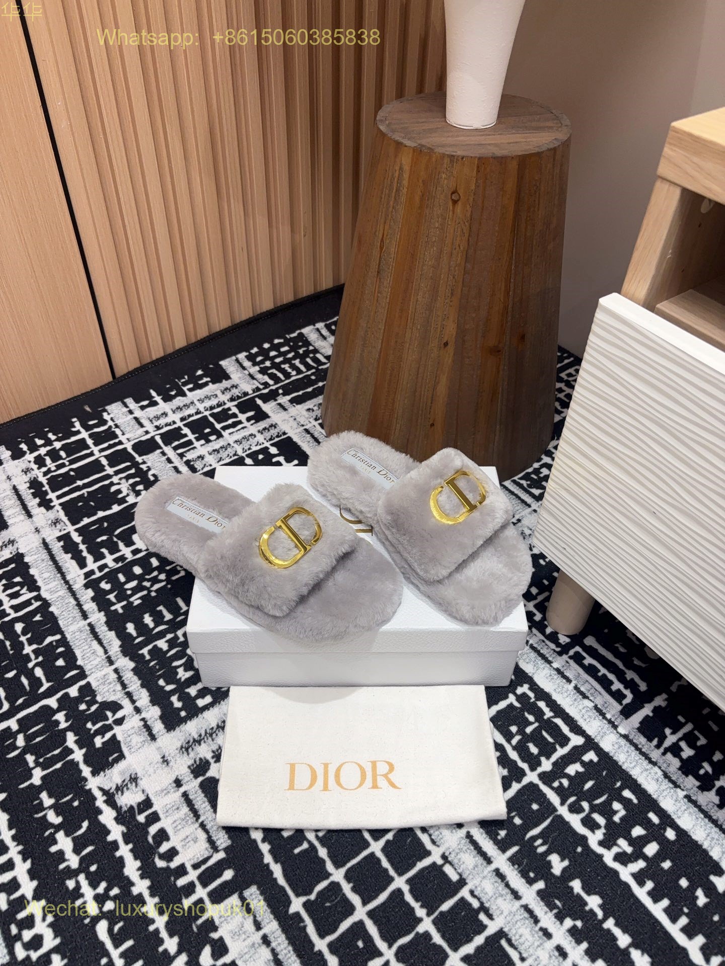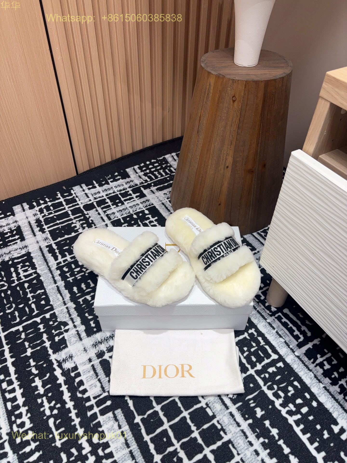 Christian Dior Chez Moi Wool Fur Shearling Slides Women Shoes