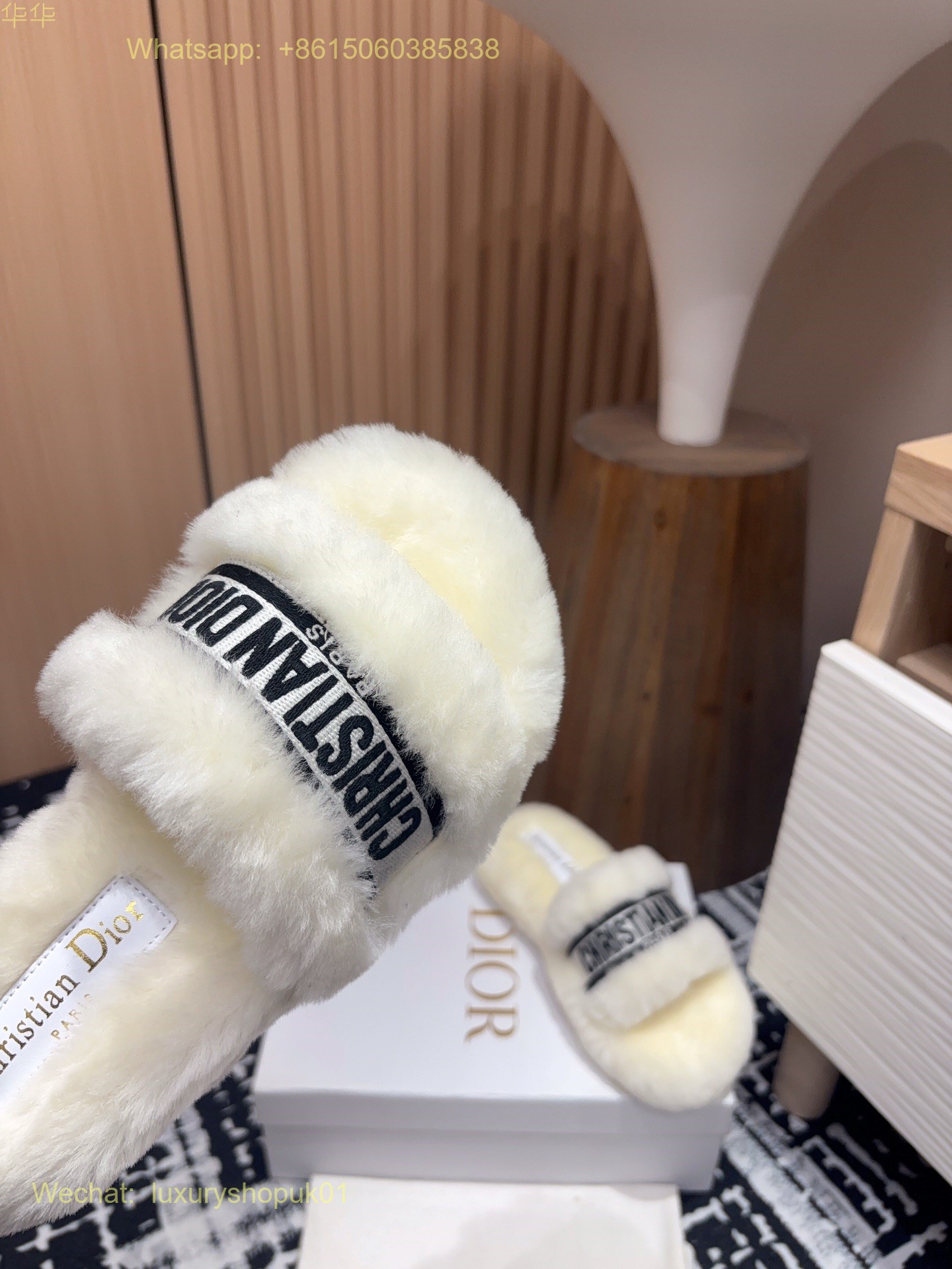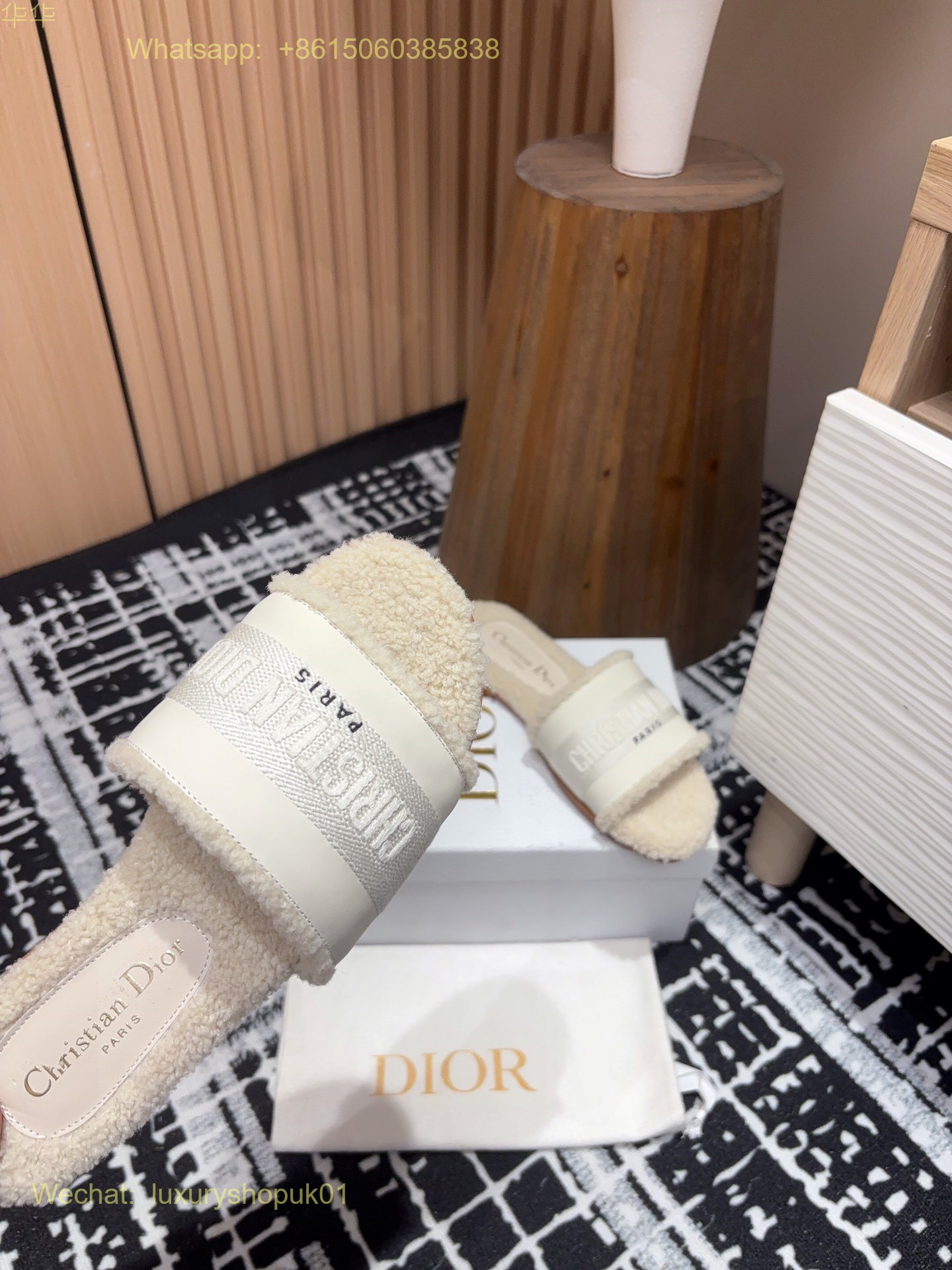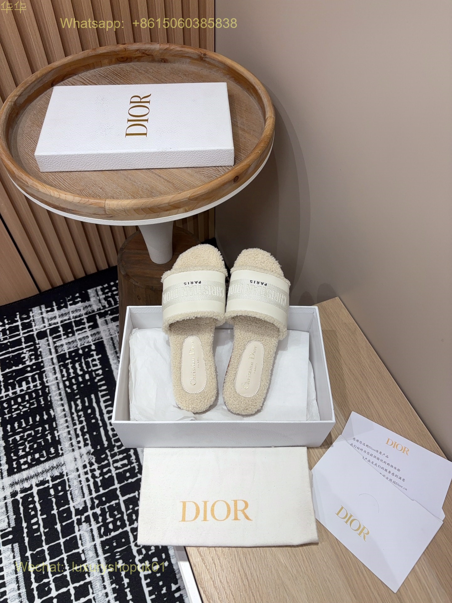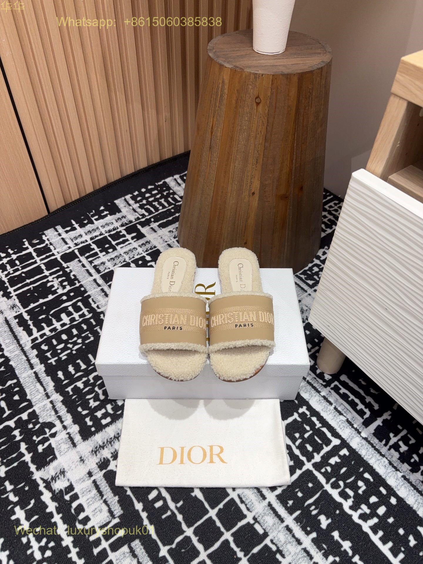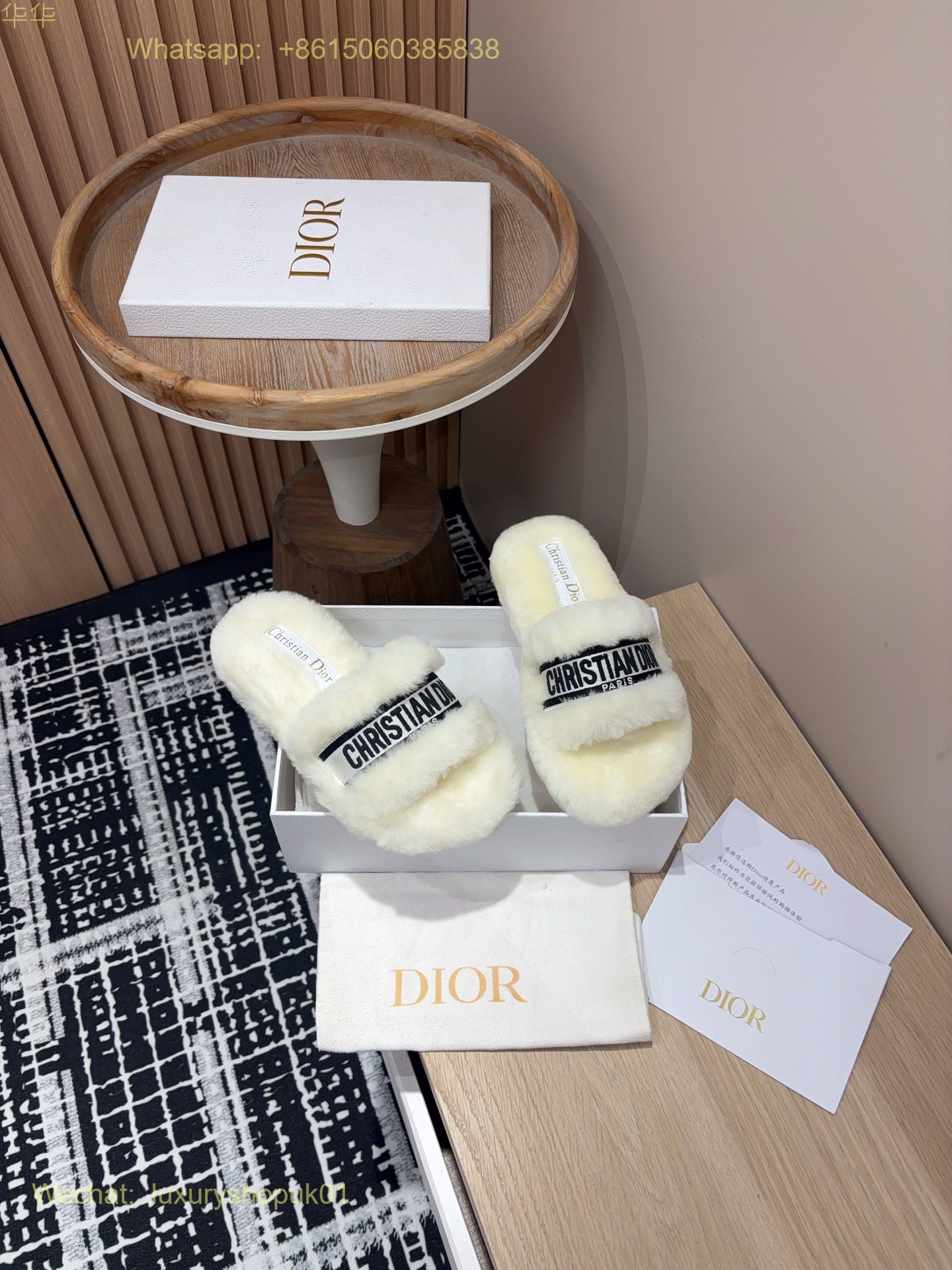 Christian Dior Chez Moi Wool Fur Shearling Slides Women Shoes