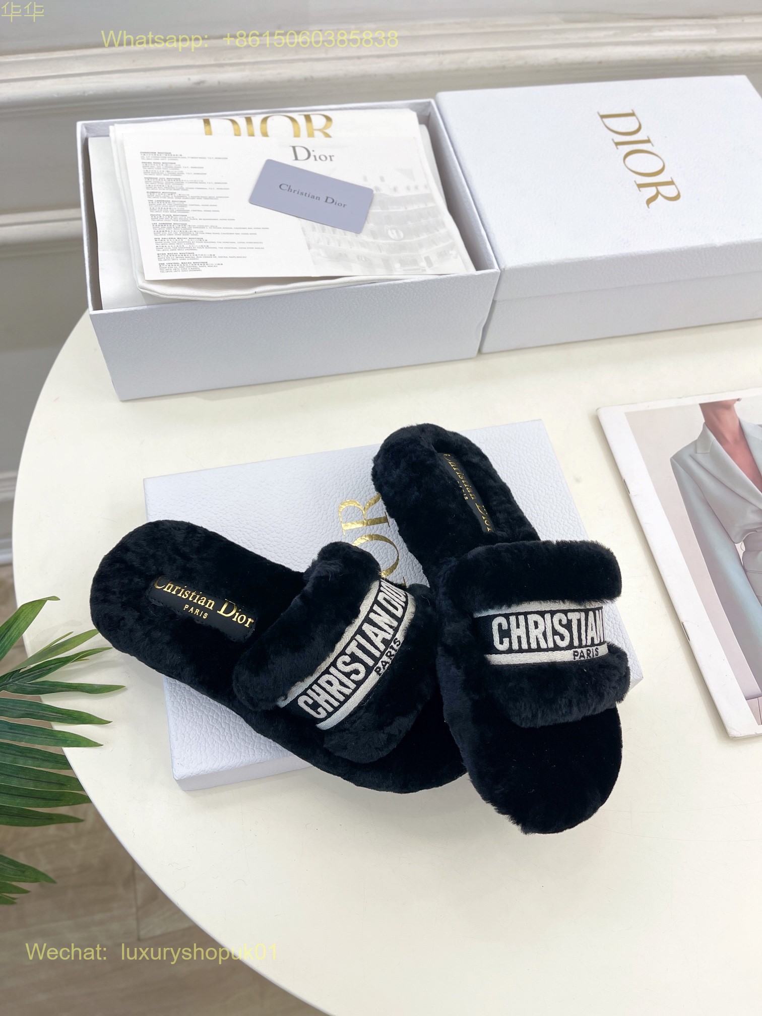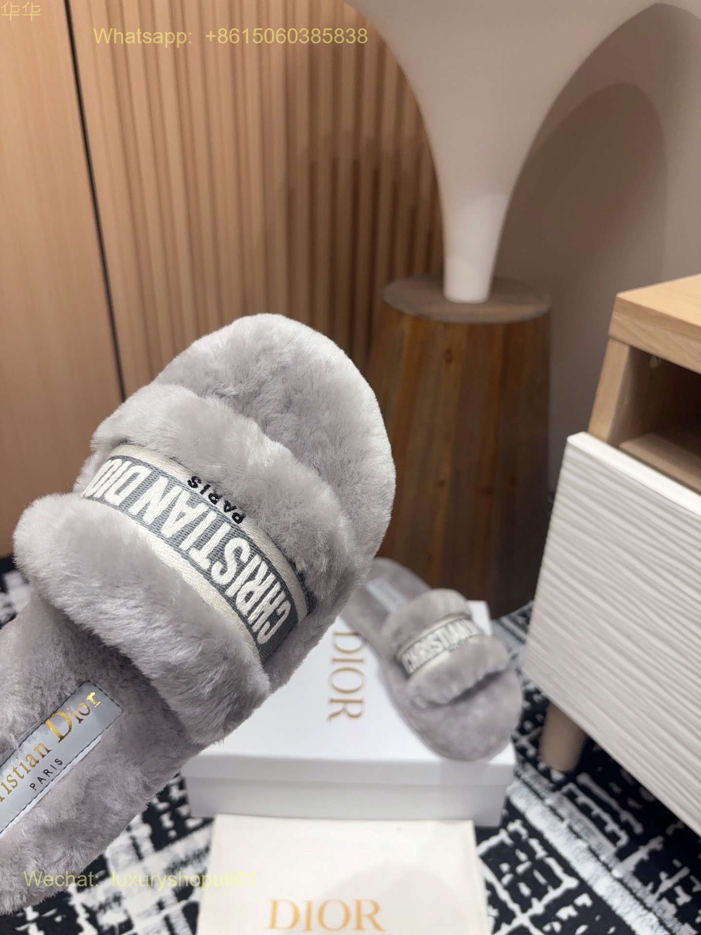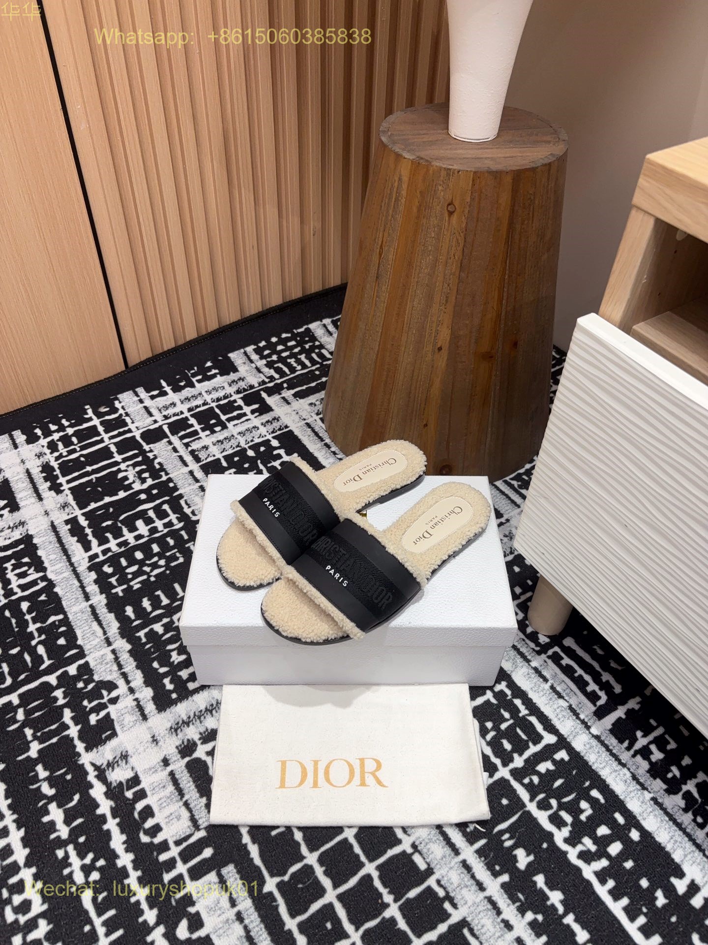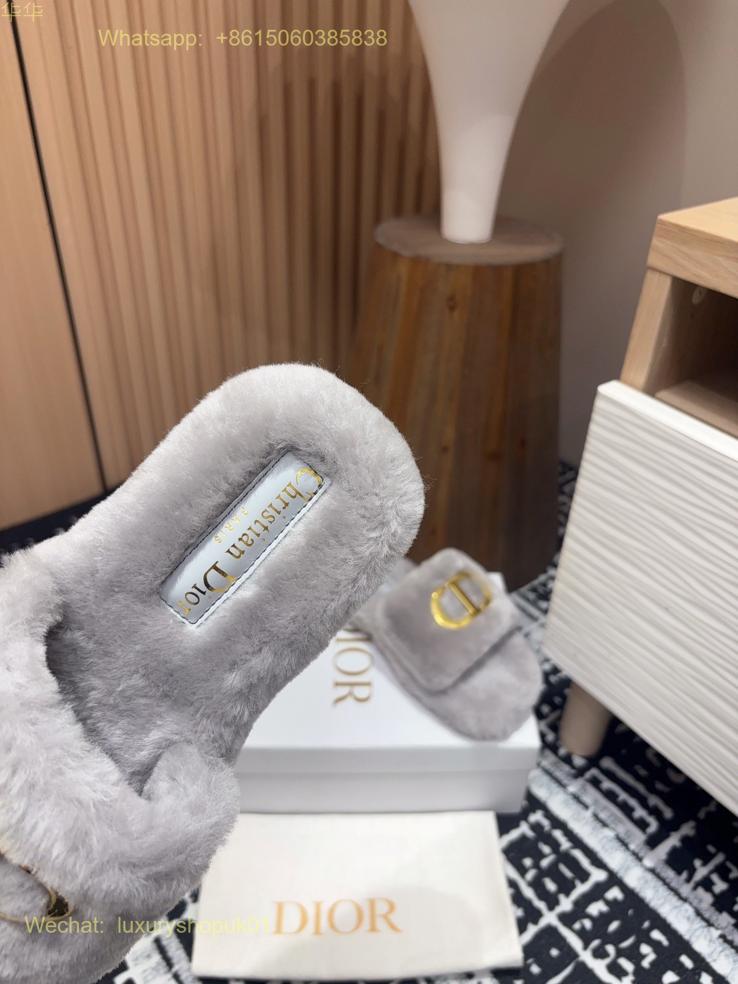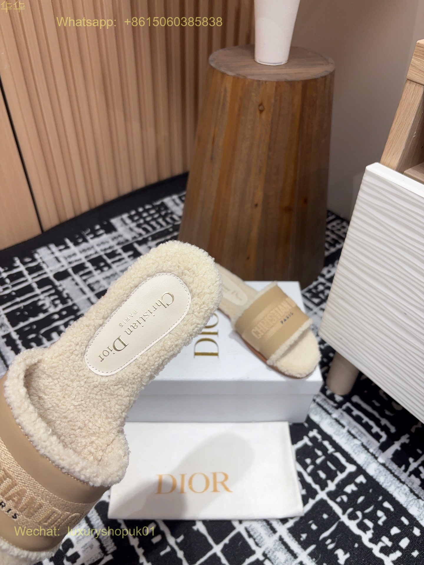 Christian Dior Chez Moi Wool Fur Shearling Slides Women Shoes