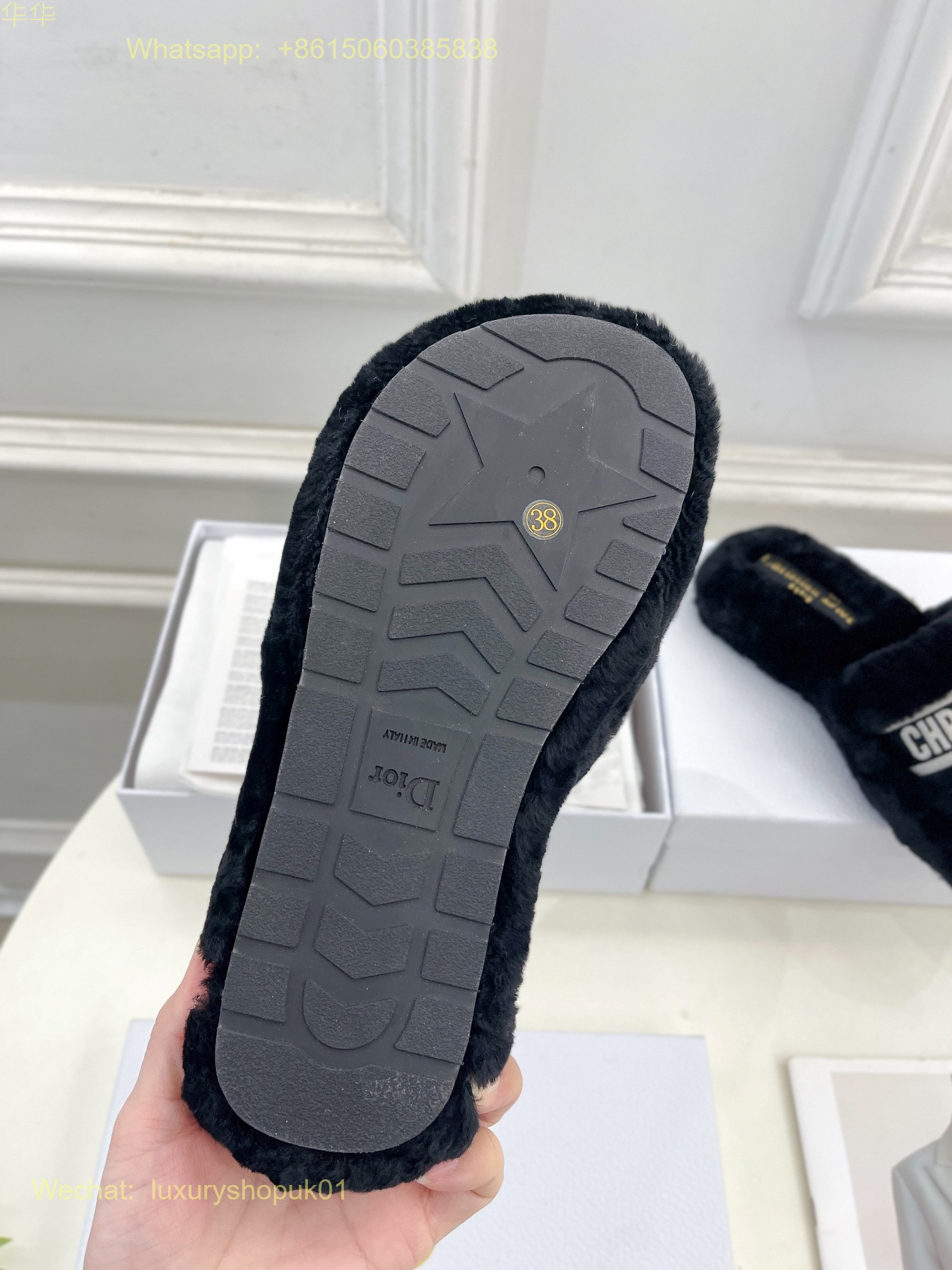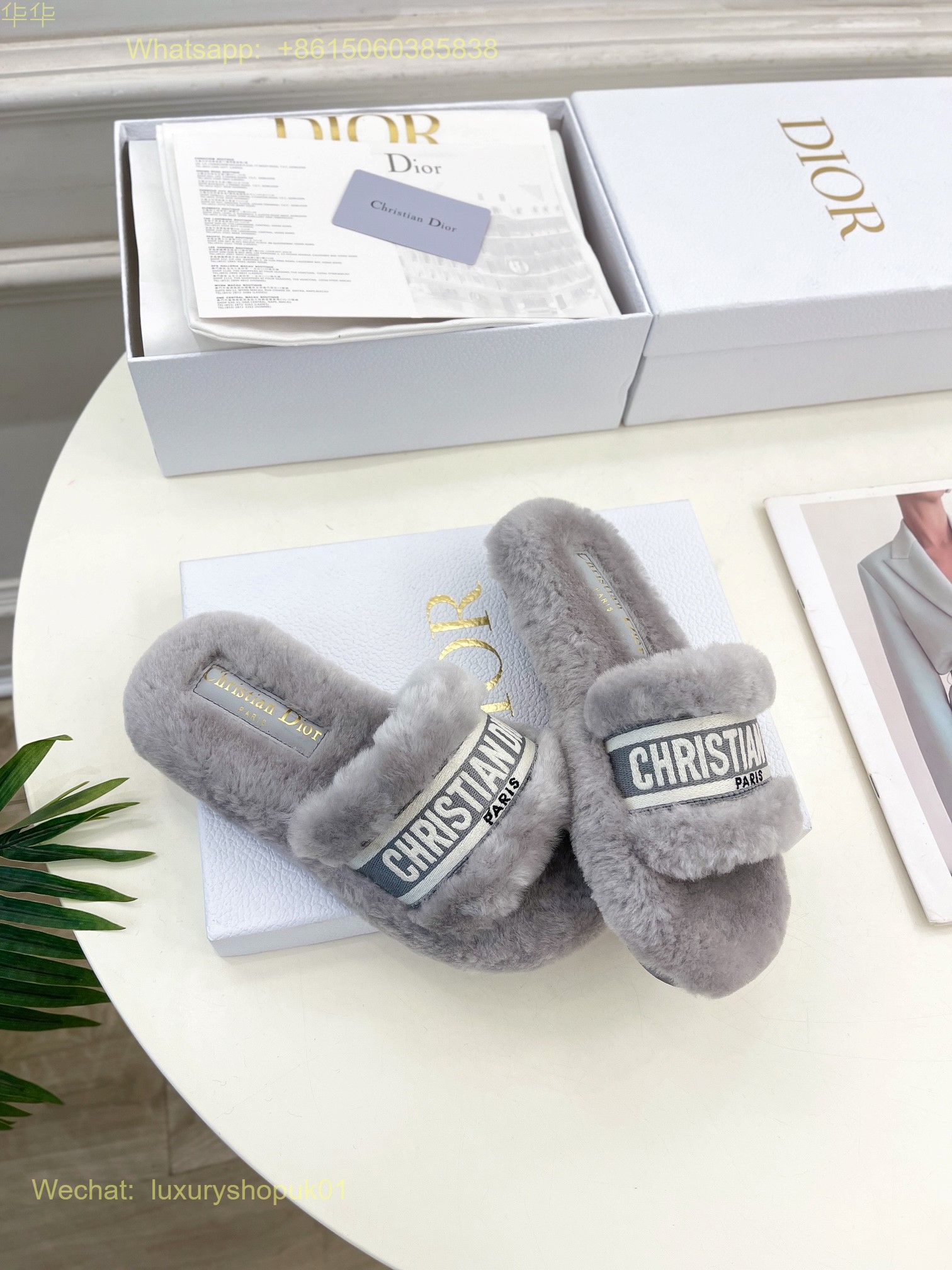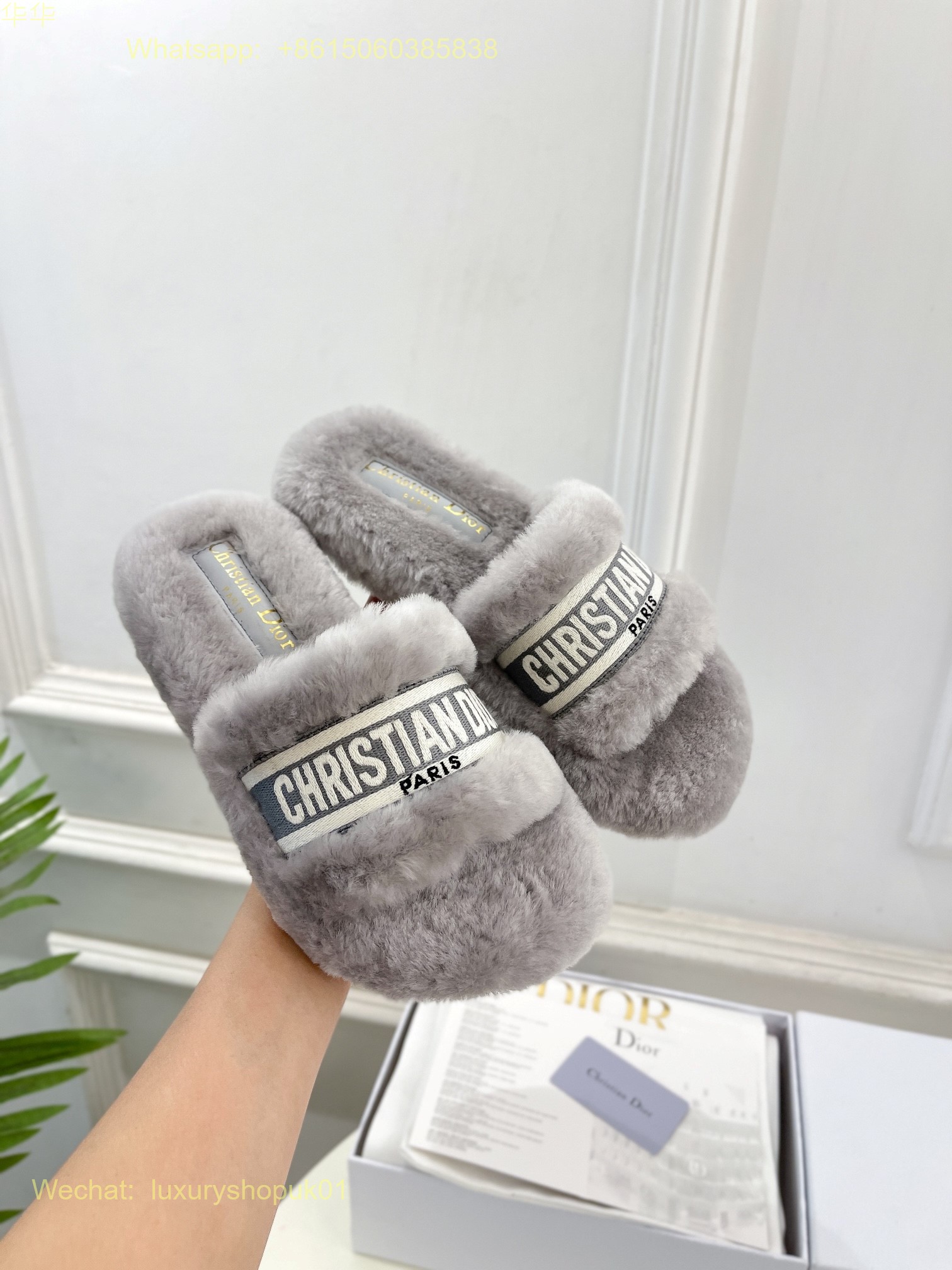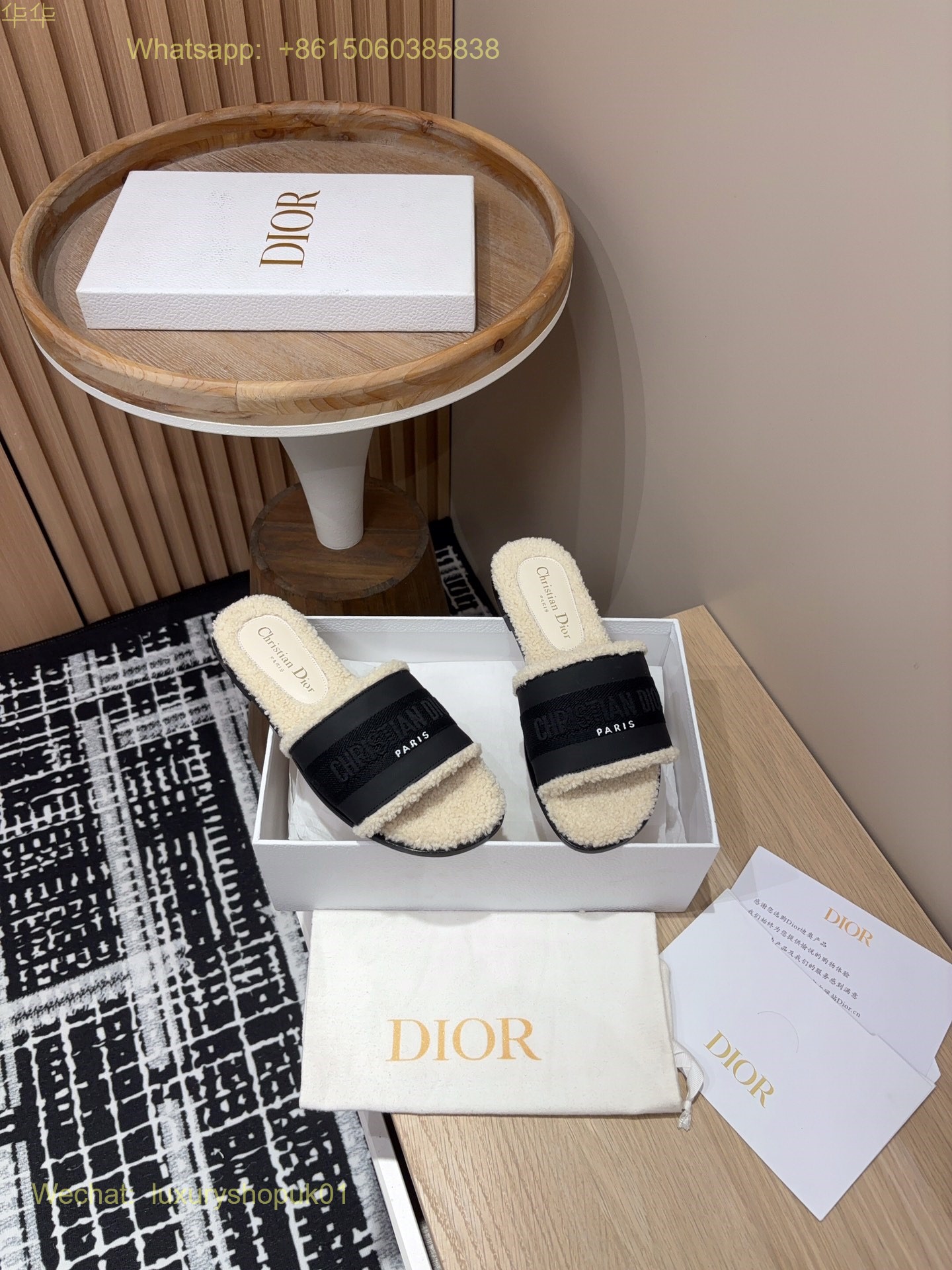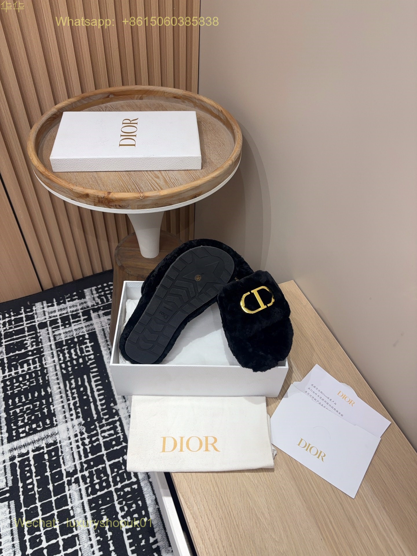 Christian Dior Chez Moi Wool Fur Shearling Slides Women Shoes
