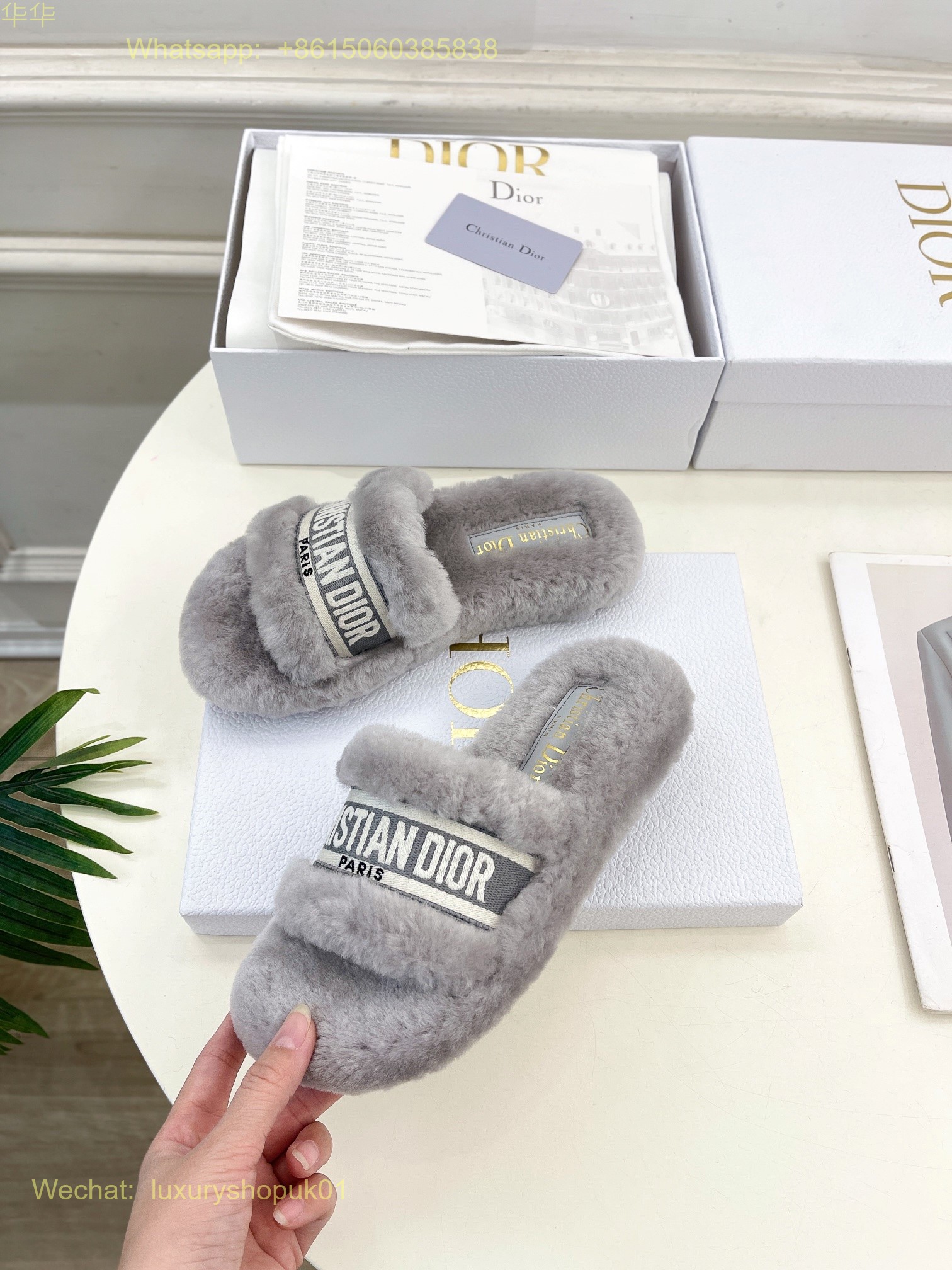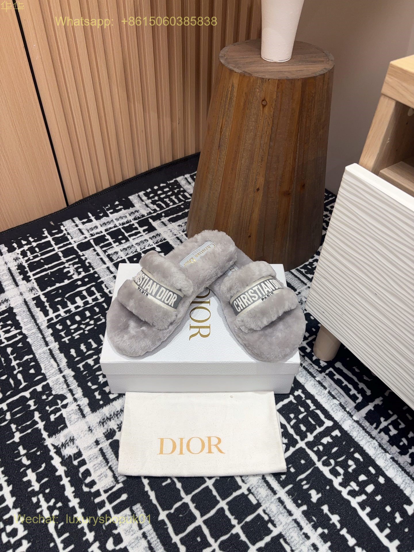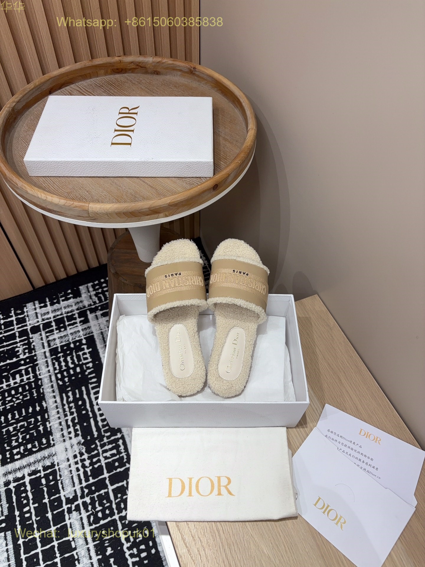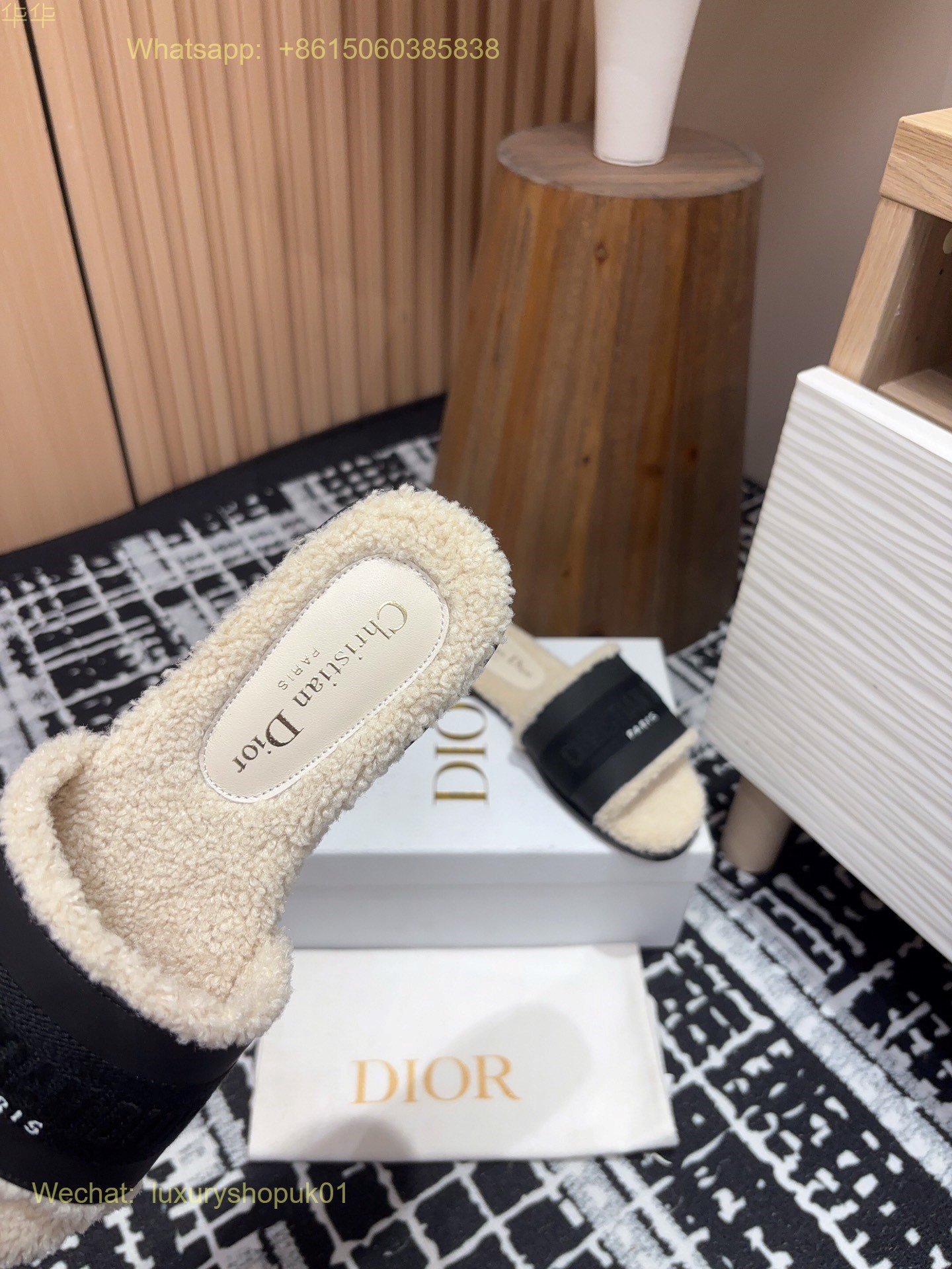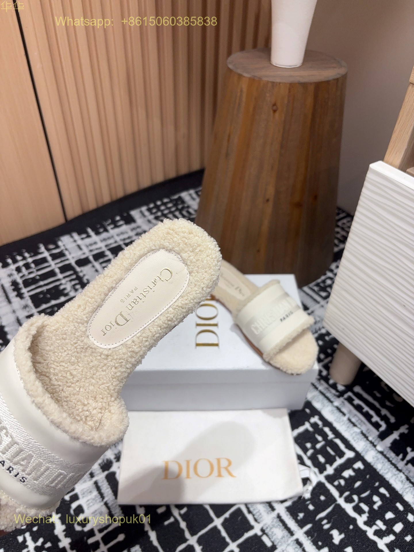 Christian Dior Chez Moi Wool Fur Shearling Slides Women Shoes