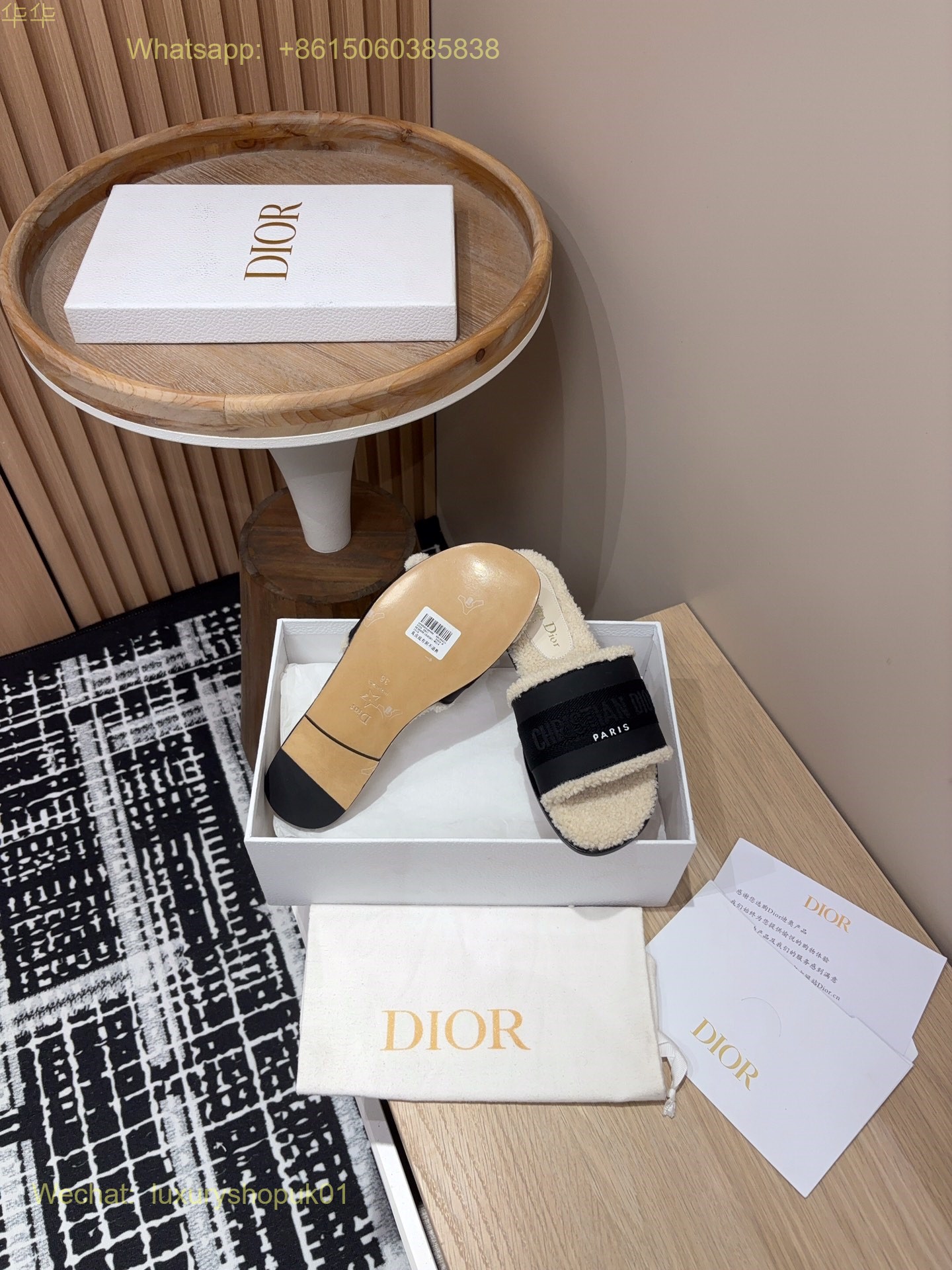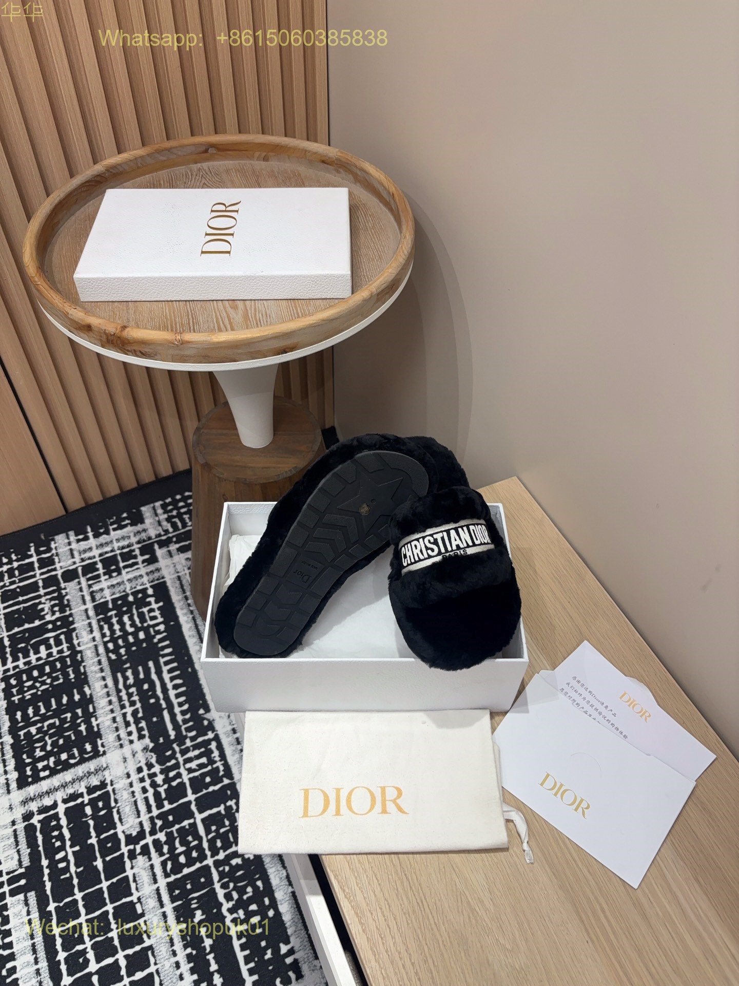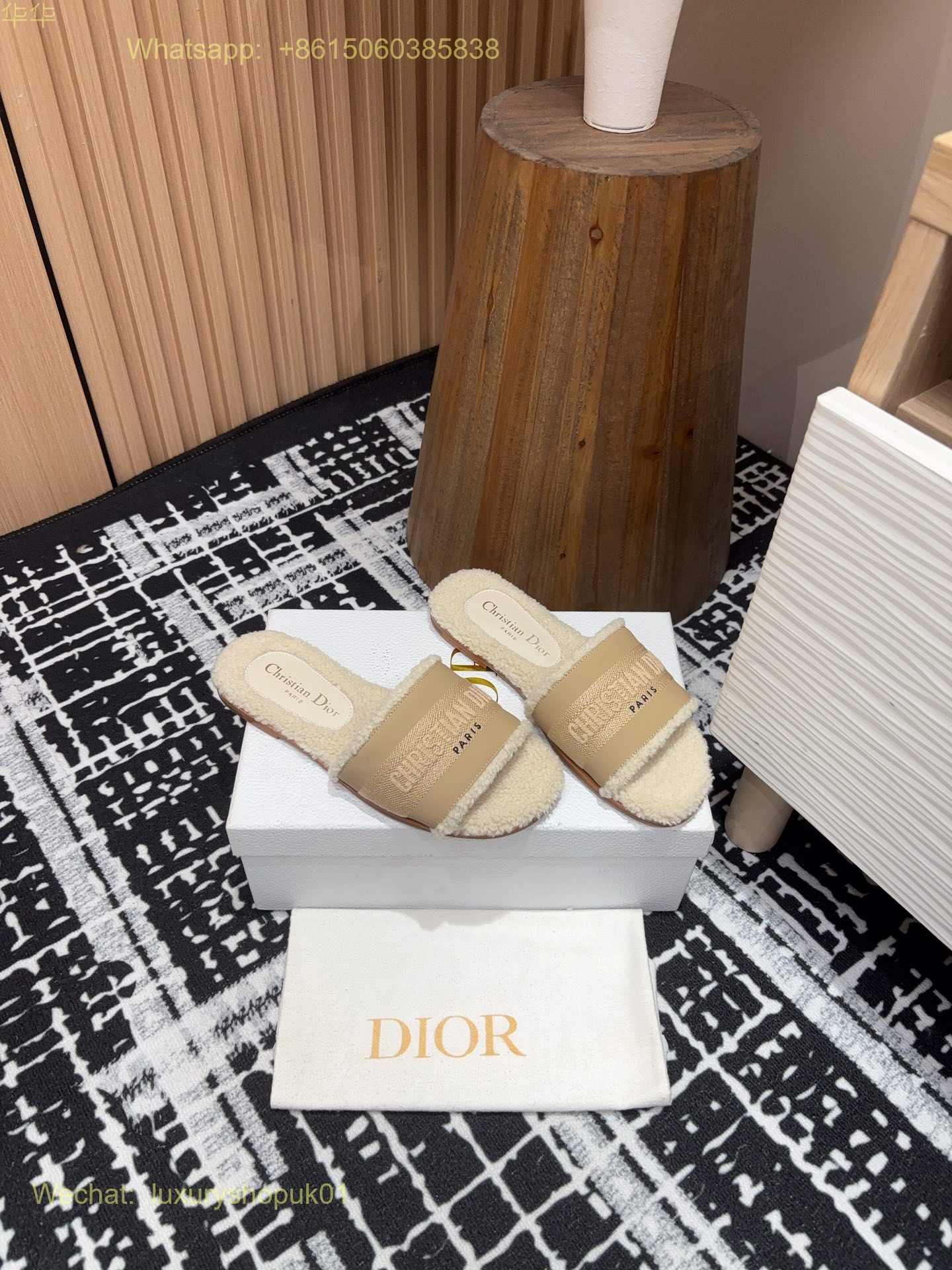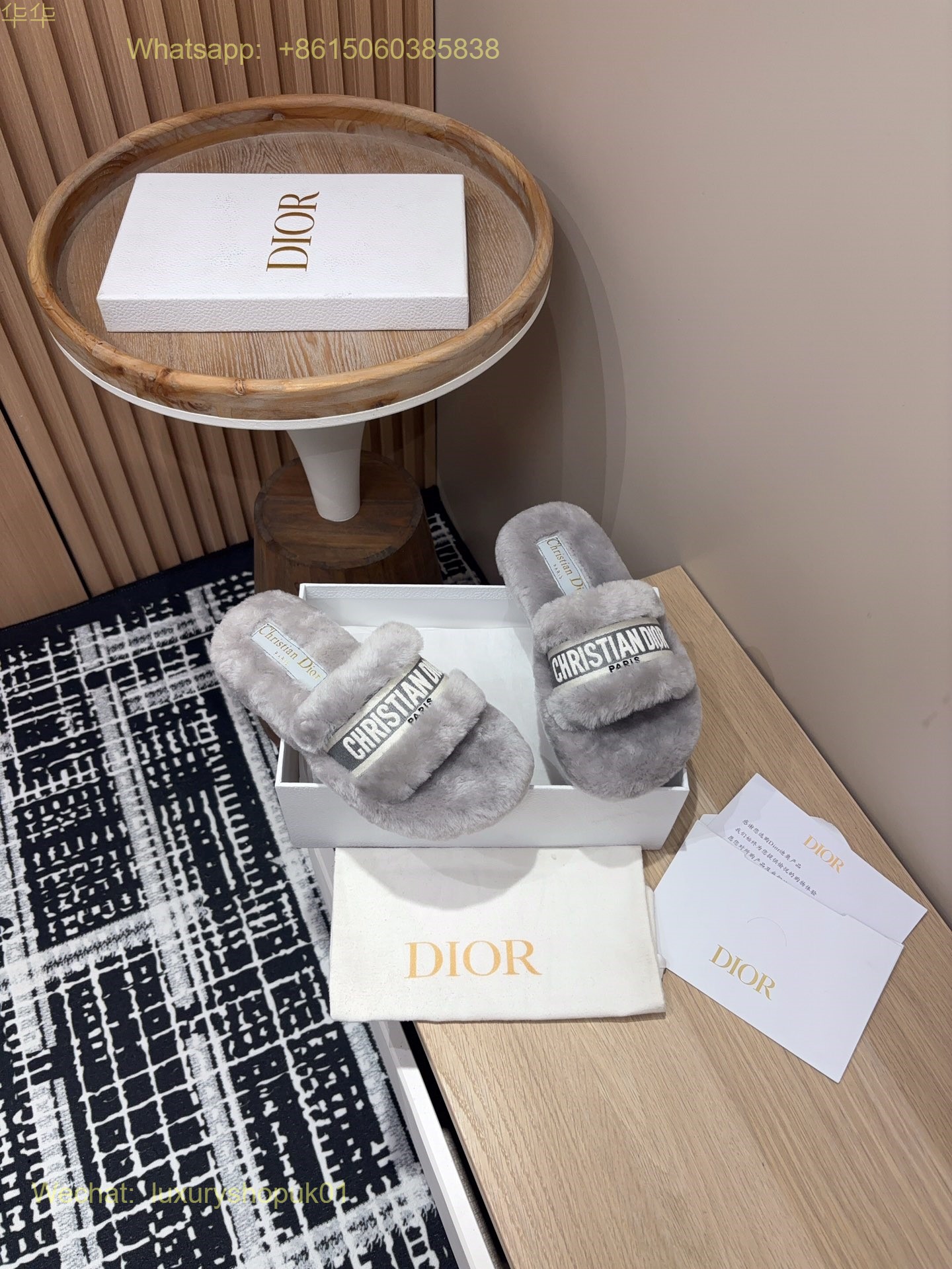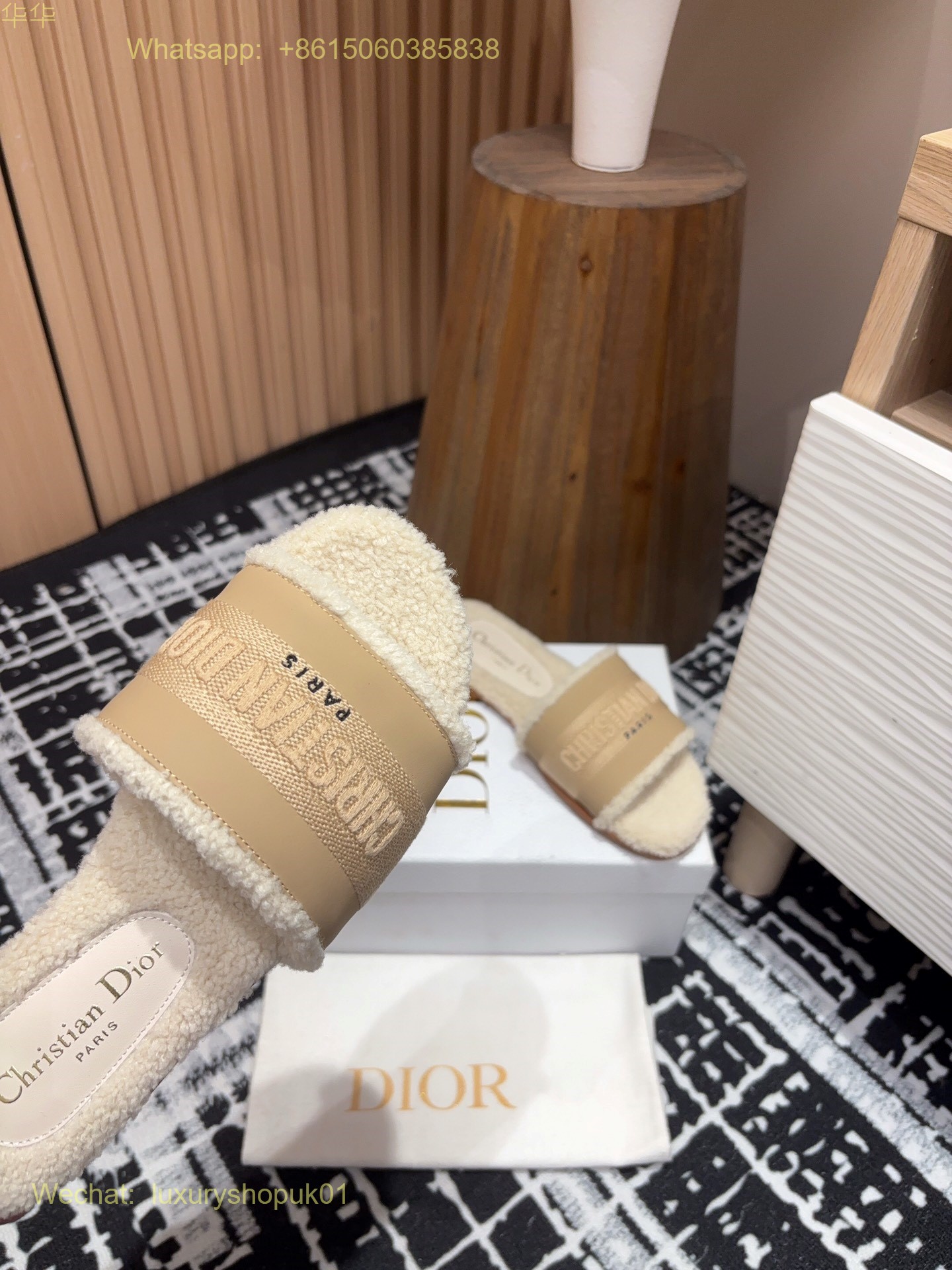Christian Dior Chez Moi Wool Fur Shearling Slides Women Shoes