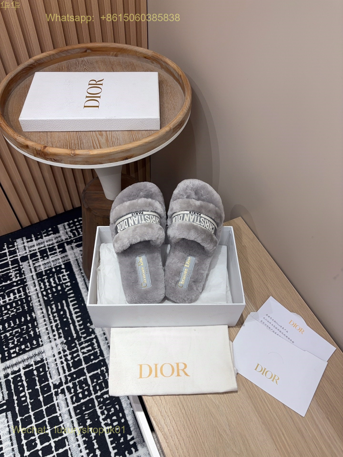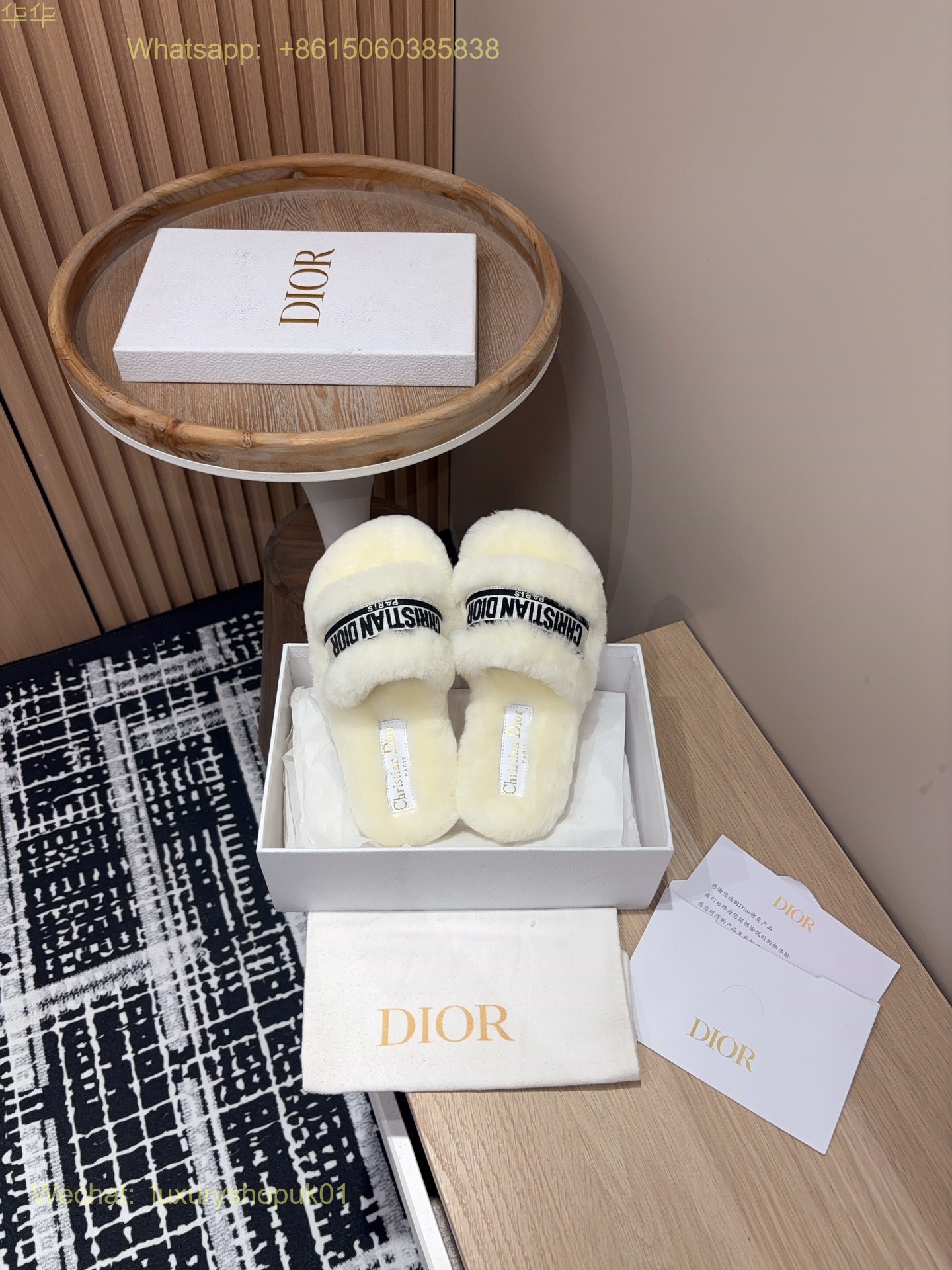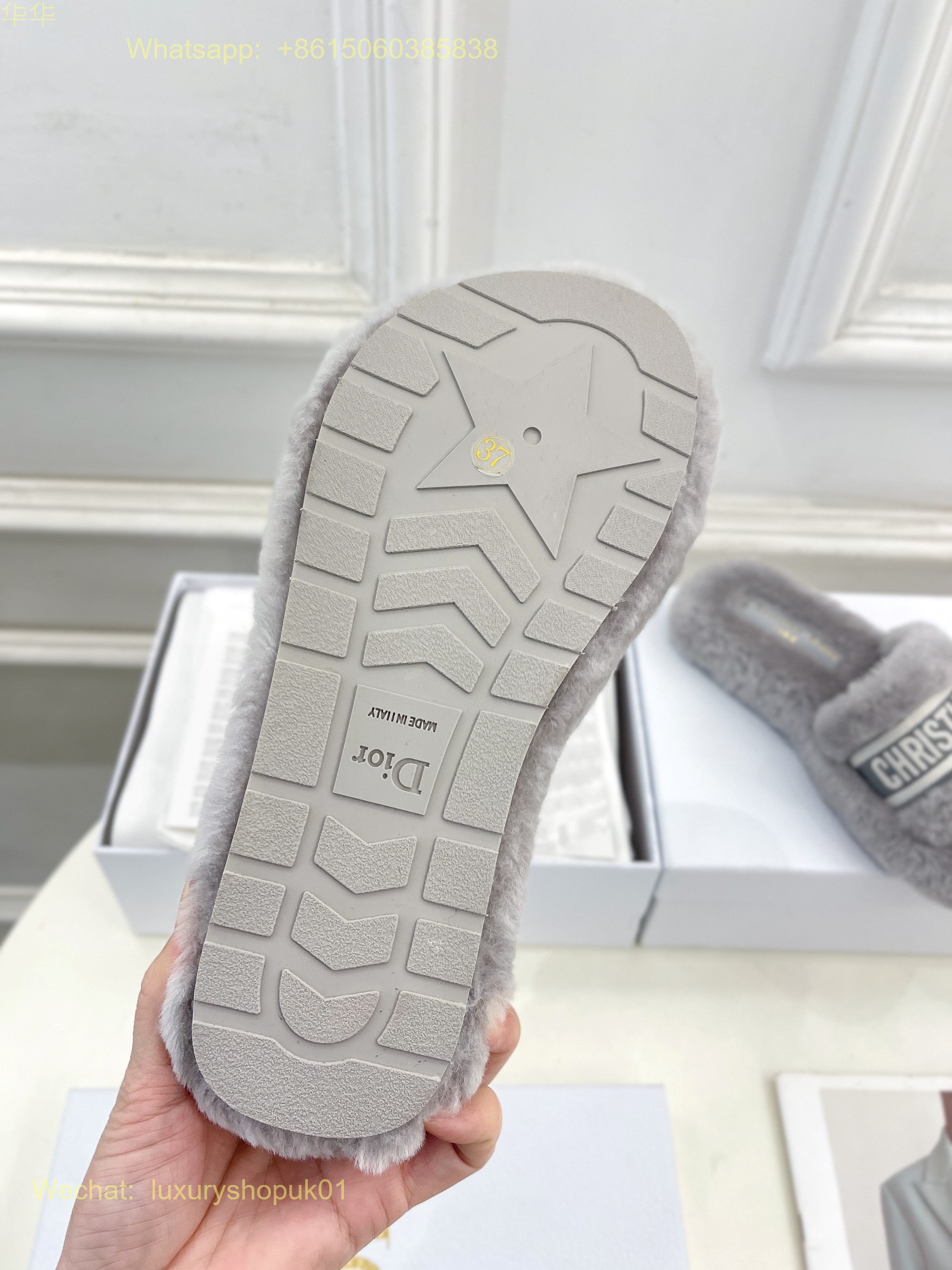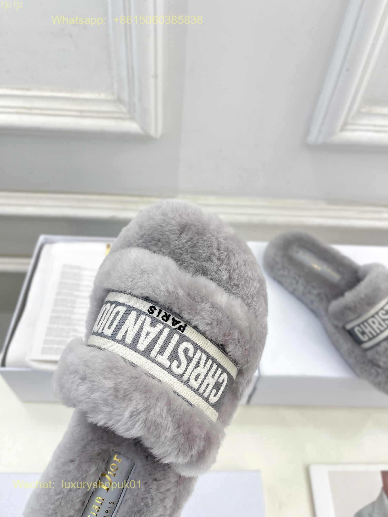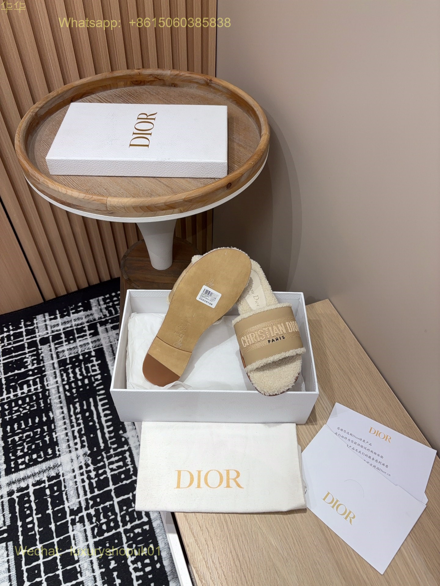 Christian Dior Chez Moi Wool Fur Shearling Slides Women Shoes