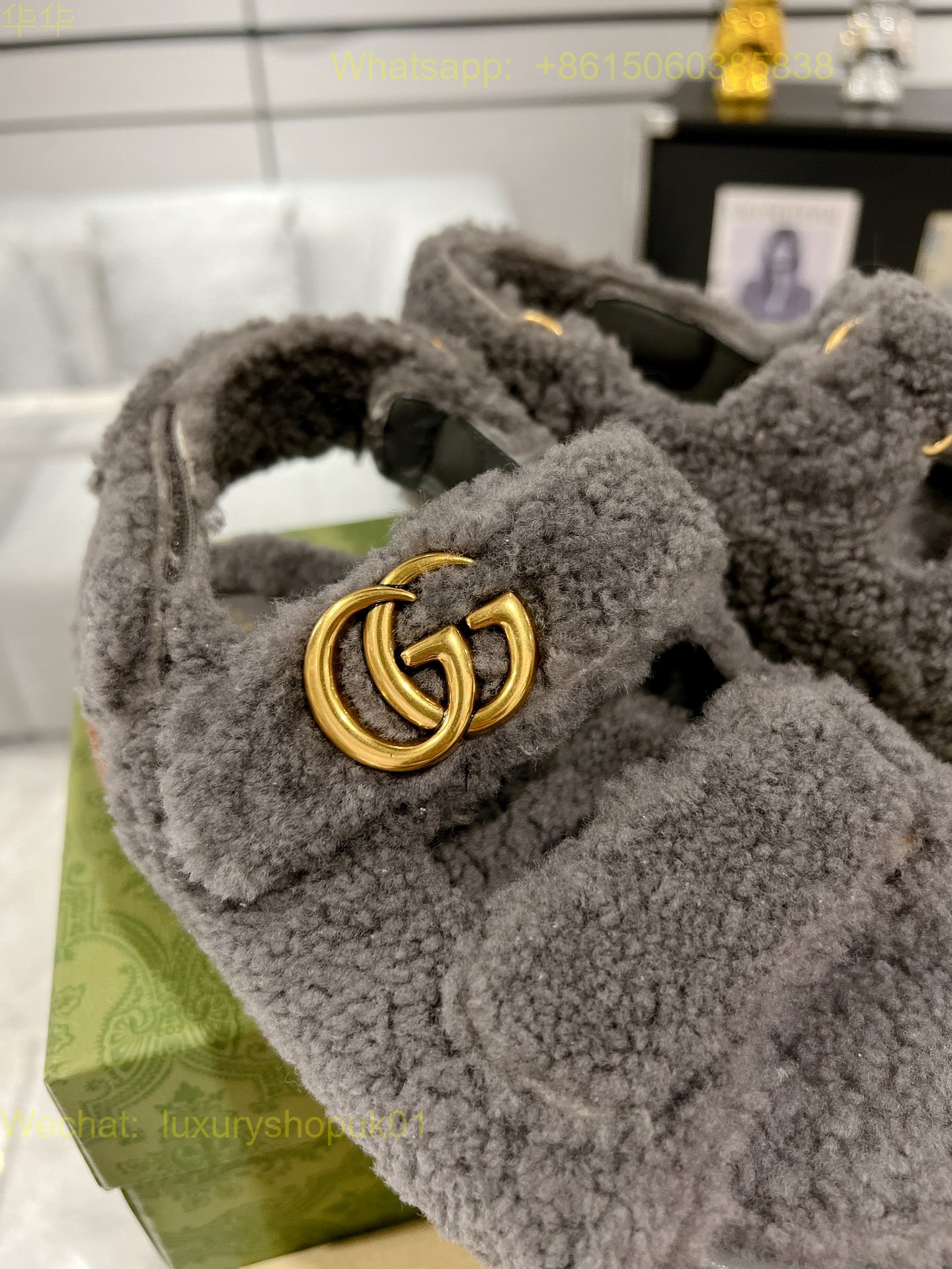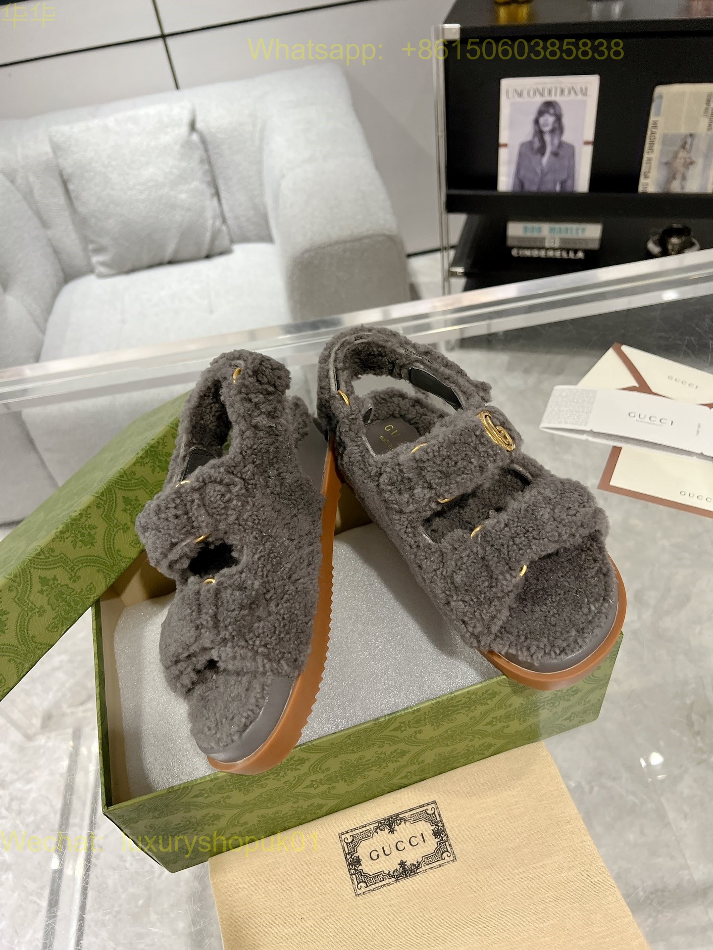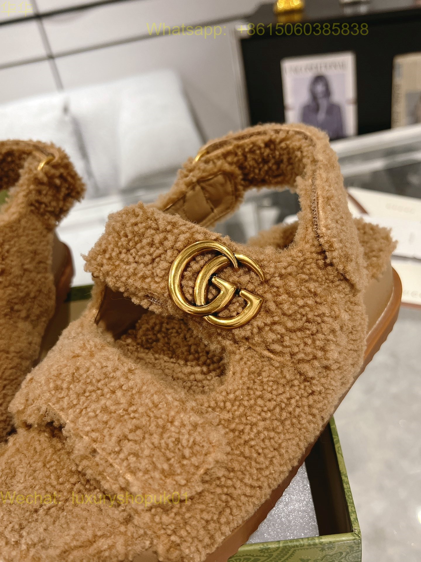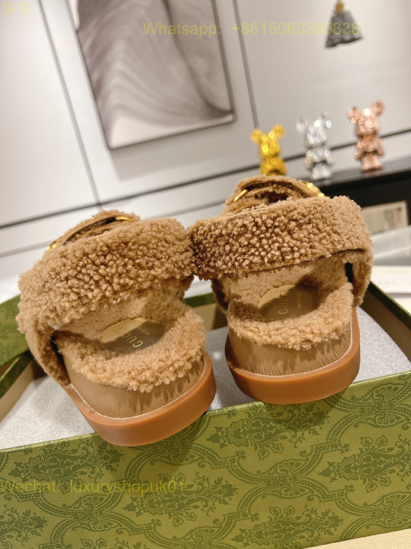 Gucci Fur Shearling GG logo Sandal Women Shoes