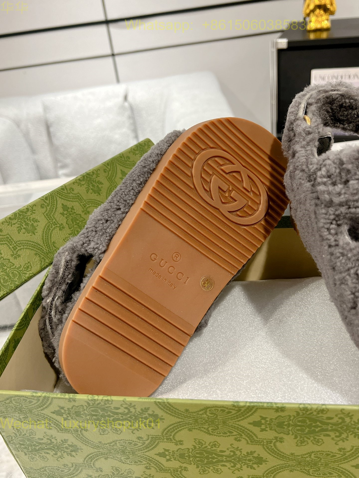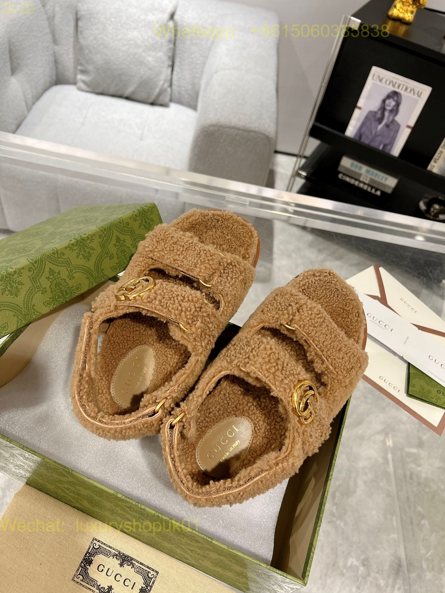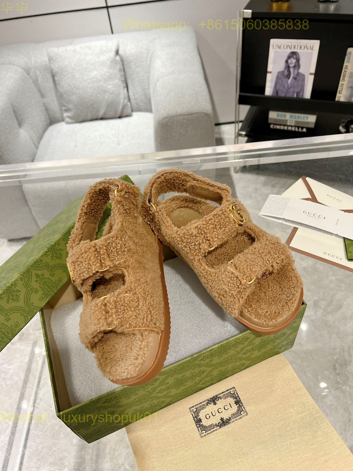Gucci Fur Shearling GG logo Sandal Women Shoes