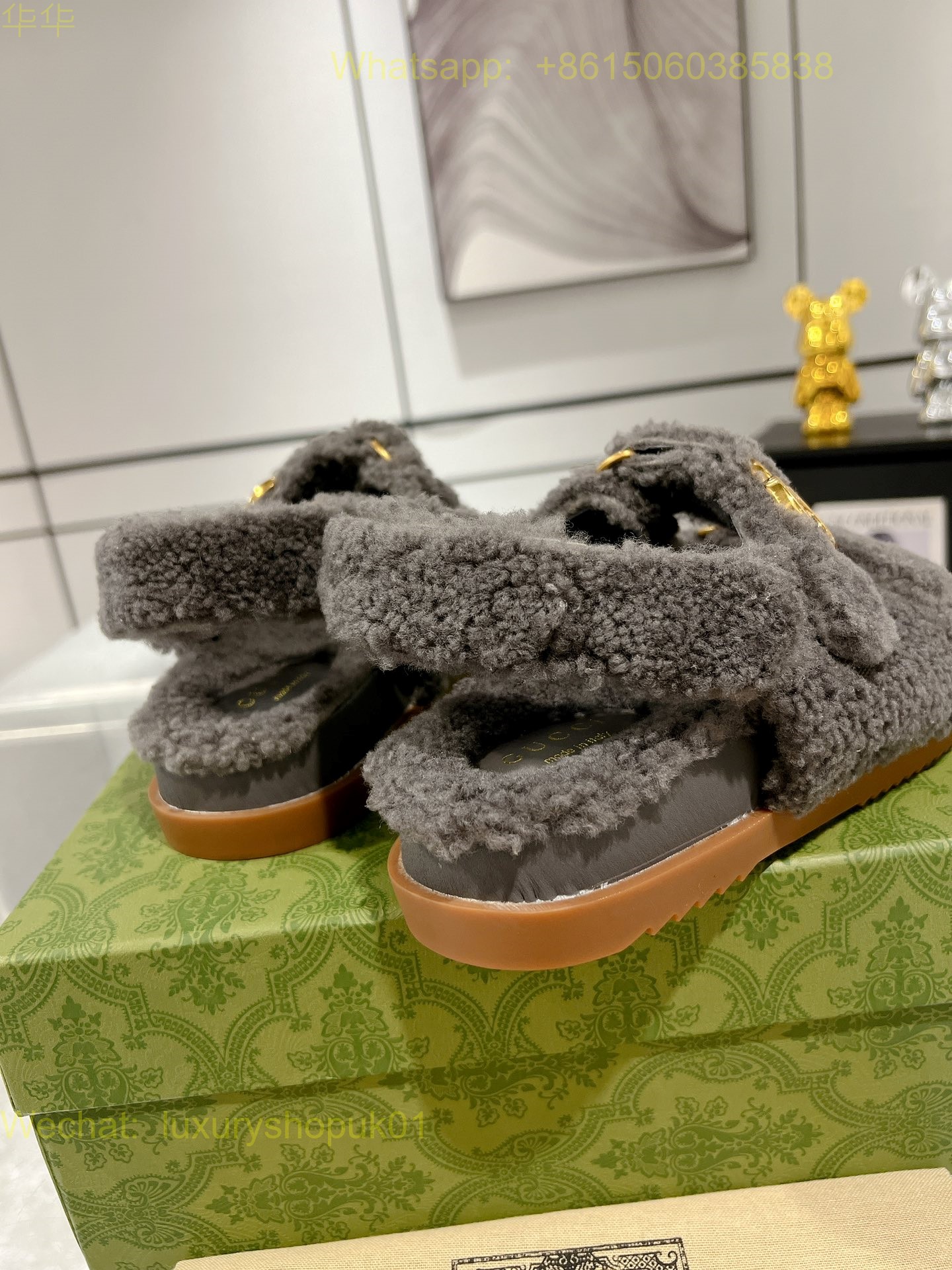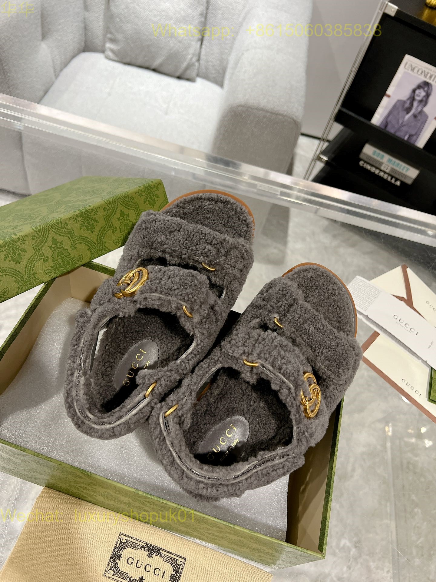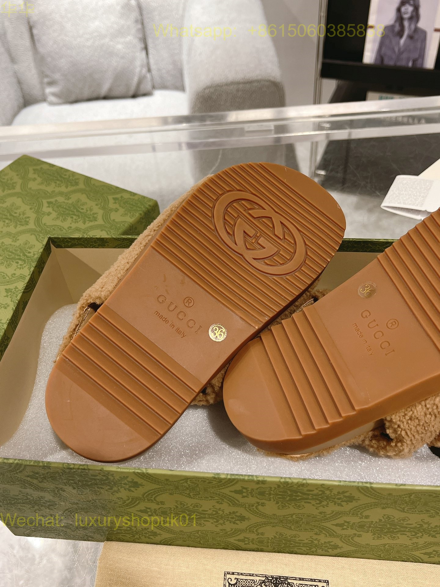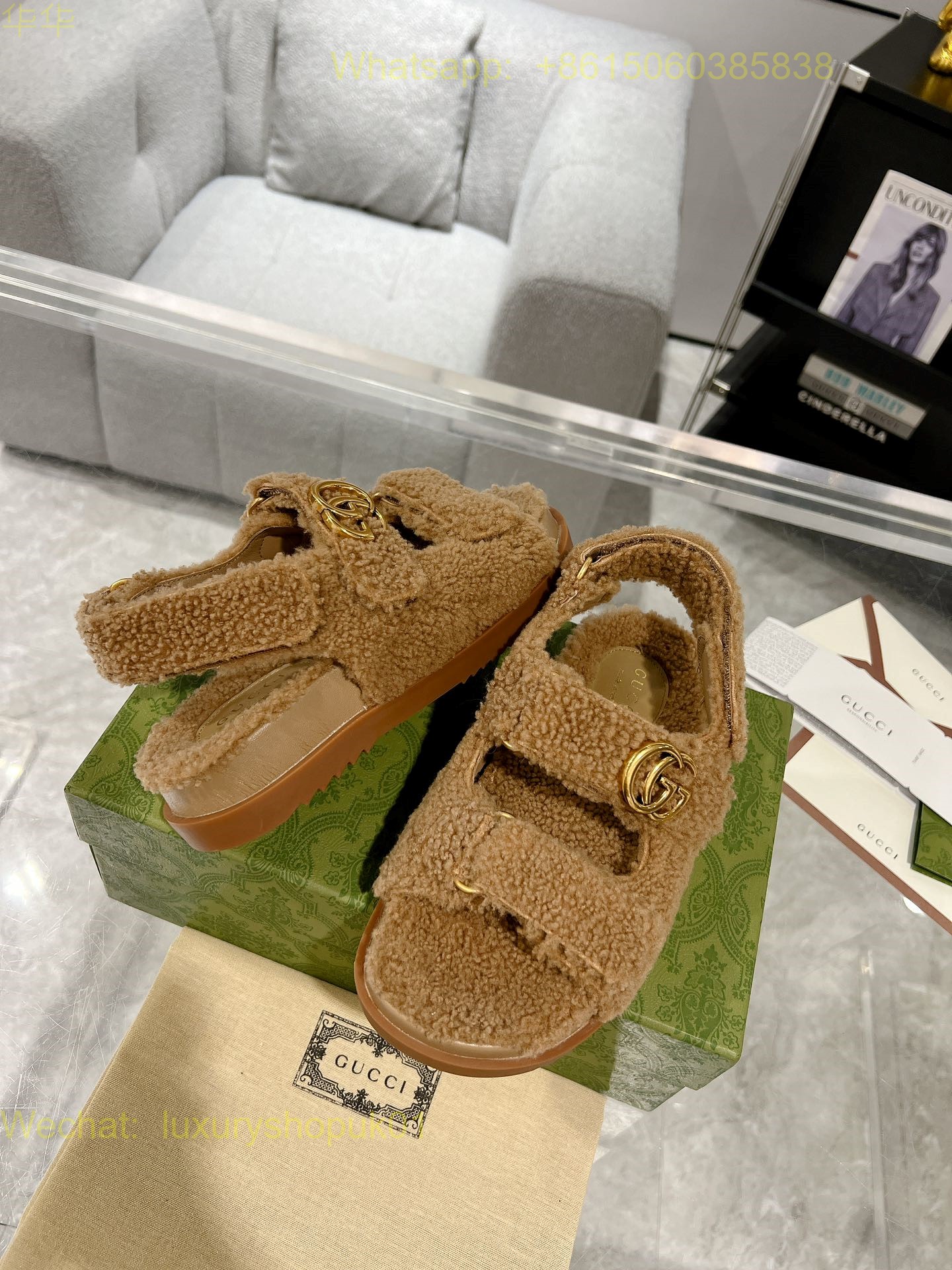 Gucci Fur Shearling GG logo Sandal Women Shoes