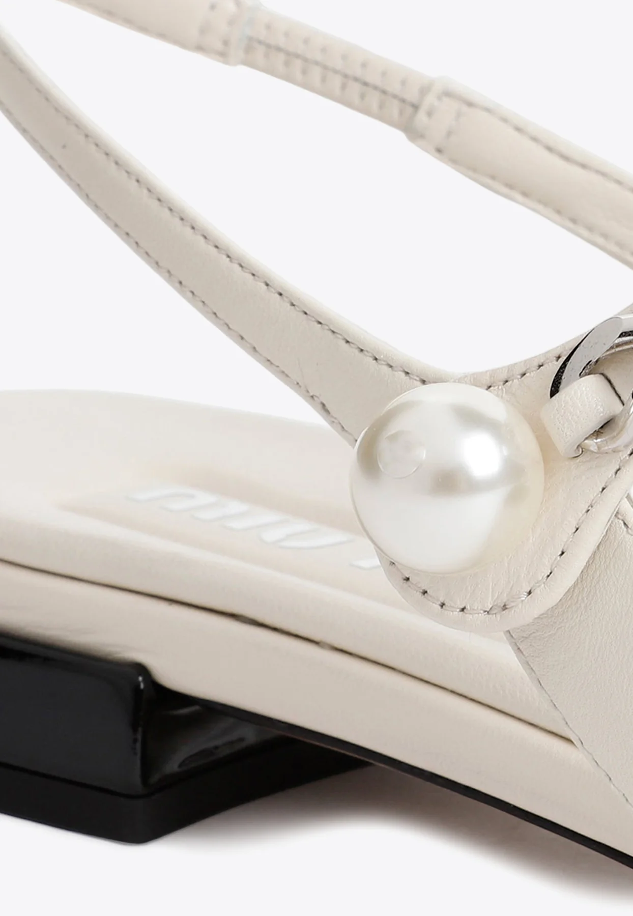Miu Miu 45 Crystal-Embellished Bow Leather Mules
