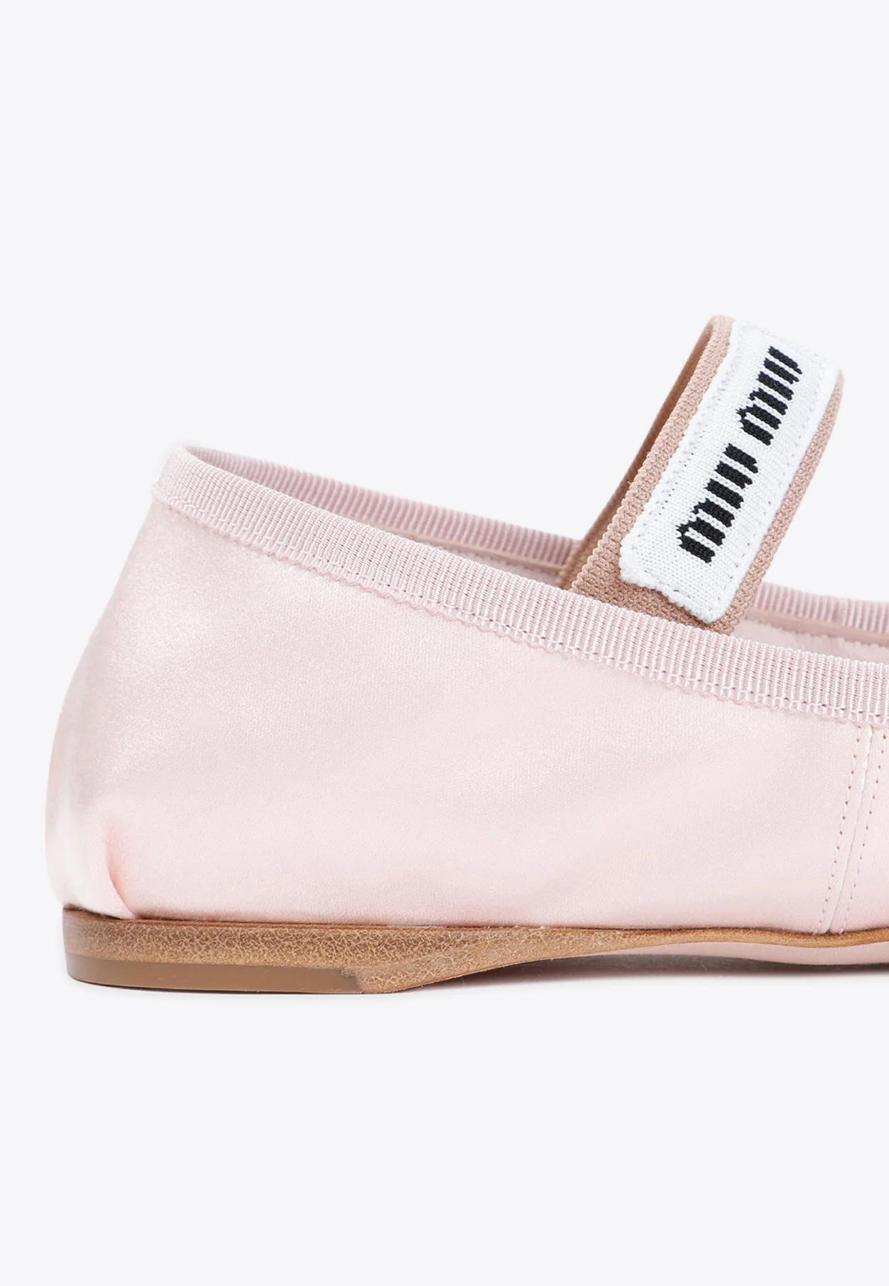 Miu Miu Satin Ballerina Flats with Logo Detail