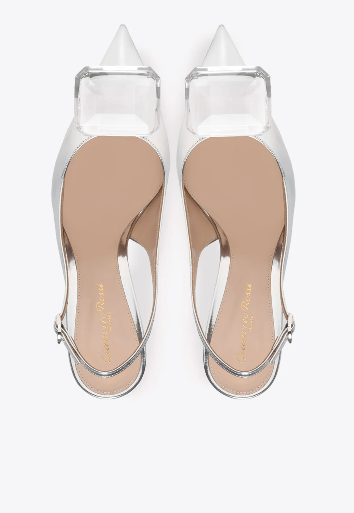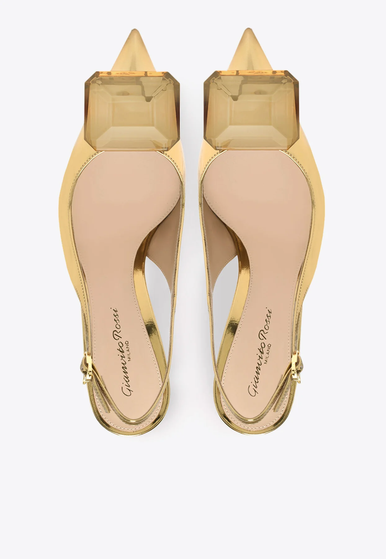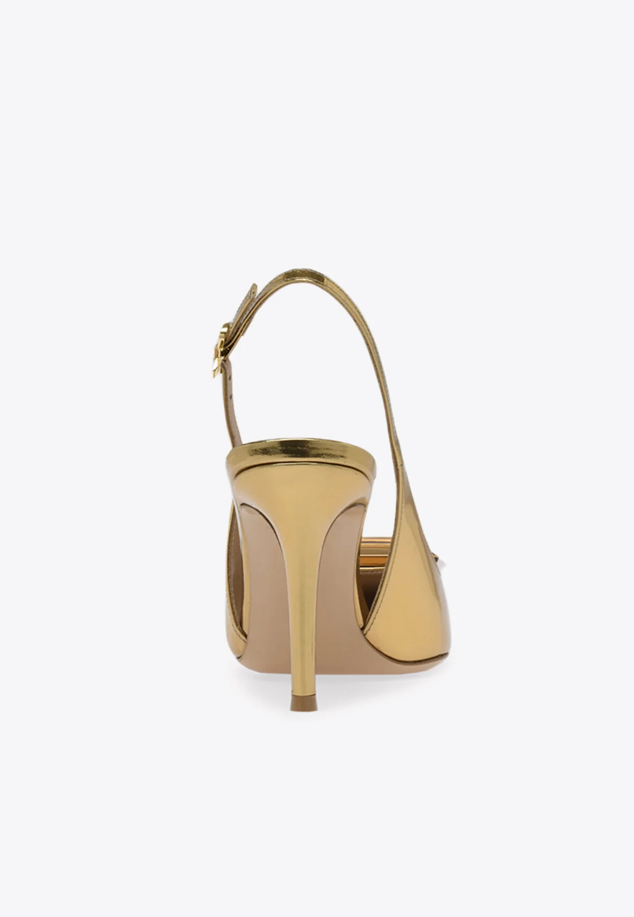 Gianvito Rossi Jaipur 85 Metallic-Leather Slingback Pumps